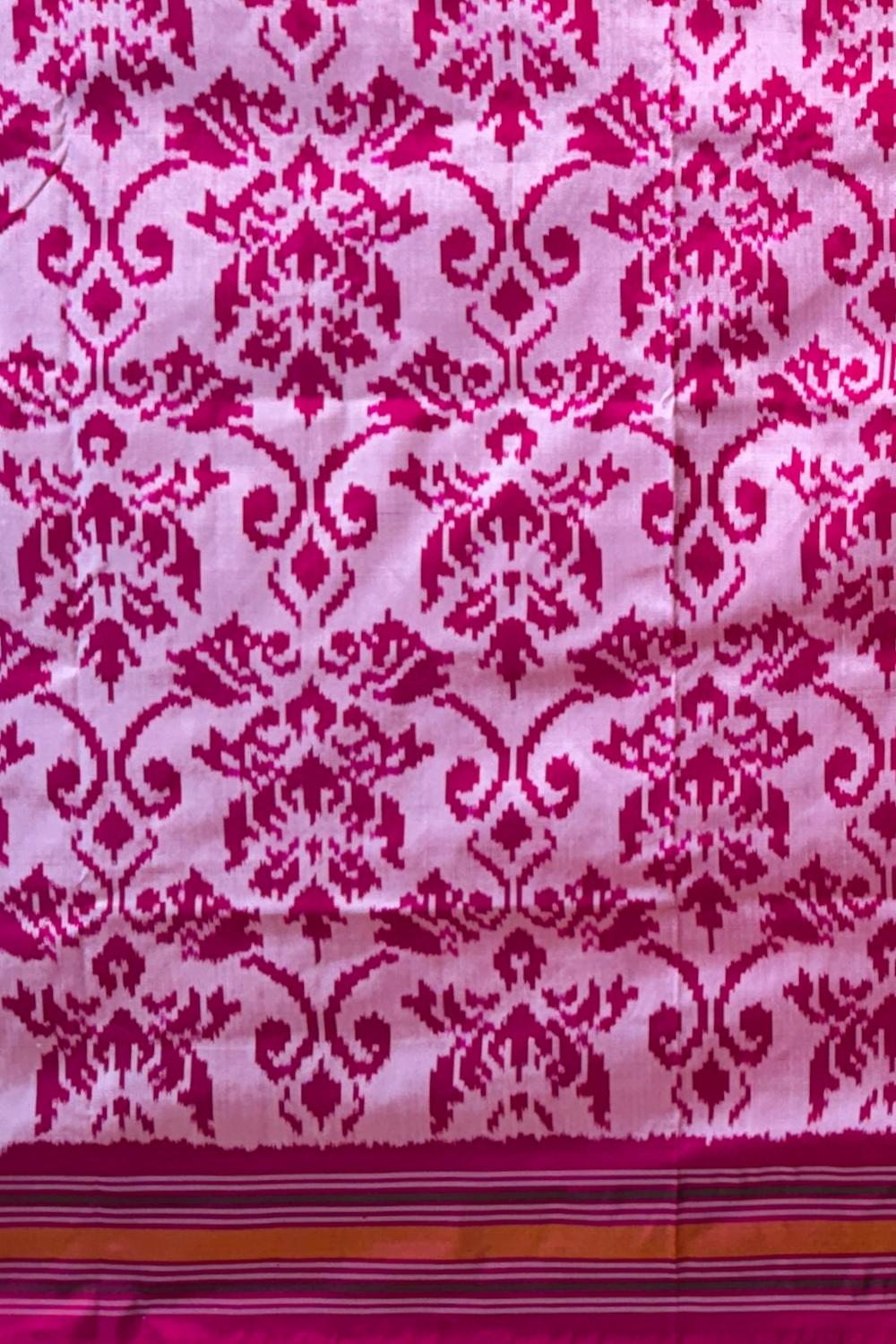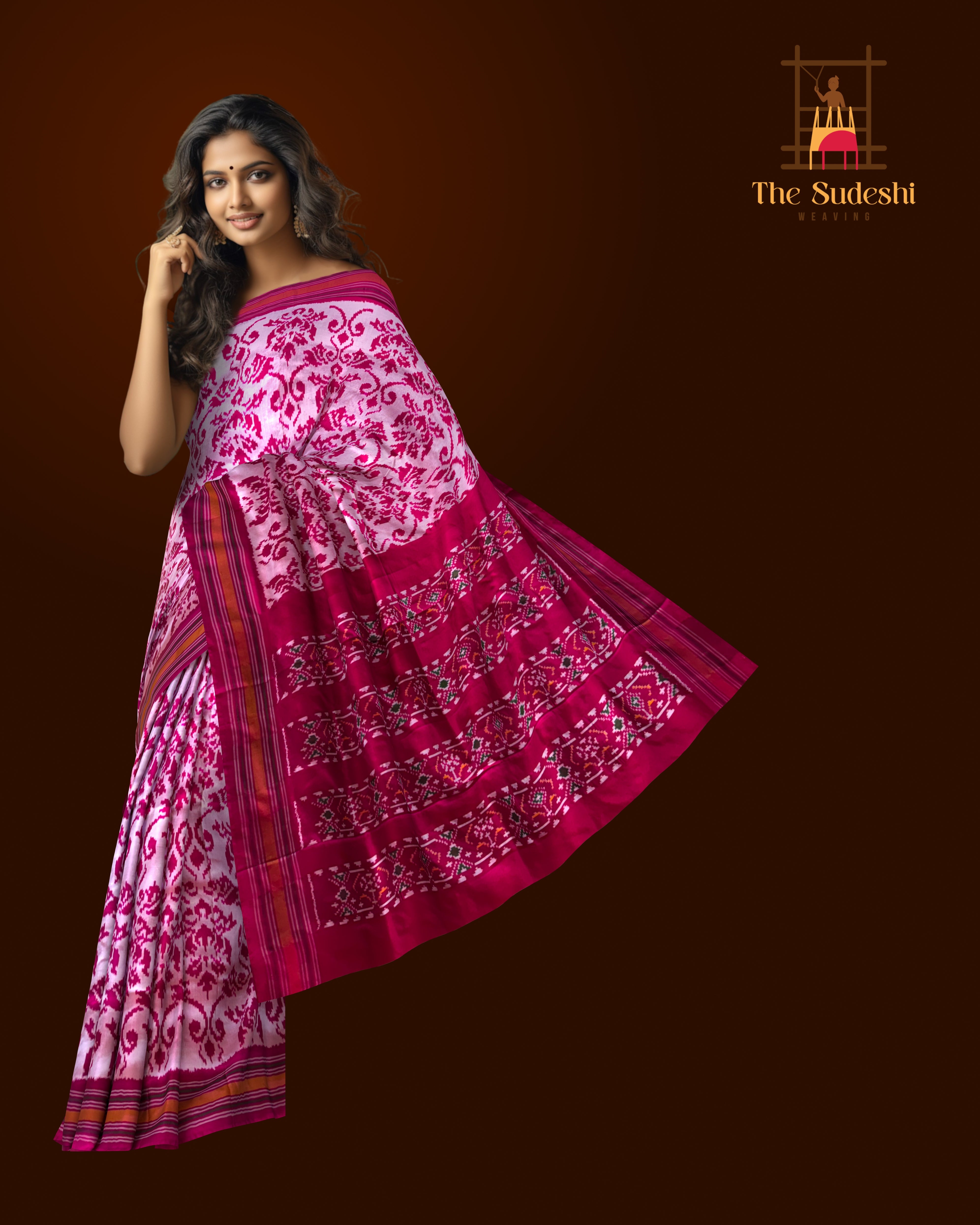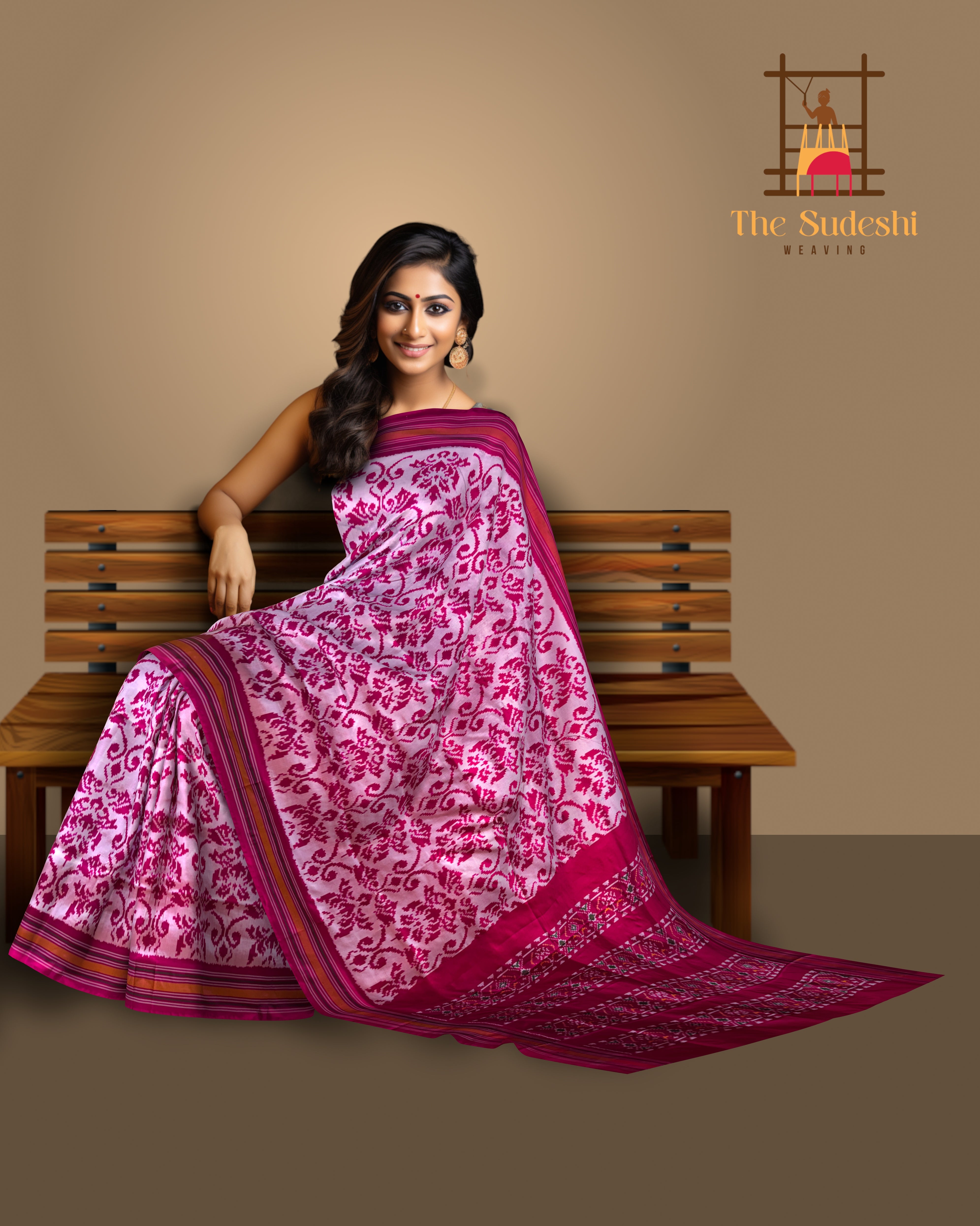 Soft, elegant, and delicate, this Baby Pink Pochampally Ikat Saree is the epitome of subtle beauty. The gentle baby pink body, complemented by a slightly deeper pink border and pallu, creates a harmonious and graceful ensemble that is perfect for women who adore soft pastels with a touch of tradition. Crafted in the heritage weaving cluster of Pochampally, Telangana, these sarees reflect the mastery of the double ikat technique. The intricate geometric and symbolic patterns are carefully woven, representing purity, serenity, and tradition. The light pink palette symbolizes compassion, grace, and femininity. This saree is ideal for morning functions, religious ceremonies, and intimate gatherings. Pair it with a matching or contrast silver blouse, and accessorize with pearl or silver jewelry to complete a soft, ethereal look. Note: The appearance of the product’s colors may vary due to lighting conditions or your device’s screen calibration. For further assistance or additional images/videos, feel free to contact us at +91 97897 60367 / +1 (945) 308-5962 or email at wecare@thesudeshiweaving.com.