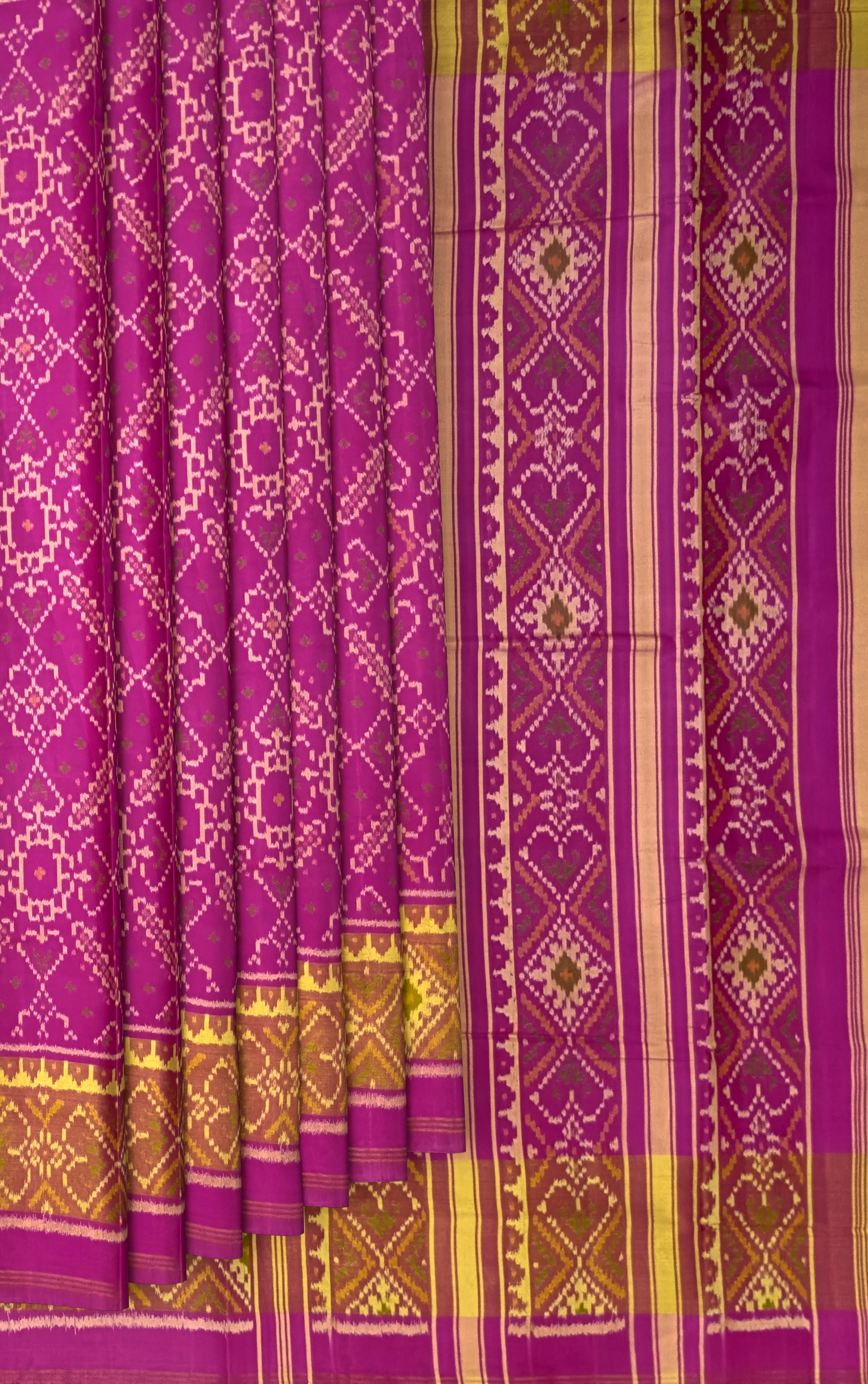 The Single Ikat technique used in this saree is a traditional method of weaving, where the yarns are dyed before weaving to create a unique, blurred effect. This technique requires great skill and patience, making each piece a true work of art.