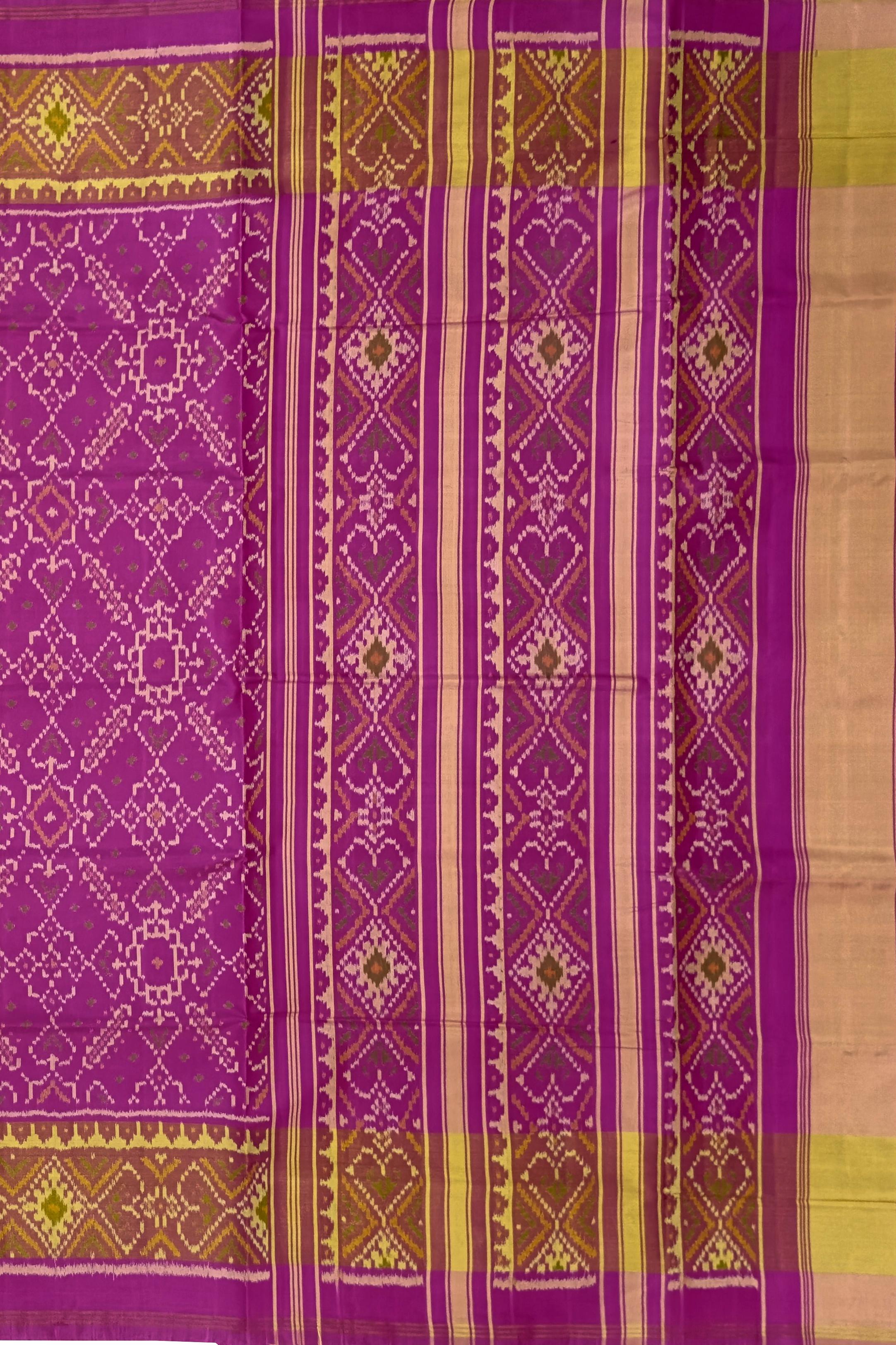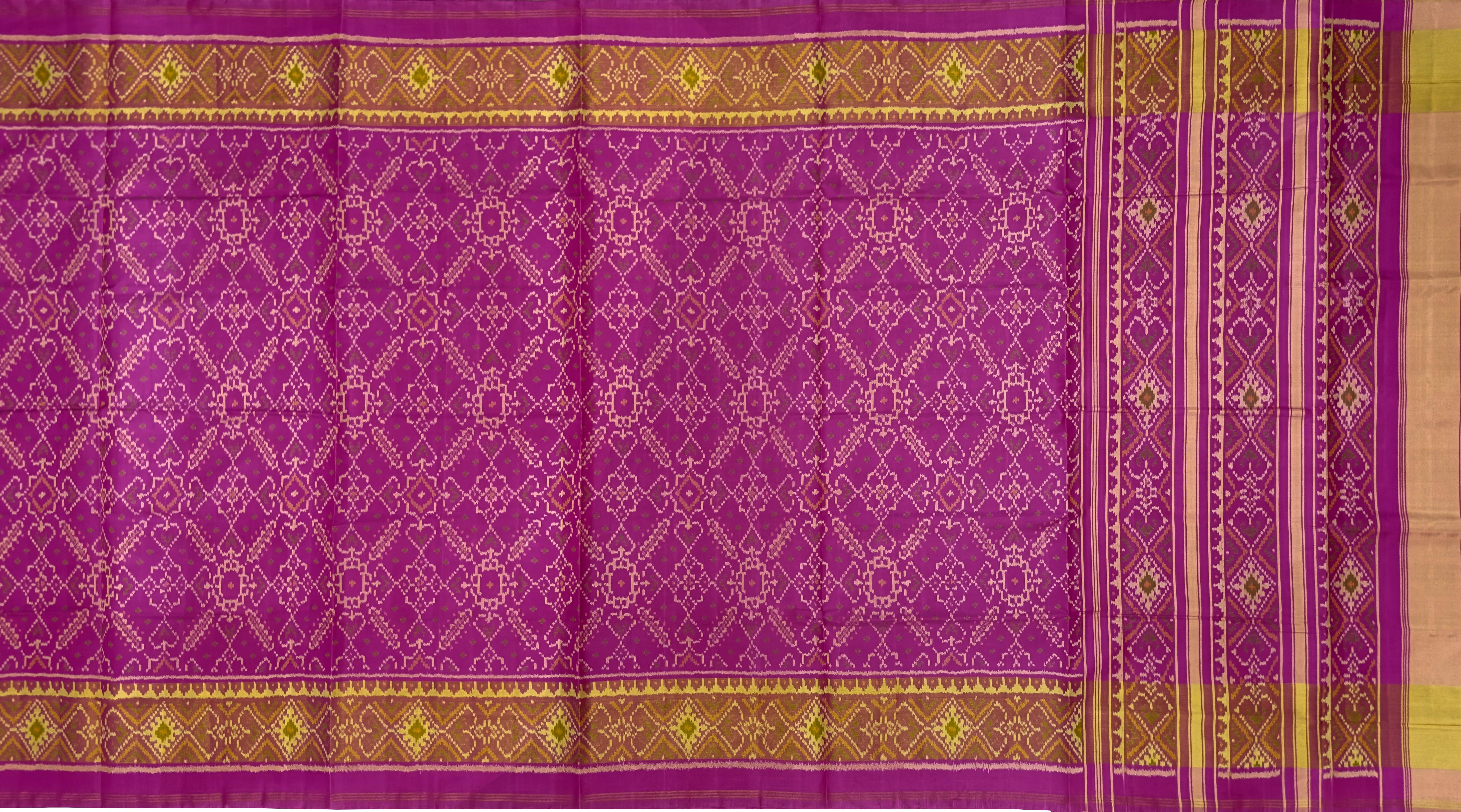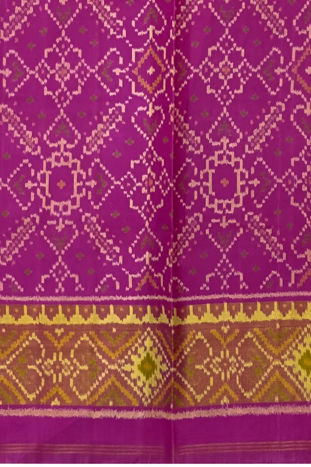 This beautiful Baby Pink Single Ikat Rajkot Patola Saree is a stunning and elegant piece. The saree features a gorgeous Manekchowk design, intricately woven in Baby Pink hues.