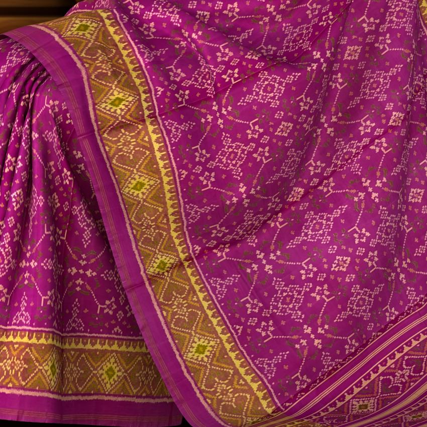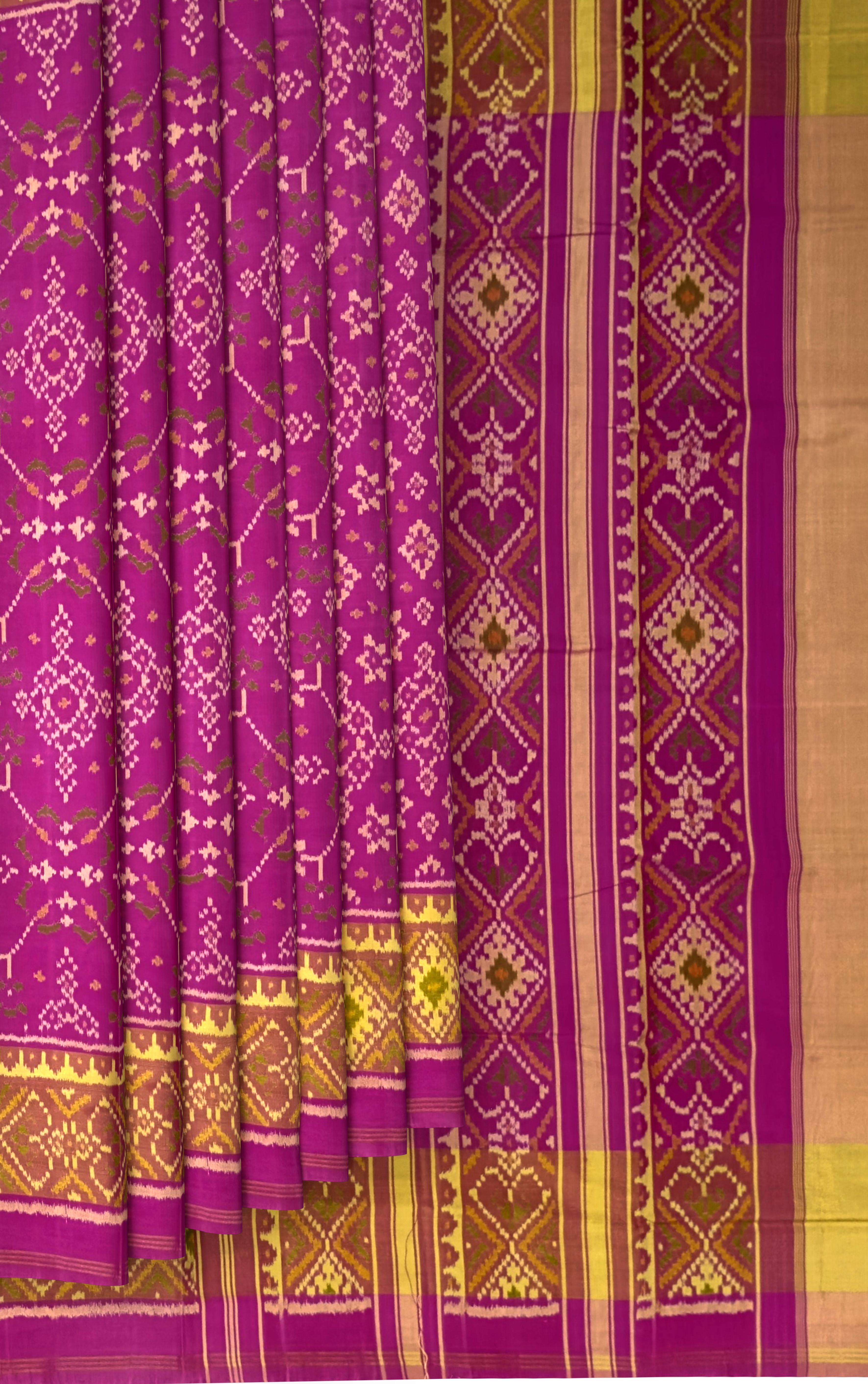 This beautiful Baby Pink Single Ikat Rajkot Patola Saree is a stunning and elegant piece. The saree features a gorgeous Navratna design, intricately woven in Baby Pink hues.