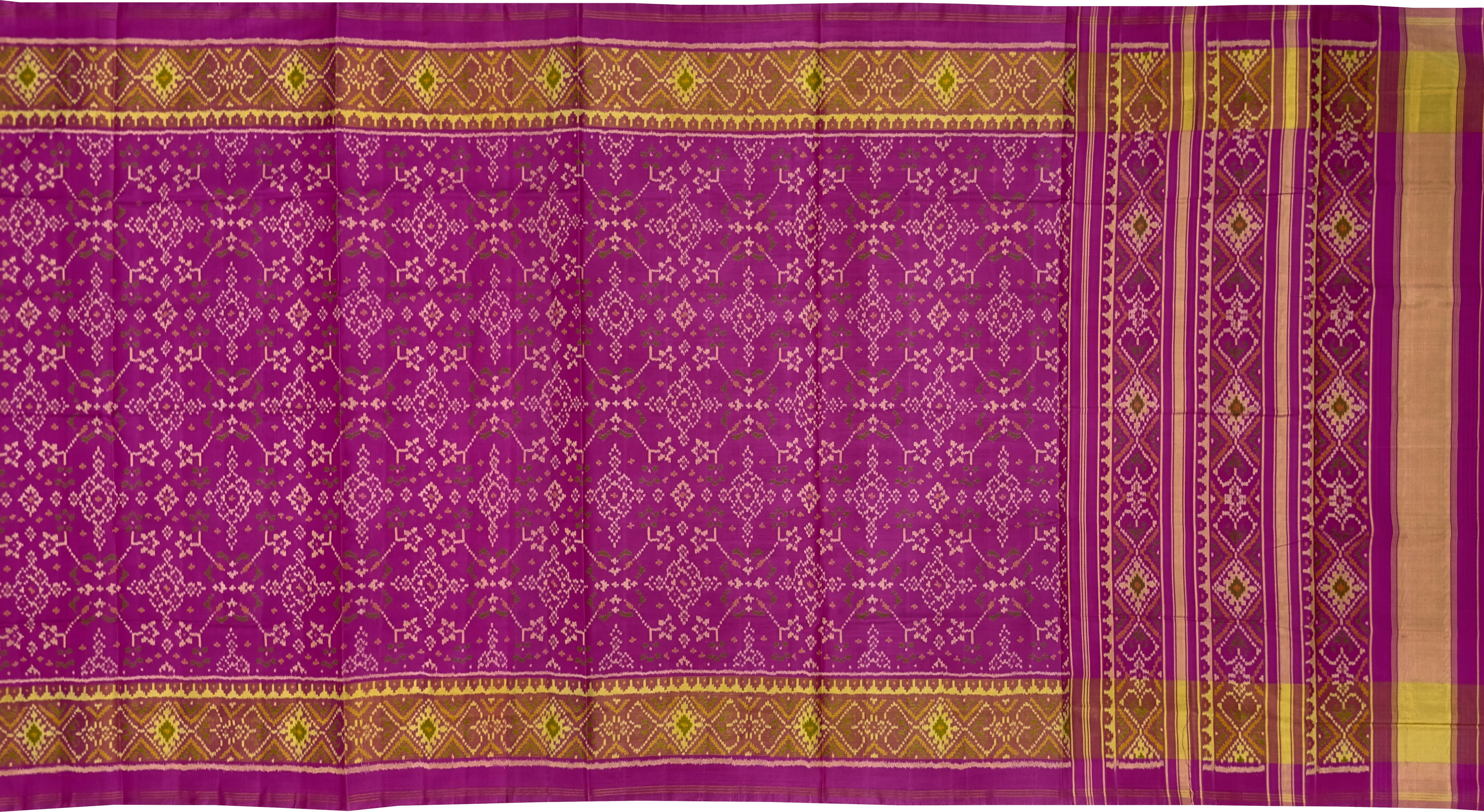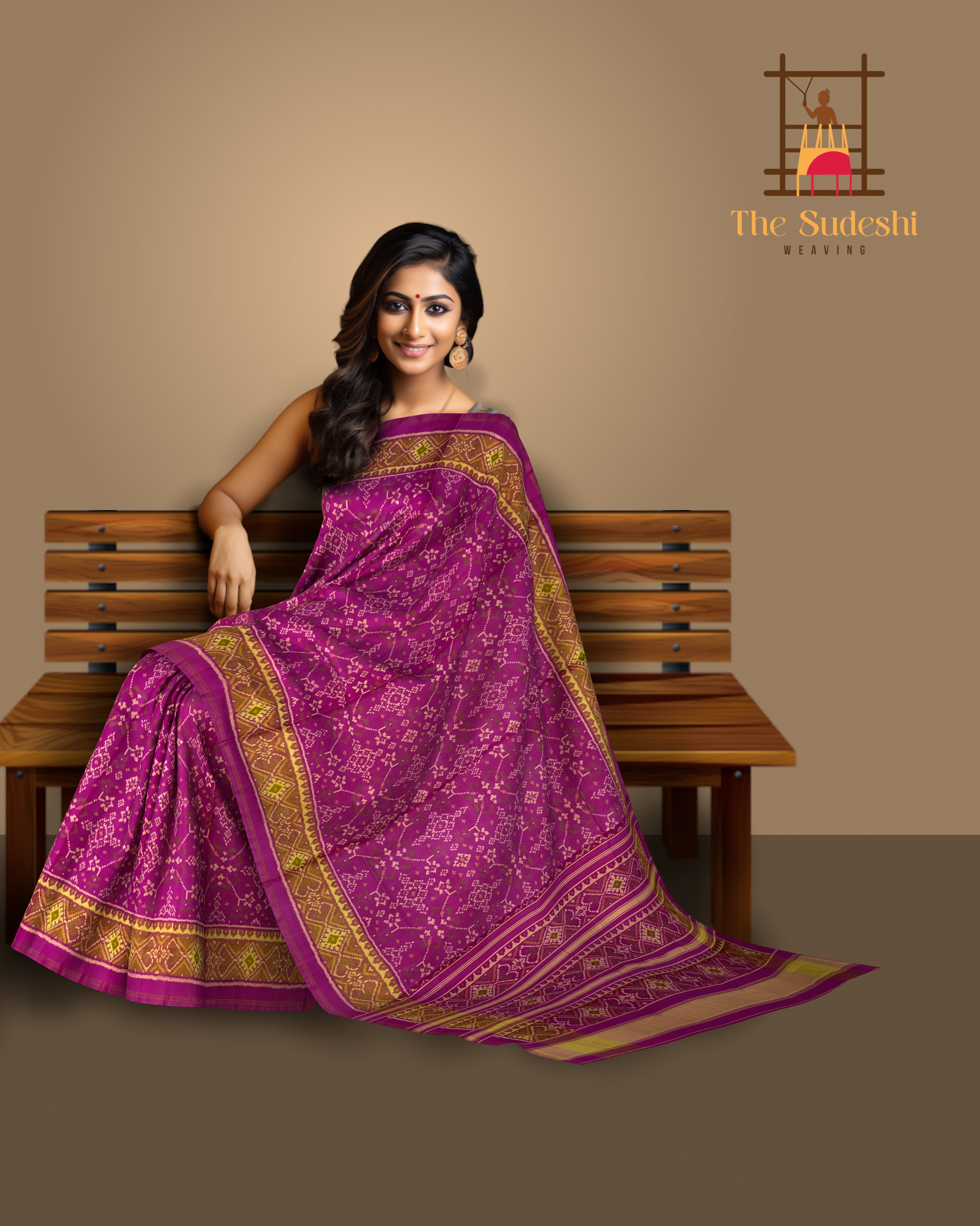 The Single Ikat technique used in this saree is a traditional method of weaving, where the yarns are dyed before weaving to create a unique, blurred effect. This technique requires great skill and patience, making each piece a true work of art.