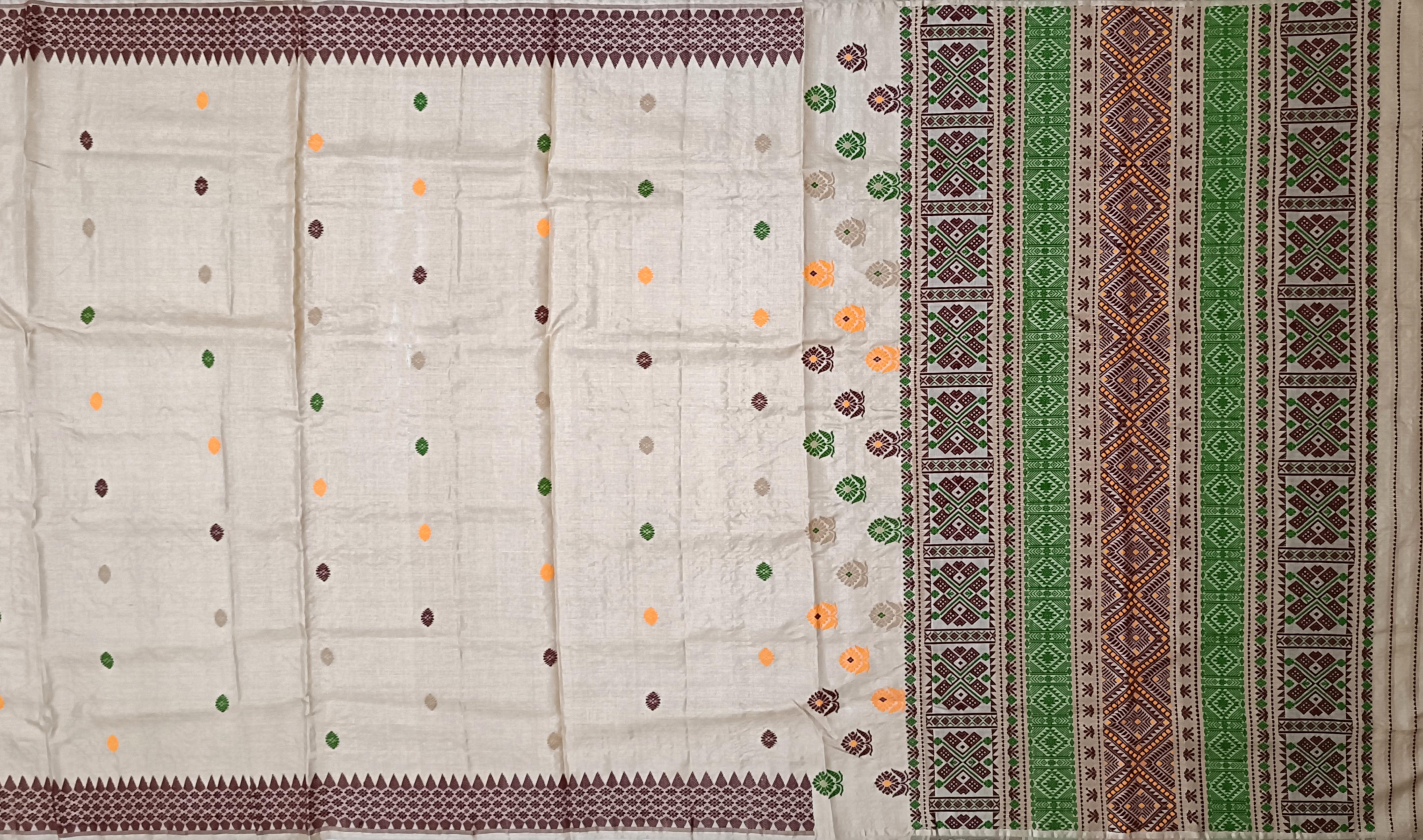 Handwoven from natural Tussar silk, these sarees are prized for their lustrous texture and lightweight feel. Deeply rooted in Assamese culture, the designs on Tussar sarees often symbolize prosperity and harmony, making them an exquisite representation of India’s weaving traditions. Perfect for all-day comfort, Tussar silk sarees are a staple for both special and everyday moments.