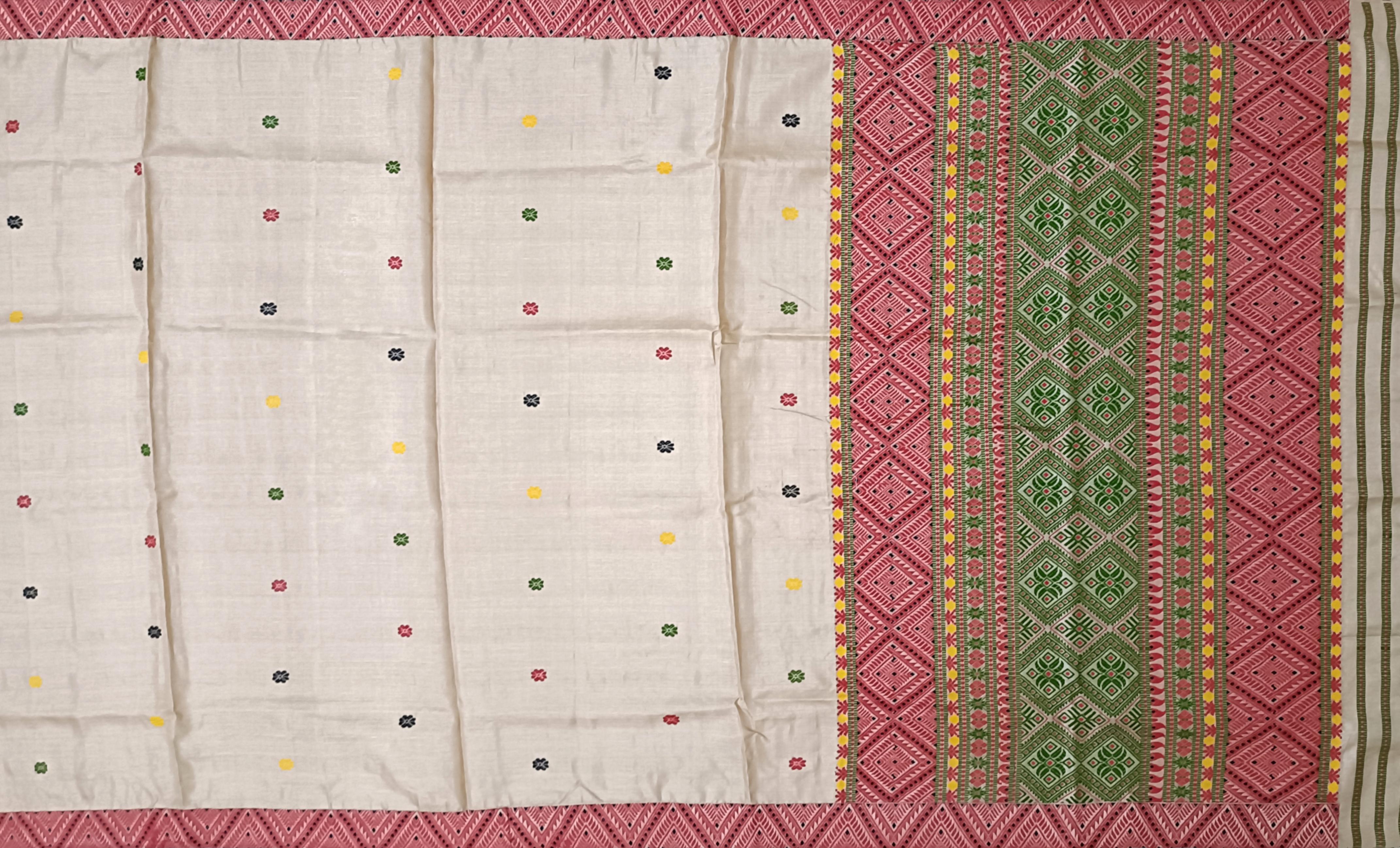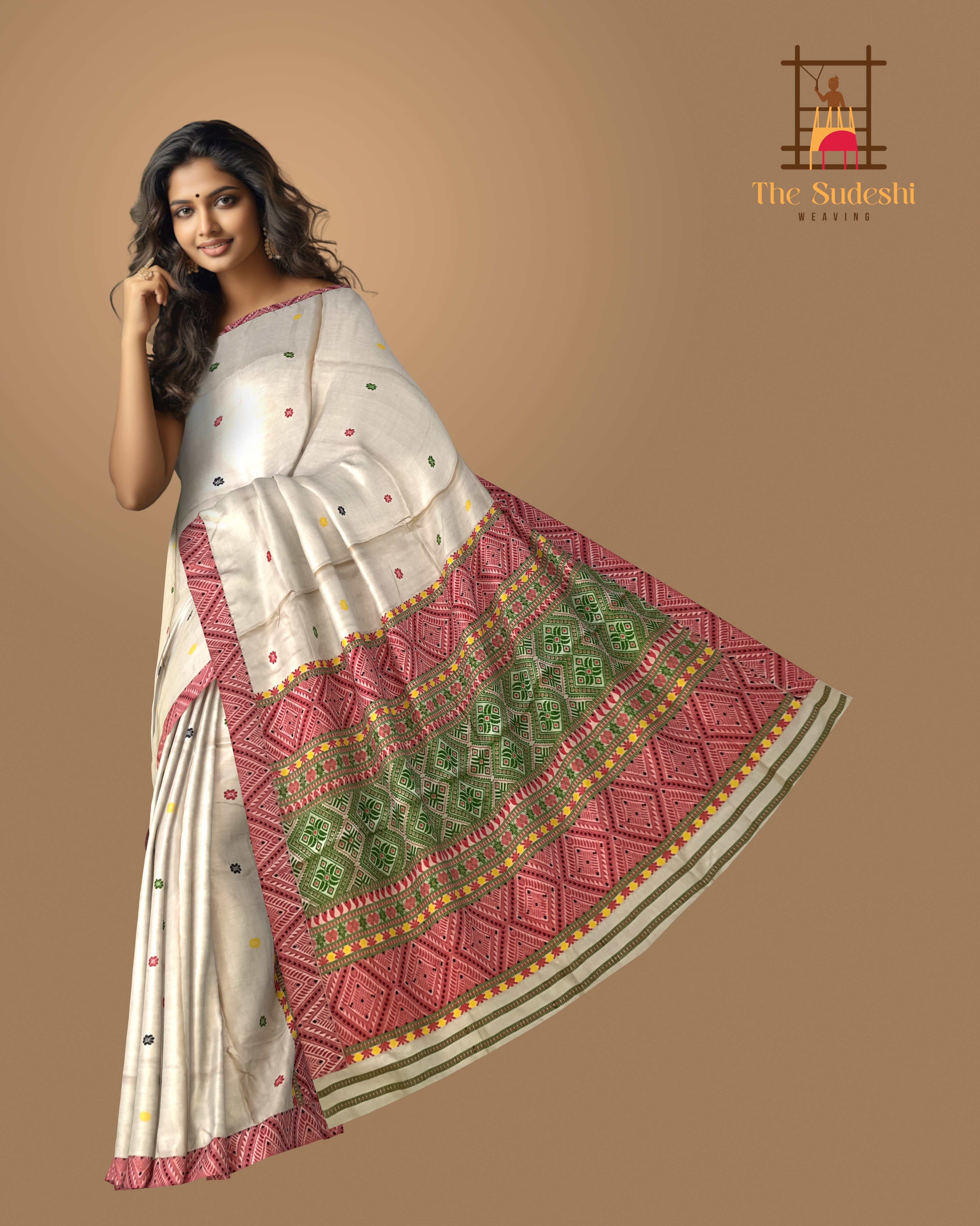 Tussar silk from Assam is renowned for its rich texture and natural sheen, often referred to as “Wild Silk” due to its origin from forest silkworms. The artistry and symbolism of these sarees are deeply rooted in Assamese traditions, with patterns that often signify prosperity and harmony. Lightweight yet luxurious, Tussar silk is perfect for all-day comfort and elegance.