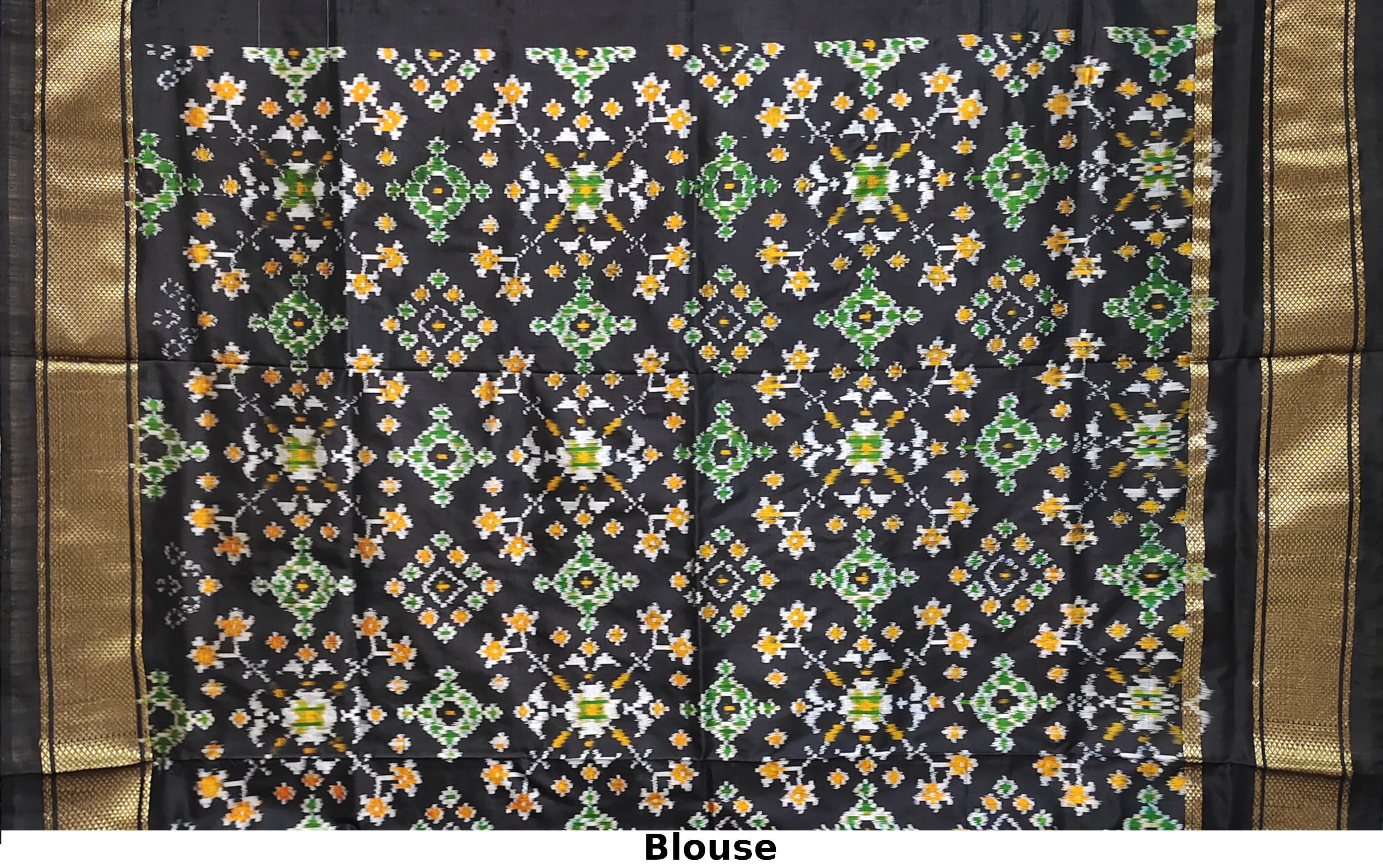 This Black Pochampally Single Ikat Handloom Saree is perfect for formal occasions like weddings, festivals, and special events. Pair it with a matching black or gold-colored blouse and accessories like gold jewelry and a statement handbag to complete the look.