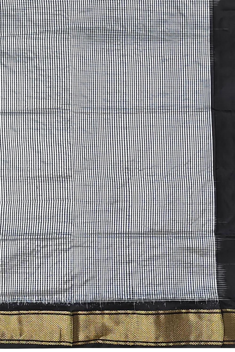 This stunning Black Pochampally Single Ikat Handloom Saree is a masterpiece of traditional Indian craftsmanship. The saree features intricate gold zari work on a black background, creating a striking contrast that exudes elegance and sophistication. The Single Ikat technique used in this saree is a testament to the skill and patience of the artisans who weave these beautiful pieces.
