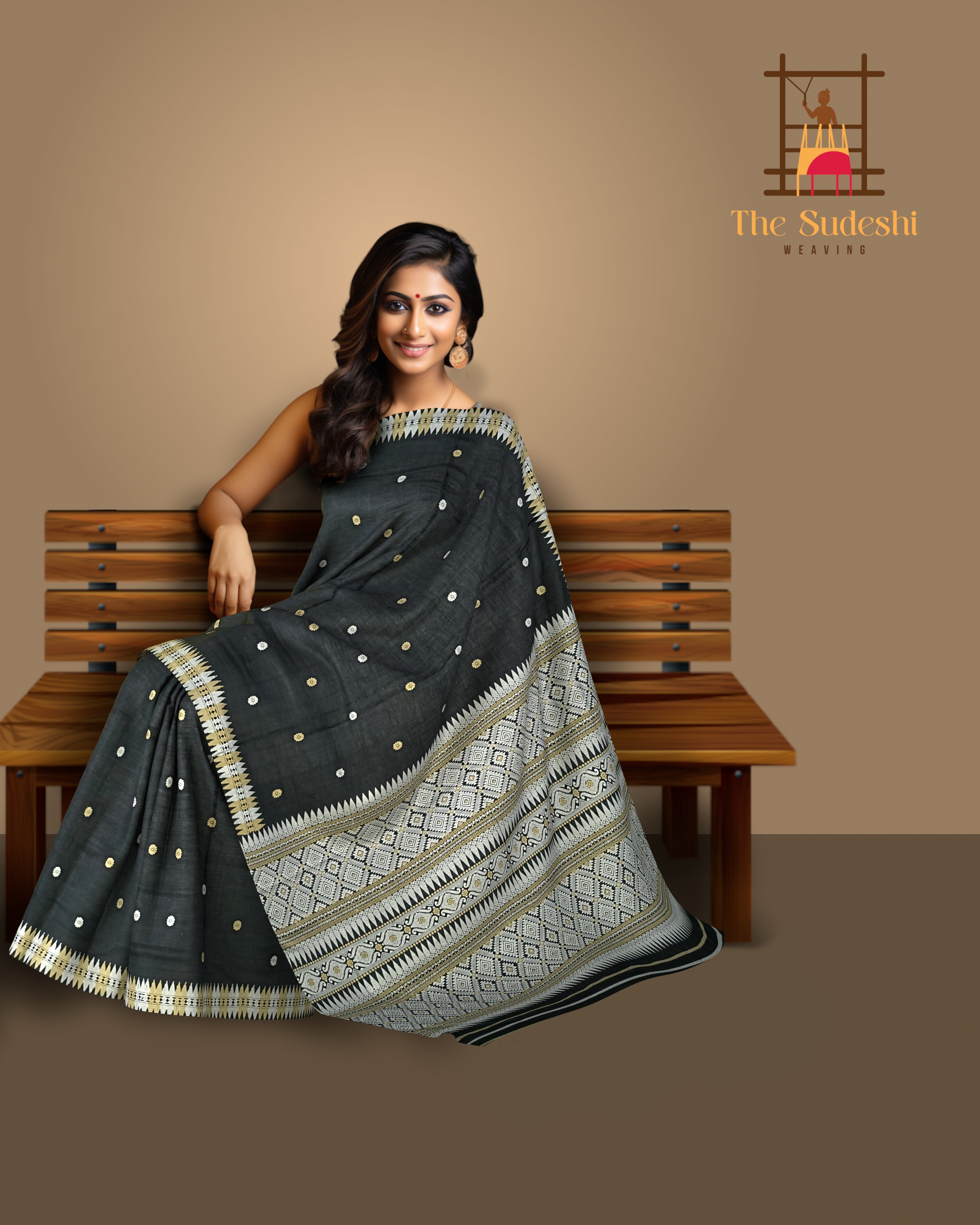Woven from Eri silk, this saree is a true testament to Assamese heritage. Renowned for its lightweight texture and natural sheen, Tussar silk sarees are a symbol of tradition and cultural richness. The delicate motifs on this saree carry profound meanings, often symbolizing prosperity and harmony.