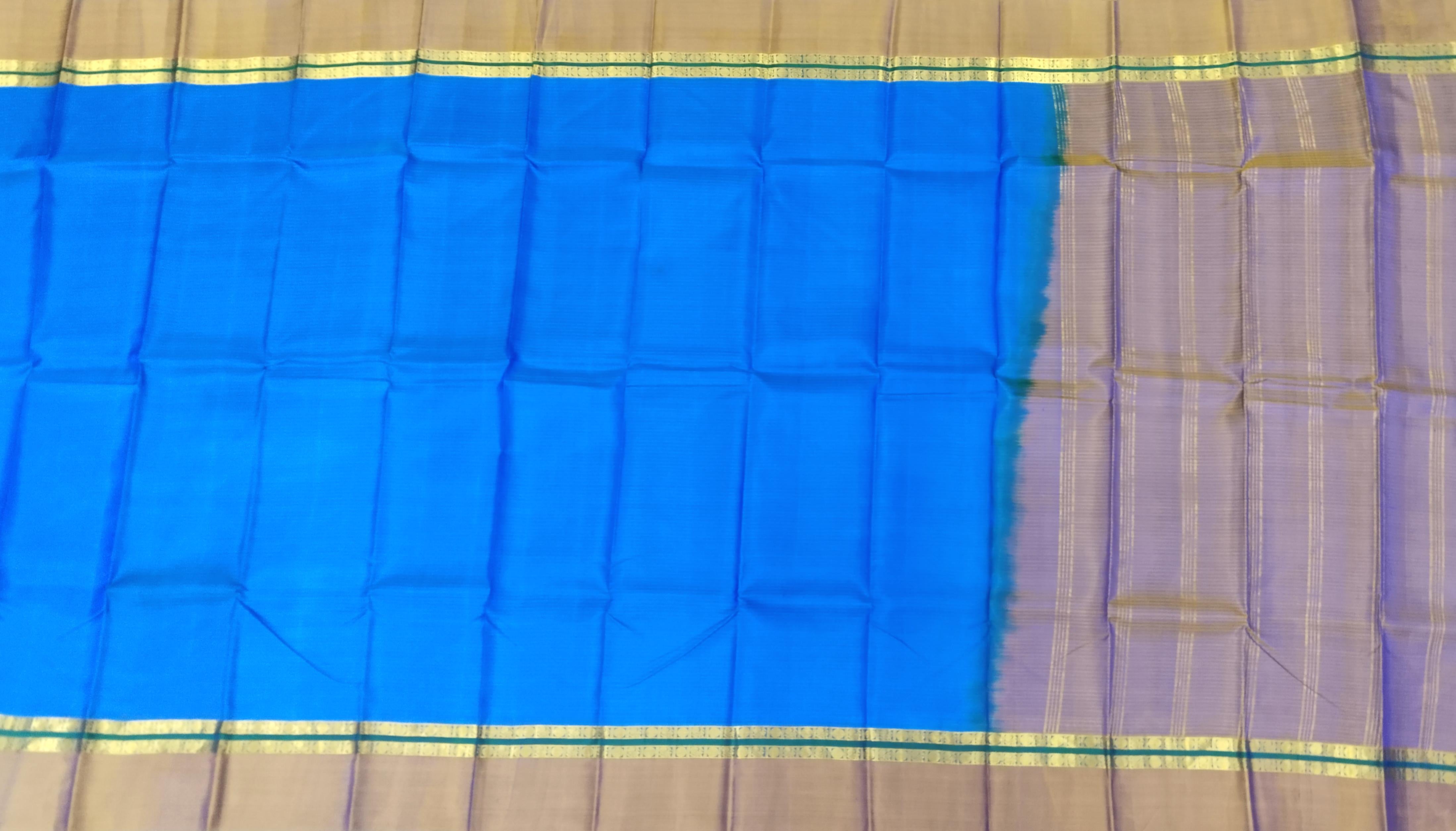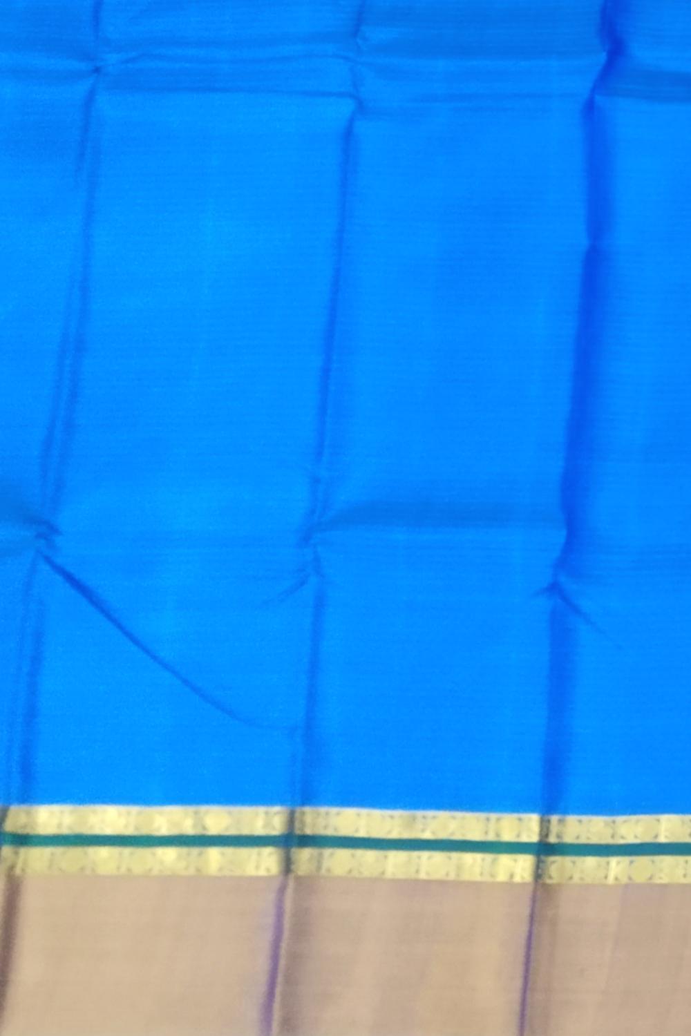 Embrace understated sophistication with this Blue Kanchipuram Silk Saree featuring a contrasting mustard border and pallu. The plain silk body highlights the rich sheen of pure Kanchipuram silk, allowing the dual play of blue and mustard to take center stage. The minimalist design exudes timeless charm, perfect for those who appreciate classic elegance with a subtle pop of color. Kanchipuram pure silk sarees are revered for their exquisite craftsmanship and luxurious texture. Handwoven with precision in the temple town of Kanchipuram, each piece reflects centuries-old artistry, bringing together tradition, durability, and brilliance in every drape. This saree is a versatile choice for festive occasions, traditional functions, or formal gatherings. Pair it with a mustard or gold zari blouse, complemented by antique jewellery or pearl accessories, for an effortlessly graceful look. Note: The appearance of the product’s colors may vary due to lighting conditions or your device’s screen calibration. For further assistance or additional images/videos, feel free to contact us at +91 97897 60367 or email at wecare@thesudeshiweaving.com.