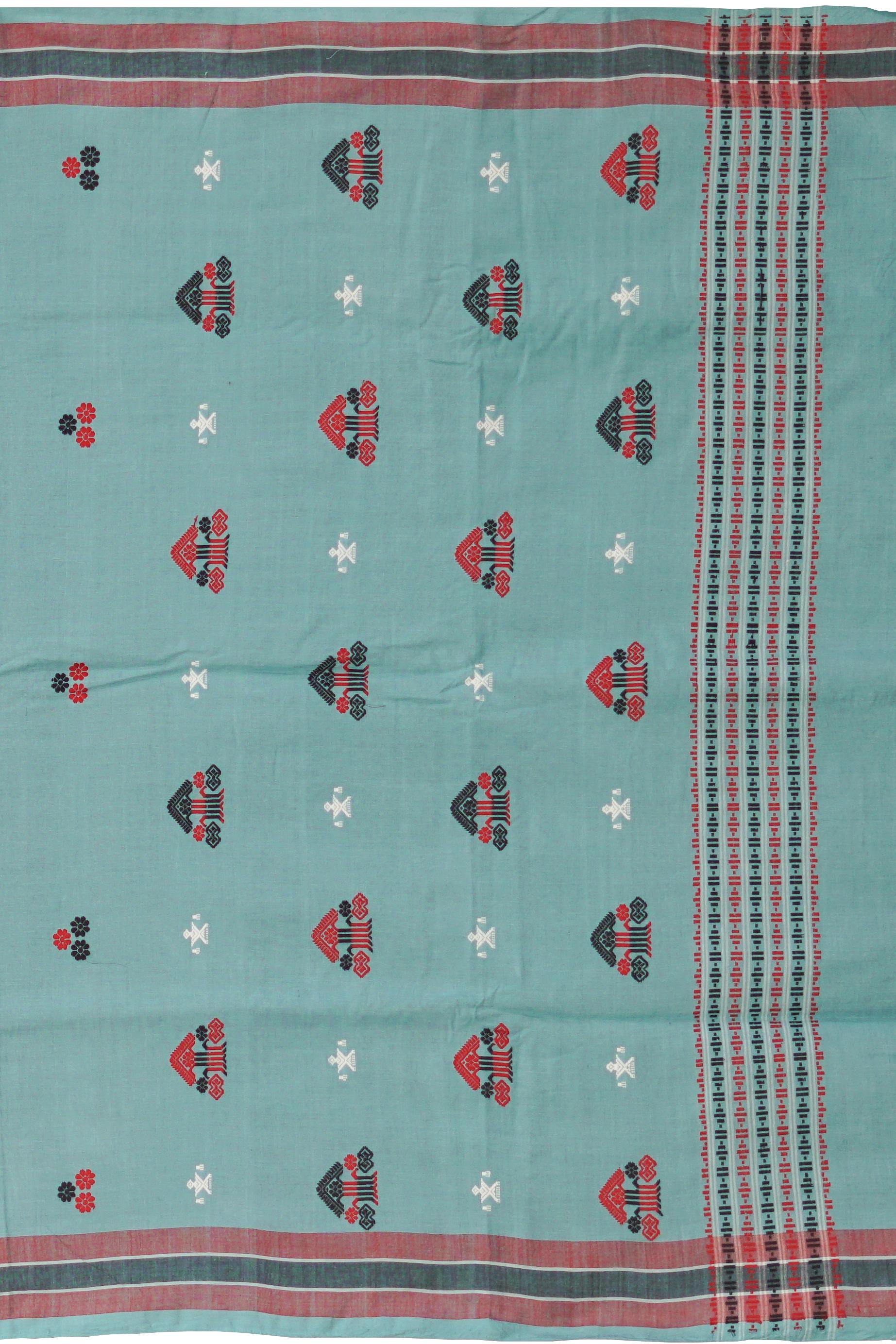 Step into the world of elegance and tradition with our Blue Cotton Saree with a Red Border and Intricate Buttis. This saree is woven from pure cotton, offering a soft and breathable drape that is perfect for any occasion. The deep blue body adorned with delicate buttis creates a striking contrast with the bold red border, making this saree both stylish and versatile.
