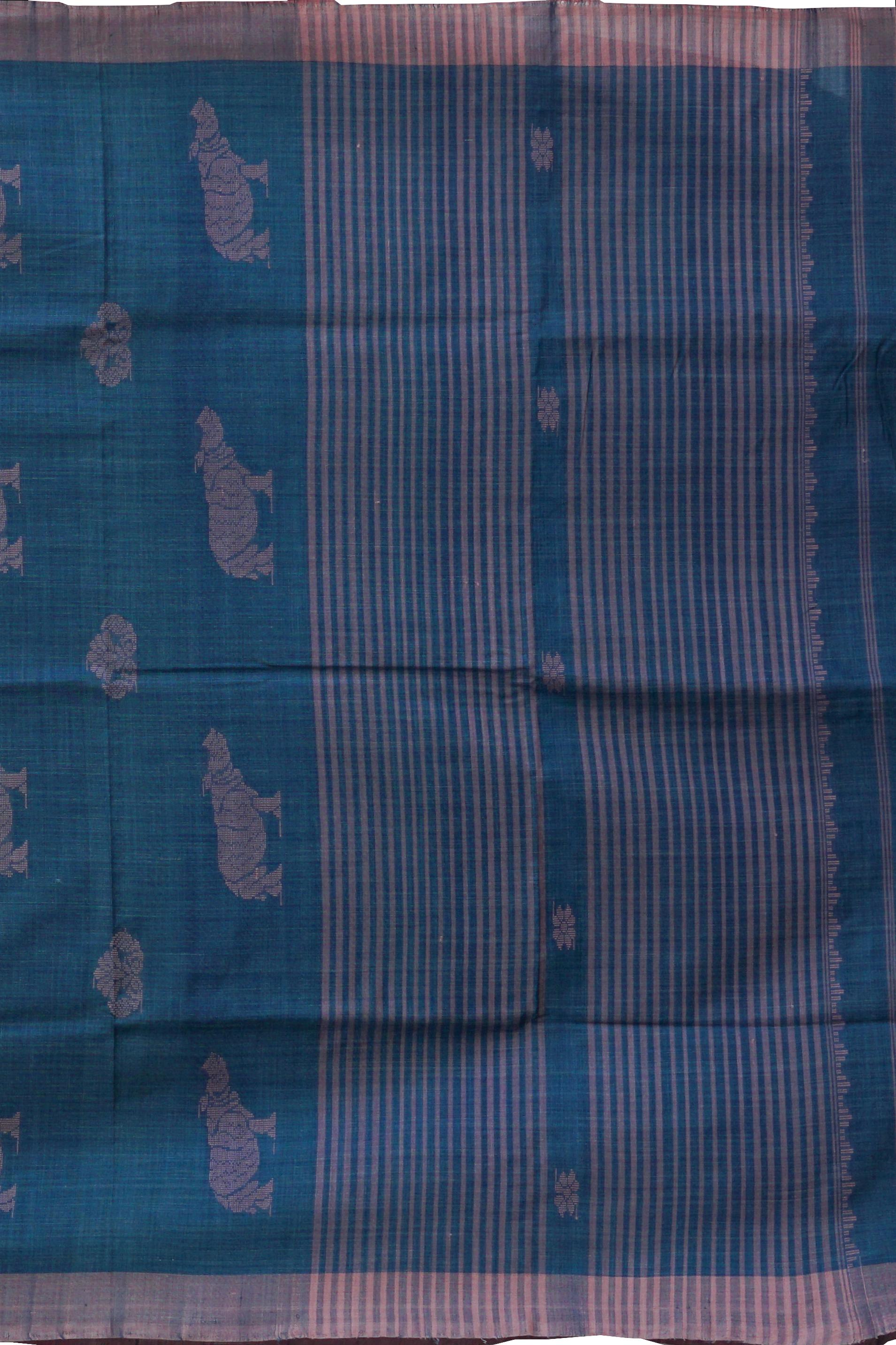 Experience the allure of our Blue Eri Silk Saree with a Pink Border and Intricate Motifs. This saree showcases the unparalleled craftsmanship of Assam's weavers, who meticulously create each piece with love and dedication. The Eri silk, known for its durability and unique texture, provides a comfortable yet regal drape. The blue body, adorned with intricate buttis and motifs, stands out beautifully against the vibrant pink border, making it a perfect choice for festive occasions and special events.