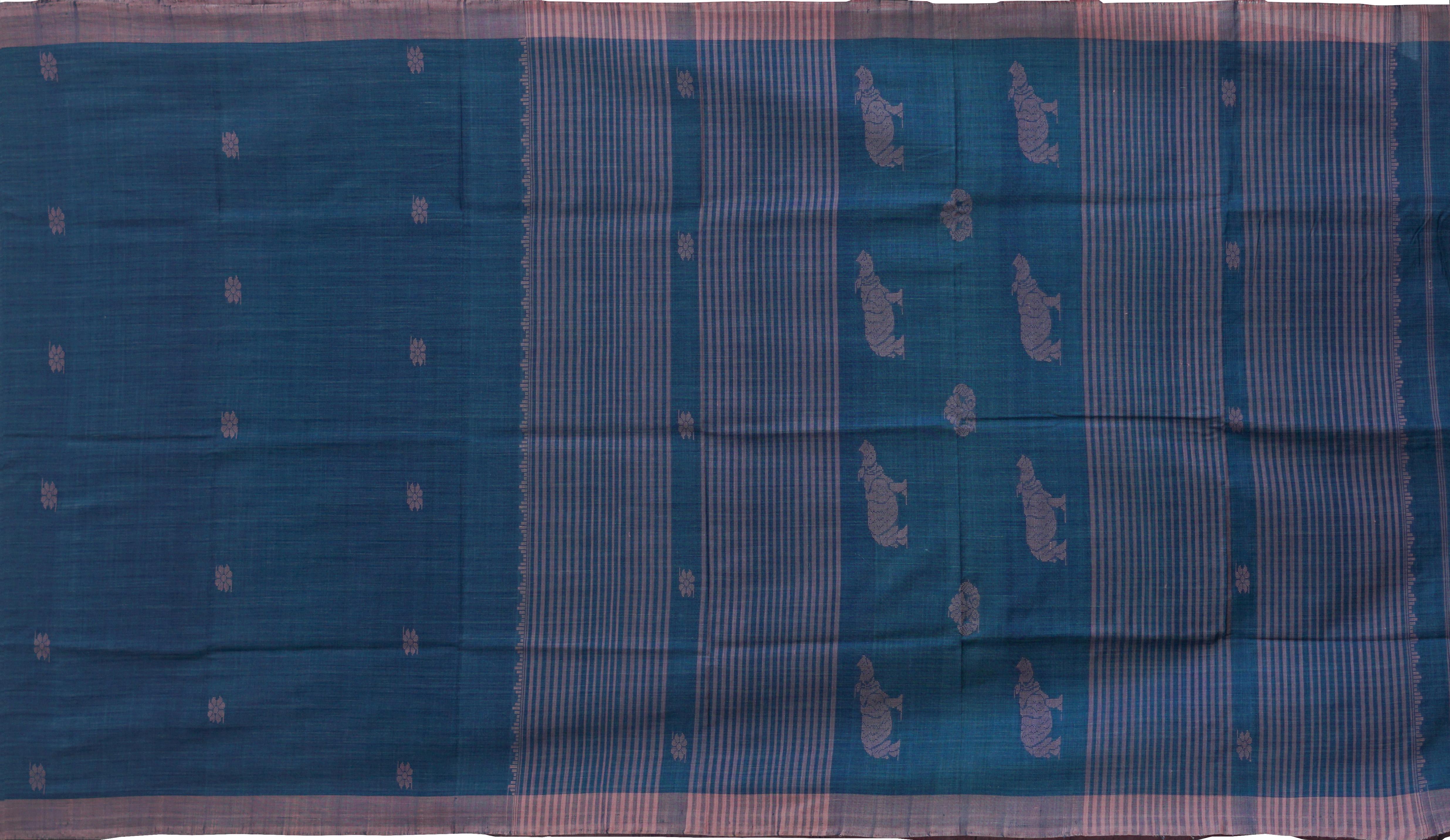 The motifs in this saree are more than mere embellishments; they are symbols of Assam's rich heritage. Inspired by the region's natural beauty, you will find motifs depicting flowers, animals, and cultural symbols, all woven using the extra-weft technique that makes them appear almost embossed. This method, rooted in tribal traditions, adds a distinct texture and depth to the saree, making each piece unique and reflective of the weaver's artistry.
