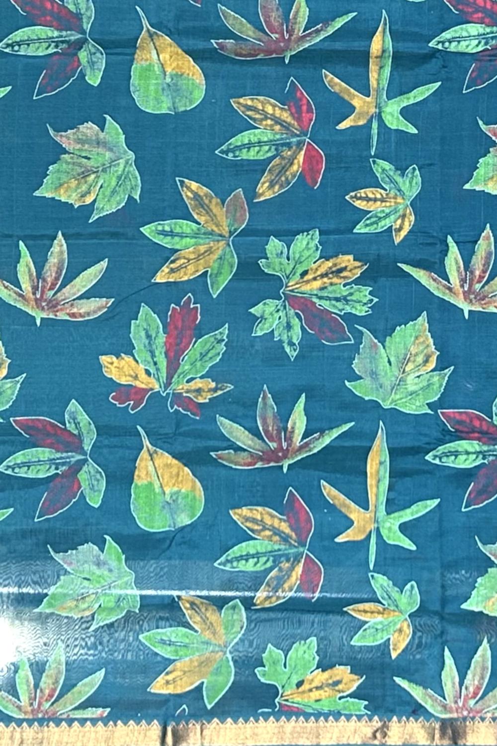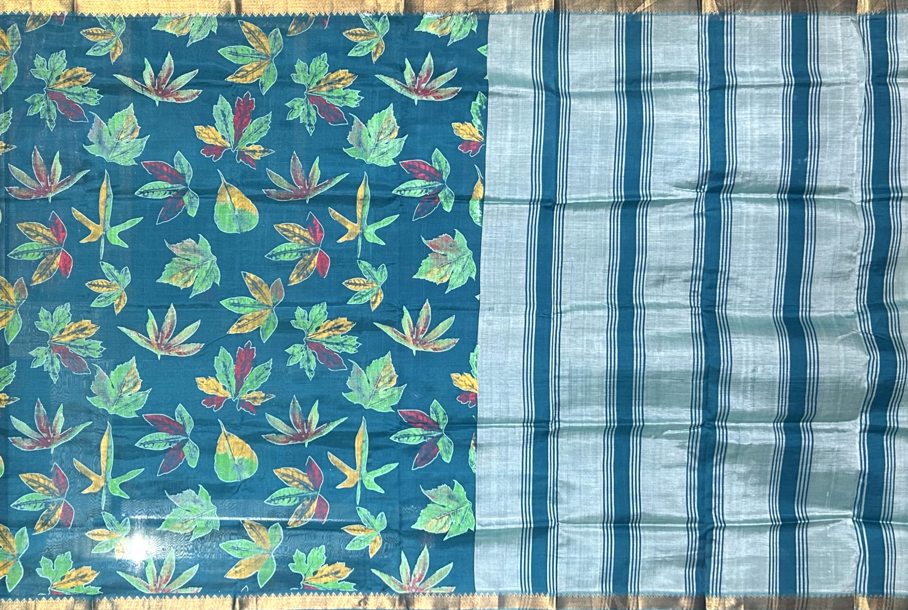 Experience the beauty of hand-painted art on this stunning Blue Gold Seablue Mangalagiri saree. The single-side design adds a touch of sophistication, while the gold accents create a luxurious ambiance.