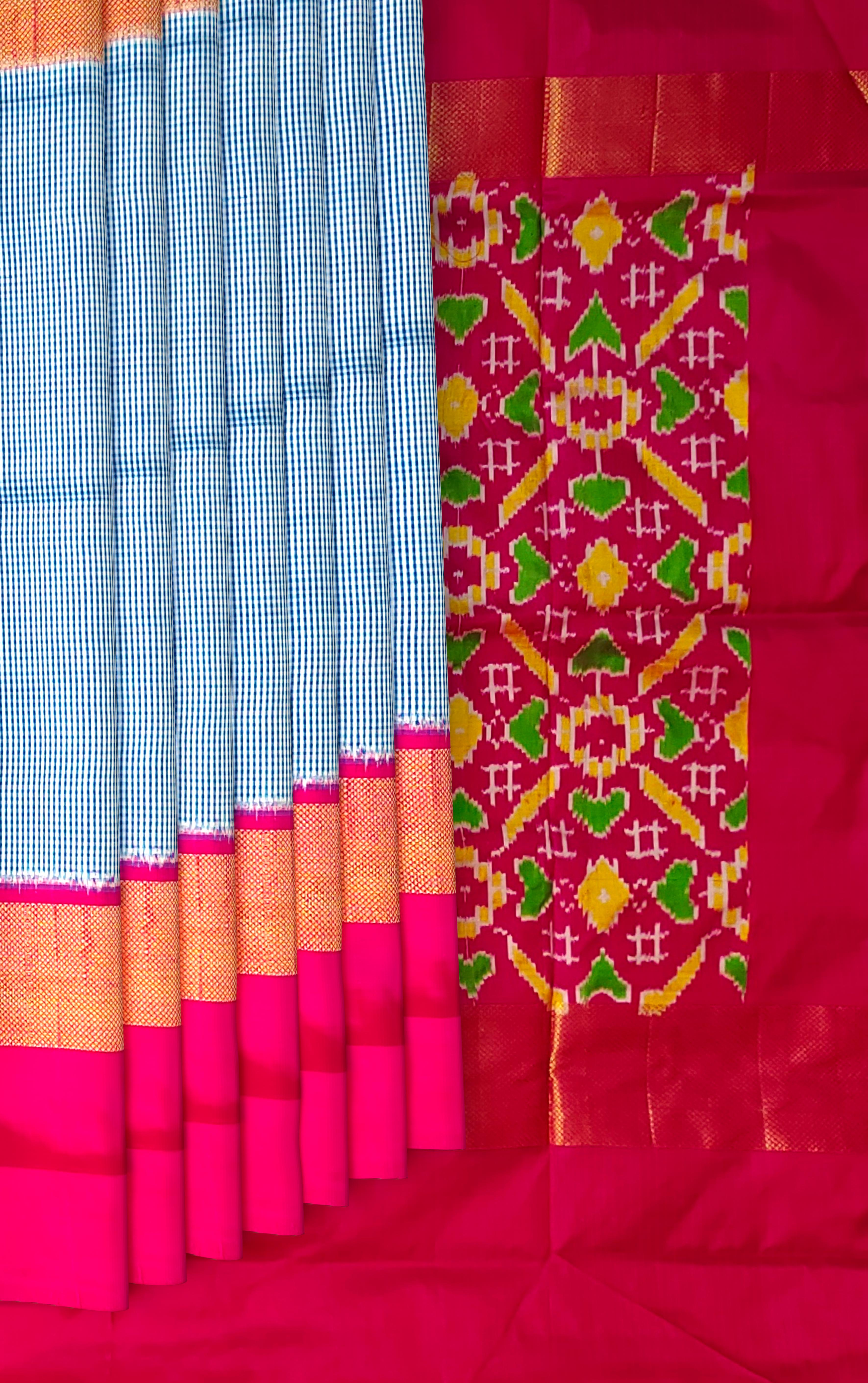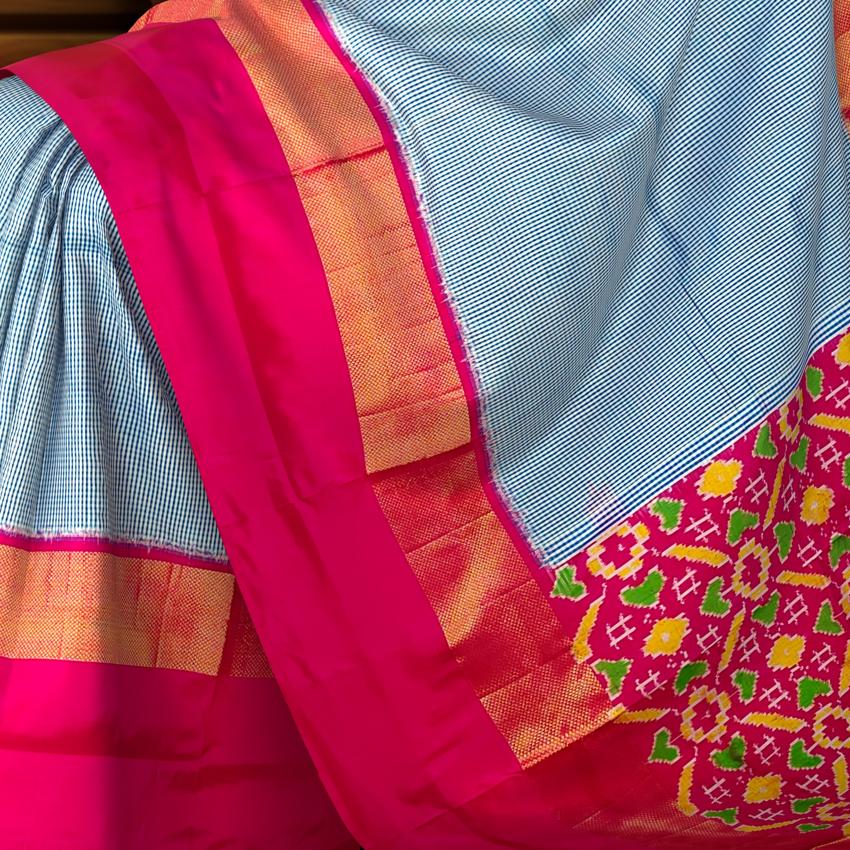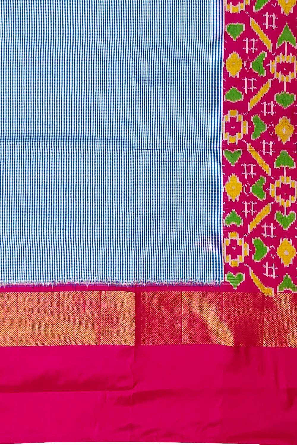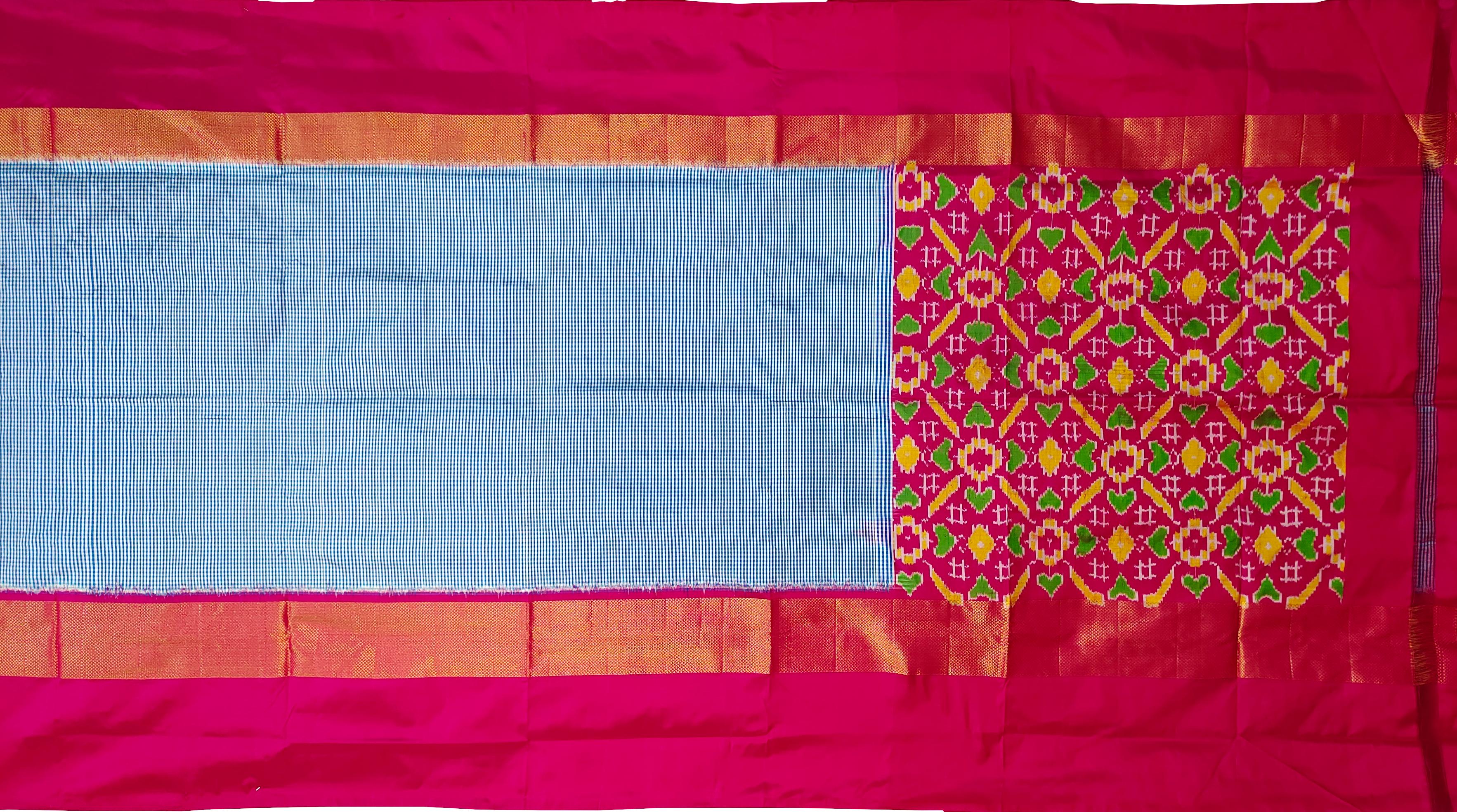 This gorgeous Blue Pink Pochampally Single Ikat Handloom Saree is a vibrant and stunning piece that showcases the beauty of traditional Indian craftsmanship. The saree features intricate gold zari work on a blue and pink background, creating a striking contrast that exudes elegance and sophistication.