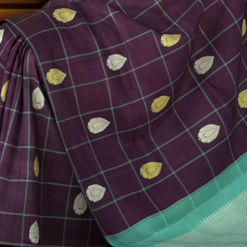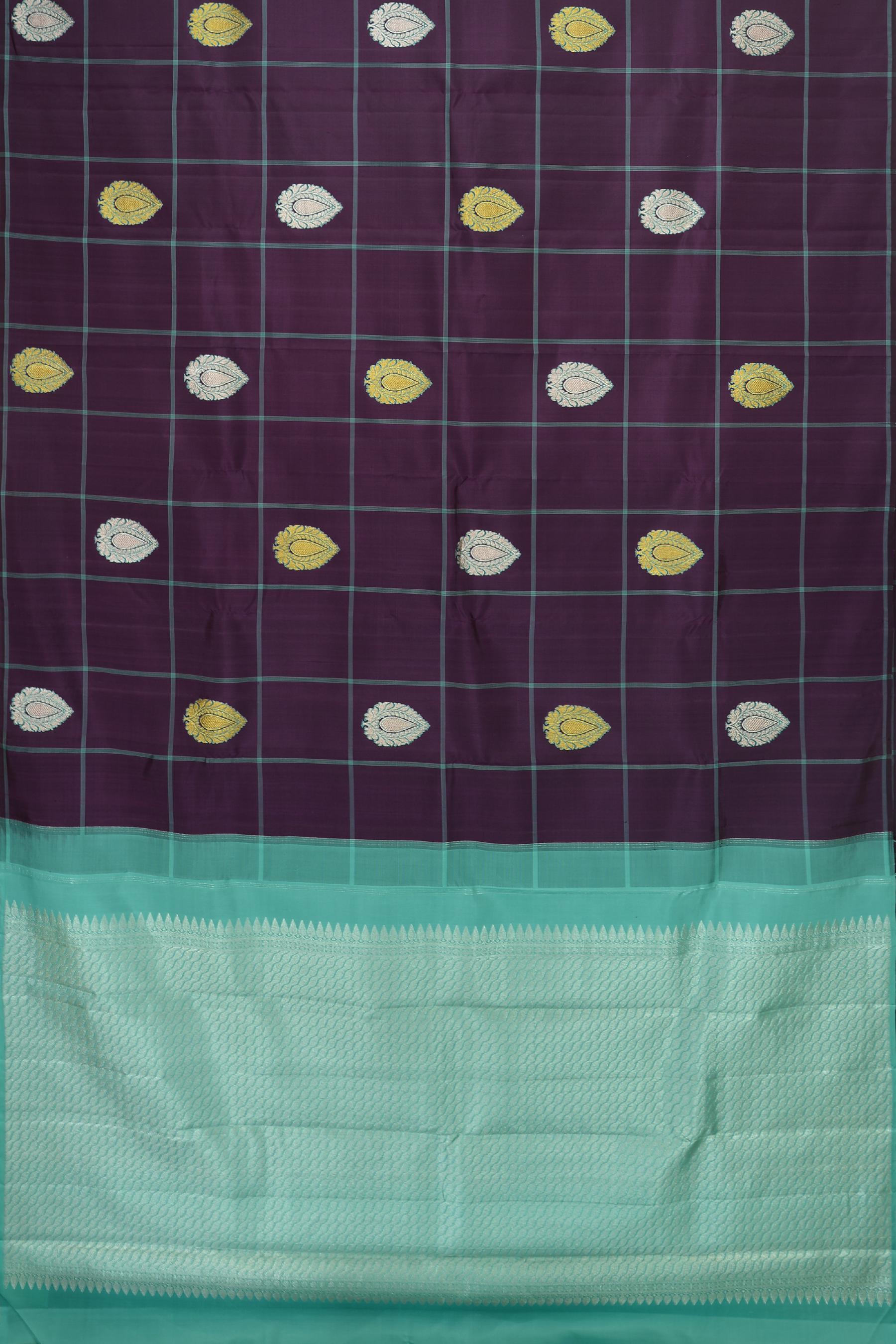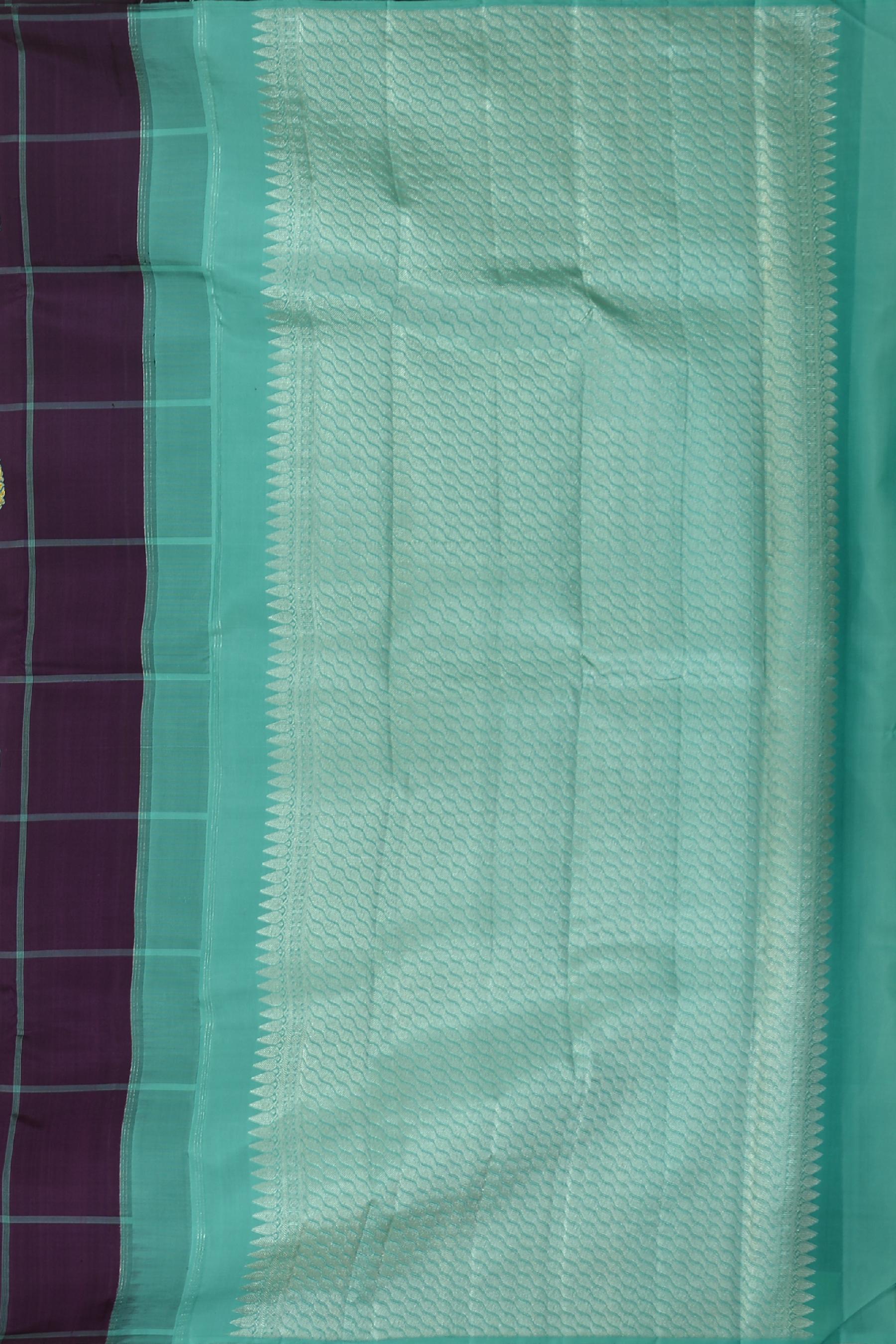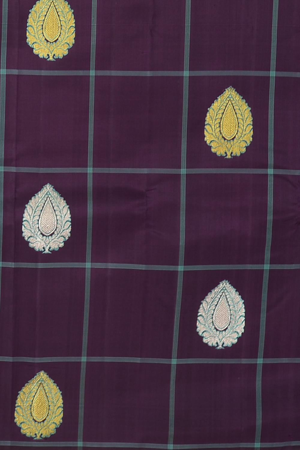 Dive into the deep blue mysteries of the night sky with this Pure Silk Saree, a garment that combines the depth of the ocean with the vastness of the cosmos. The checkered body, adorned with silver and gold zari butta, twinkles like distant stars on a clear evening.