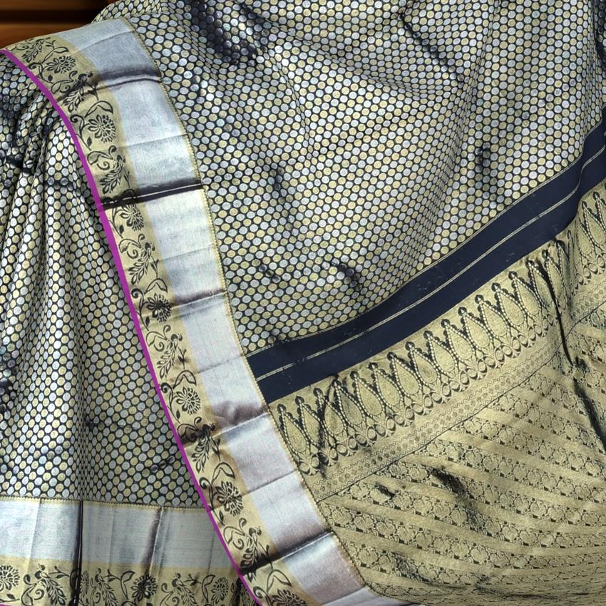 Ideal for grand occasions like weddings, evening receptions, or festive celebrations, this saree promises a majestic presence. Pair it with a metallic blouse—either gold-toned or silver—for a seamless look, or opt for a black blouse with zari work to keep it traditional. Accentuate with heritage jewelry in antique gold or sterling silver to match the jacquard’s tones. This saree is a classic treasure for any woman who values timeless beauty and cultural richness.