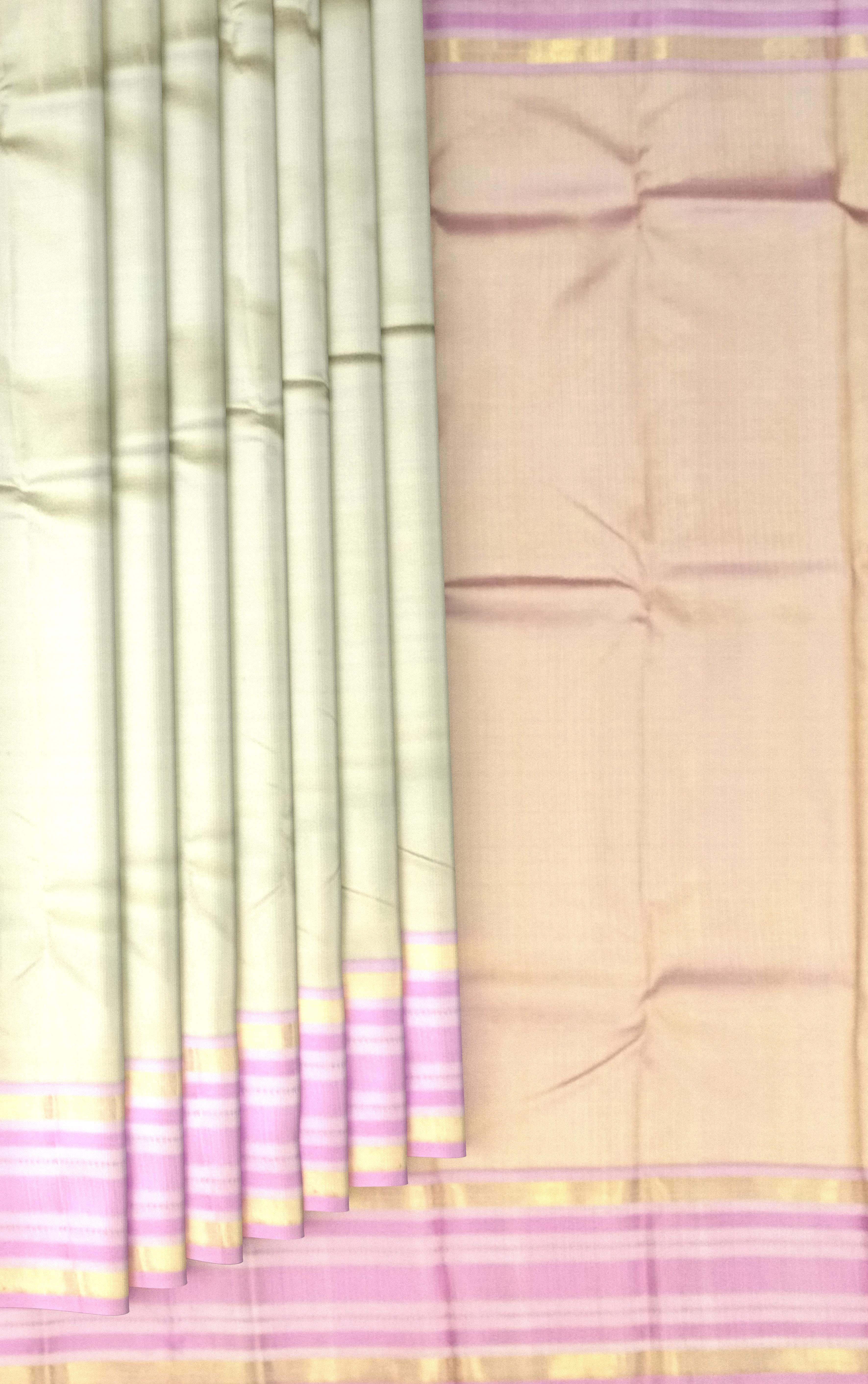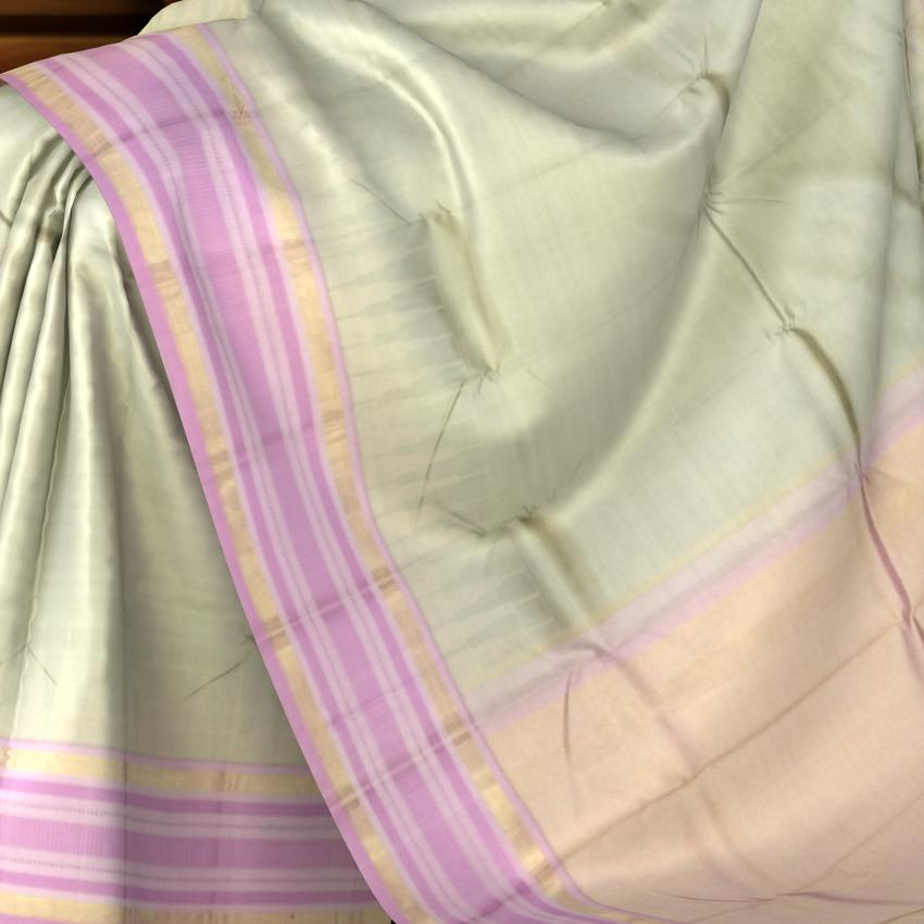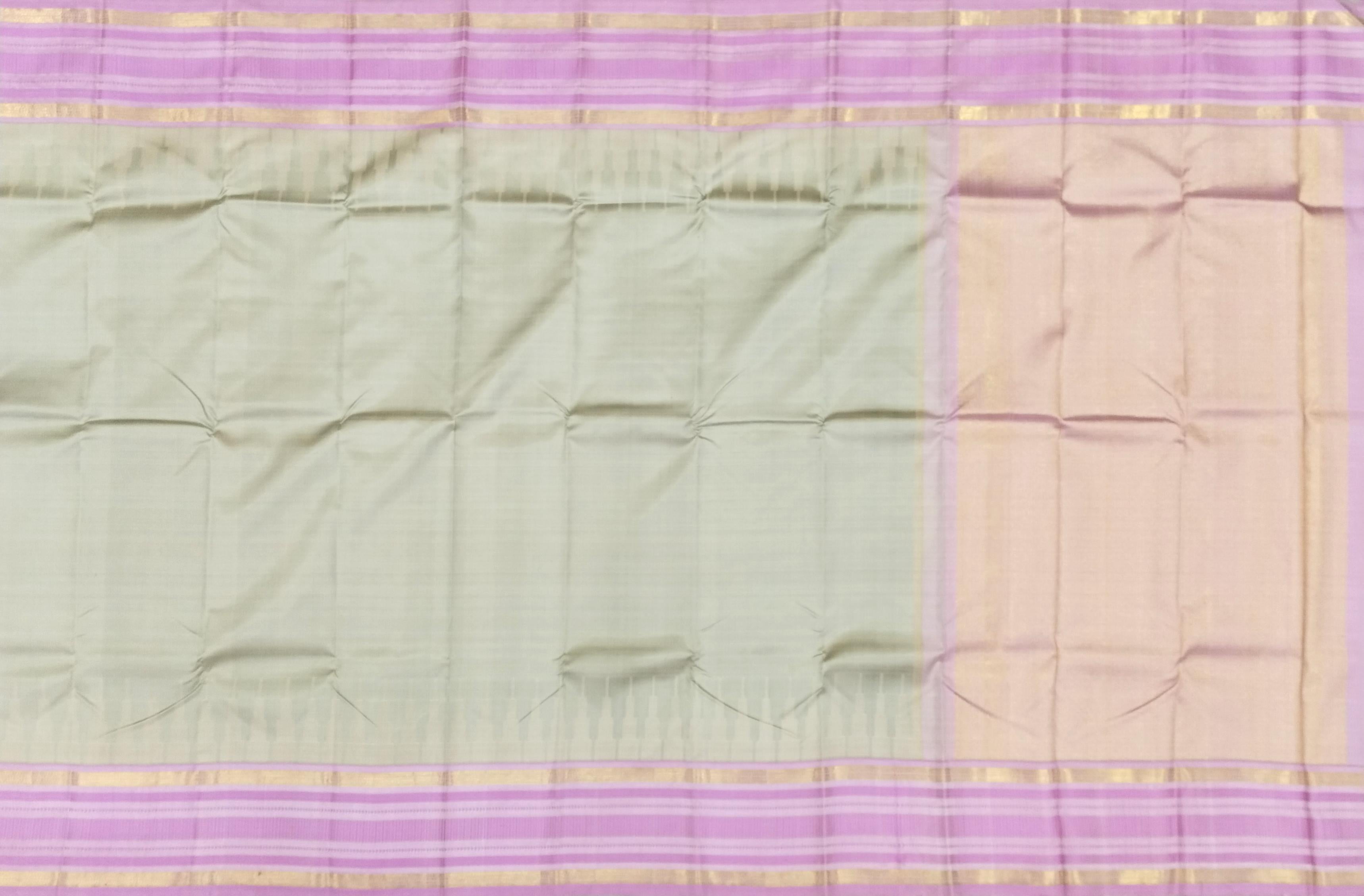 Grace and serenity find their expression in this beige Kanchipuram silk saree, accented by a delicate baby pink temple border. The plain body highlights the softness and purity of the silk, while the subtle temple motifs on the border add a sacred charm and cultural depth. This serene color palette is perfect for those who appreciate minimalism blended with heritage.