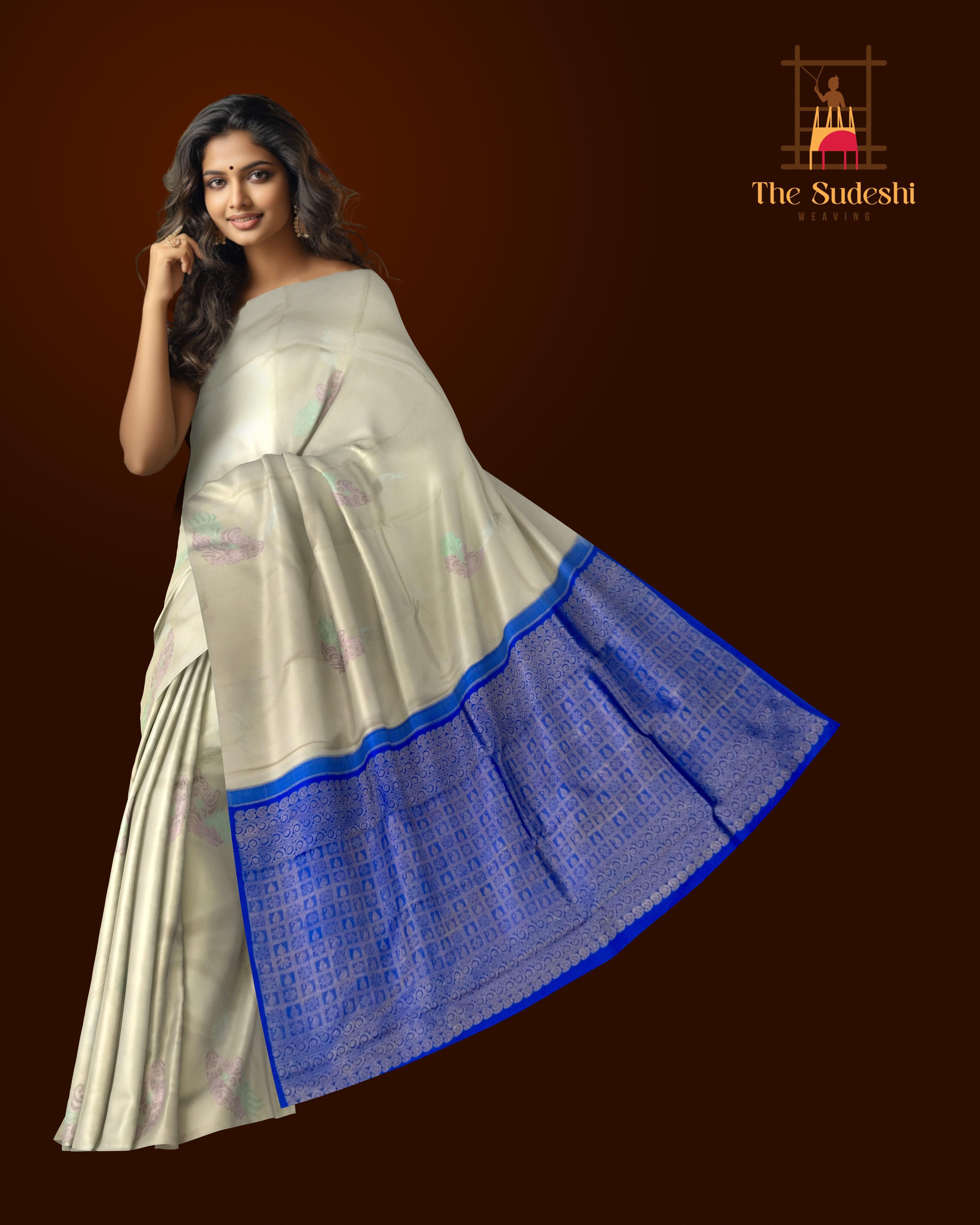 All our sarees are handwoven and made from pure silk, unless stated otherwise. However, since our weavers are traditional artisans, they may not always have official Handloom or Silk Mark certifications for their work.
