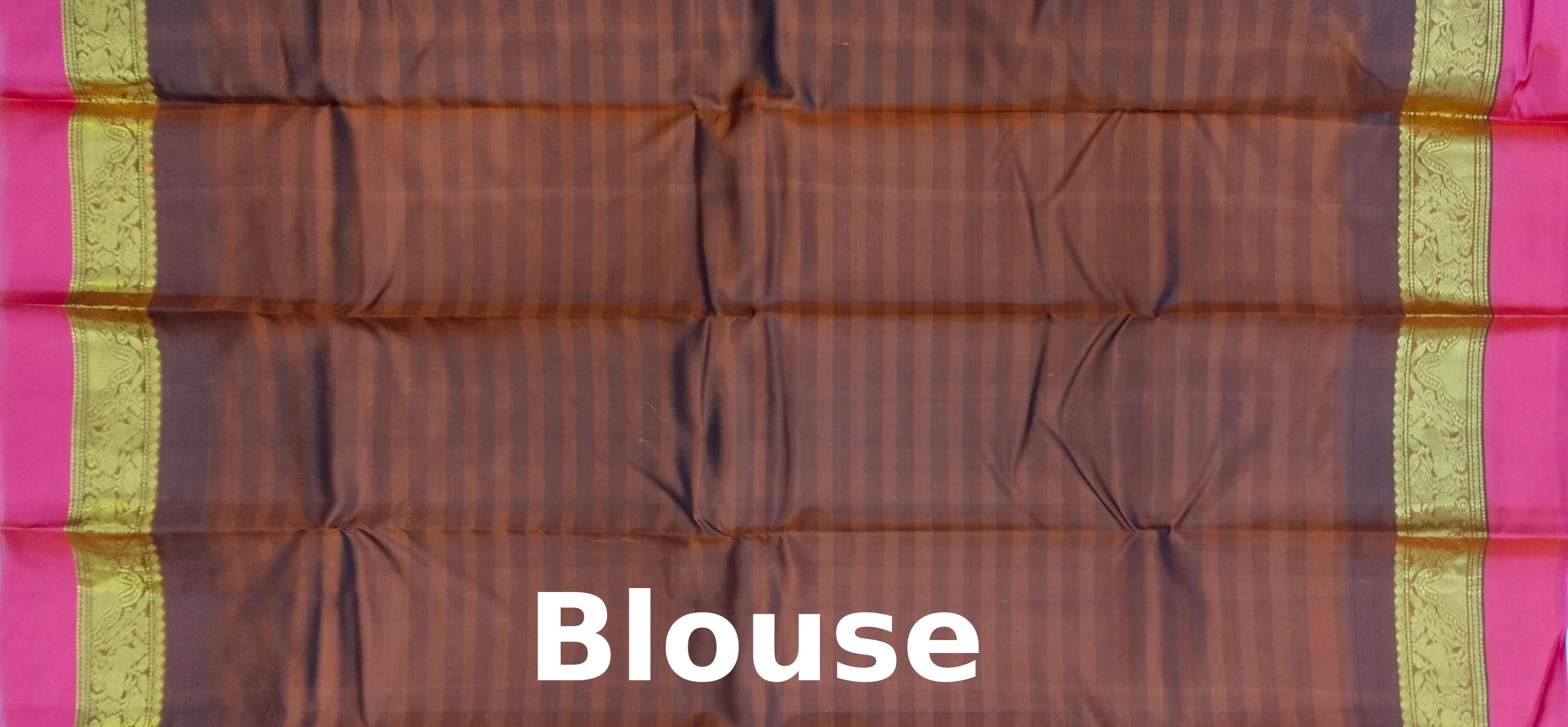 This enchanting saree, with its multi-color border and a warm brown pallu and matching brown blouse, is ideal for festive celebrations, traditional gatherings, or any occasion where you wish to make a distinctive fashion statement. Its vibrant palette allows for creative accessorizing. Pair it with contrasting colored stone jewelry to echo the multi-color accents or classic gold for a timeless look. A classic updo or a neatly tied bun would beautifully complement its intricate design, ensuring you exude charm and elegance.