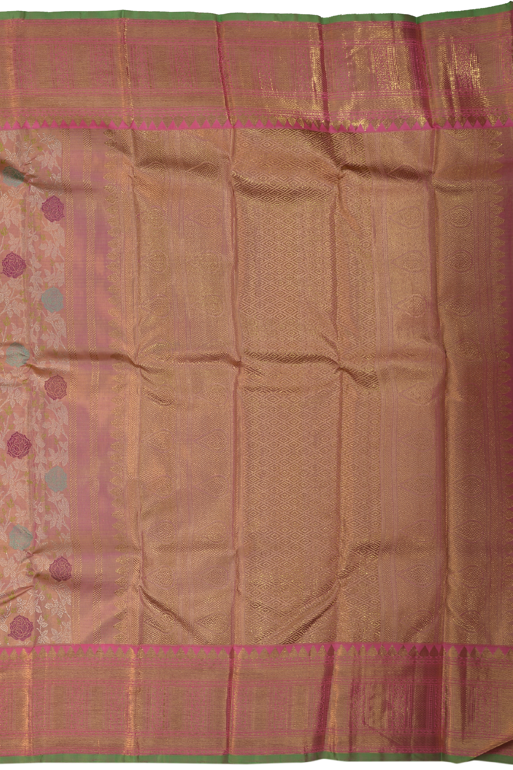| Pallu Color | Candy pink with green selvage |