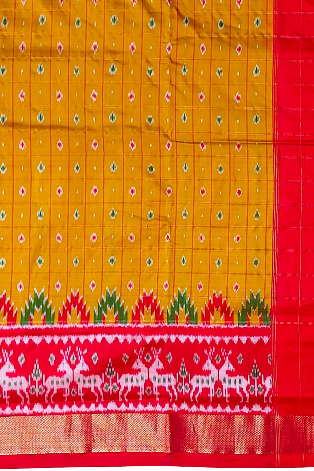 This Golden Yellow Red Pochampally Single Ikat Handloom Saree is perfect for formal occasions like weddings, festivals, and special events. Pair it with a matching golden yellow or red-colored blouse and accessories like gold jewelry and a statement handbag to complete the look.