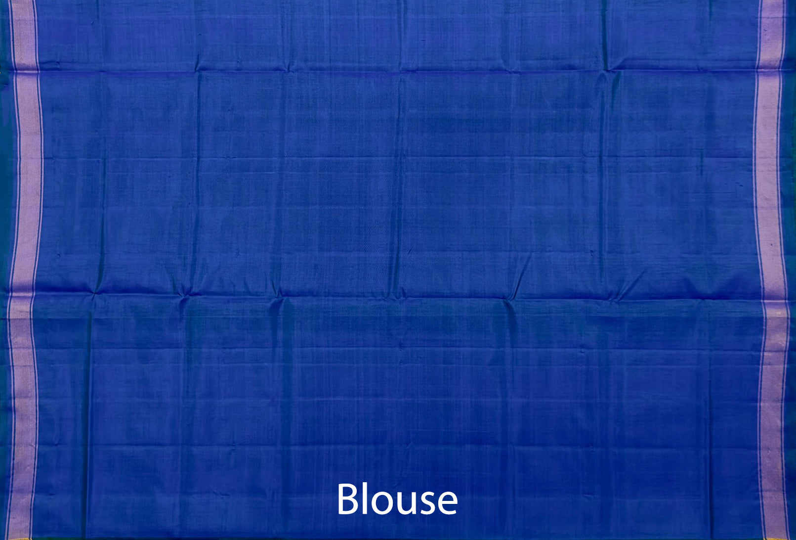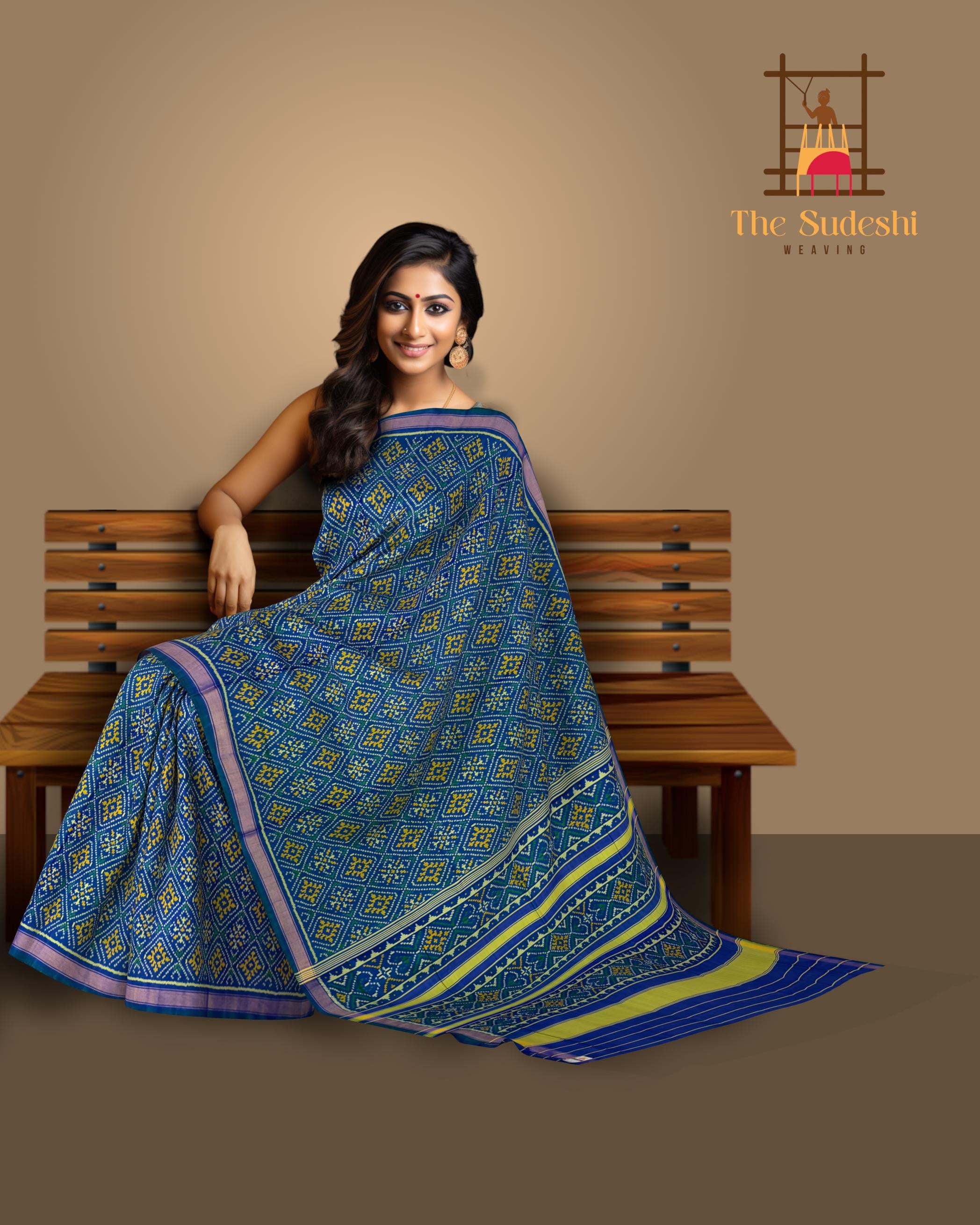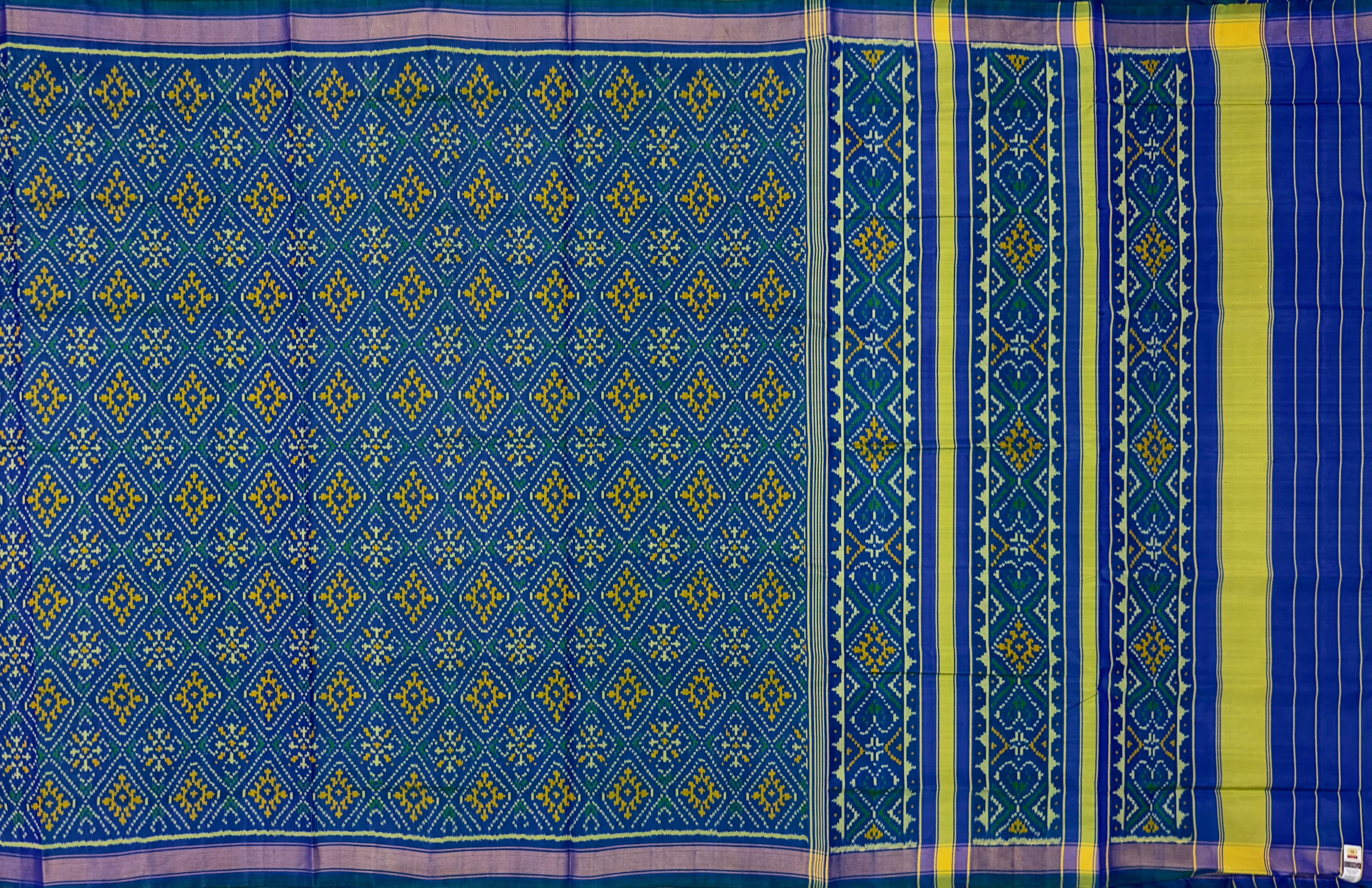 Revel in the lush hues of the Green Blue Chanda Bhat Regular Rajkot Patola Saree. Crafted with precision using the single ikat technique, this saree is perfect for festive occasions, blending tradition with a splash of vibrant color.
