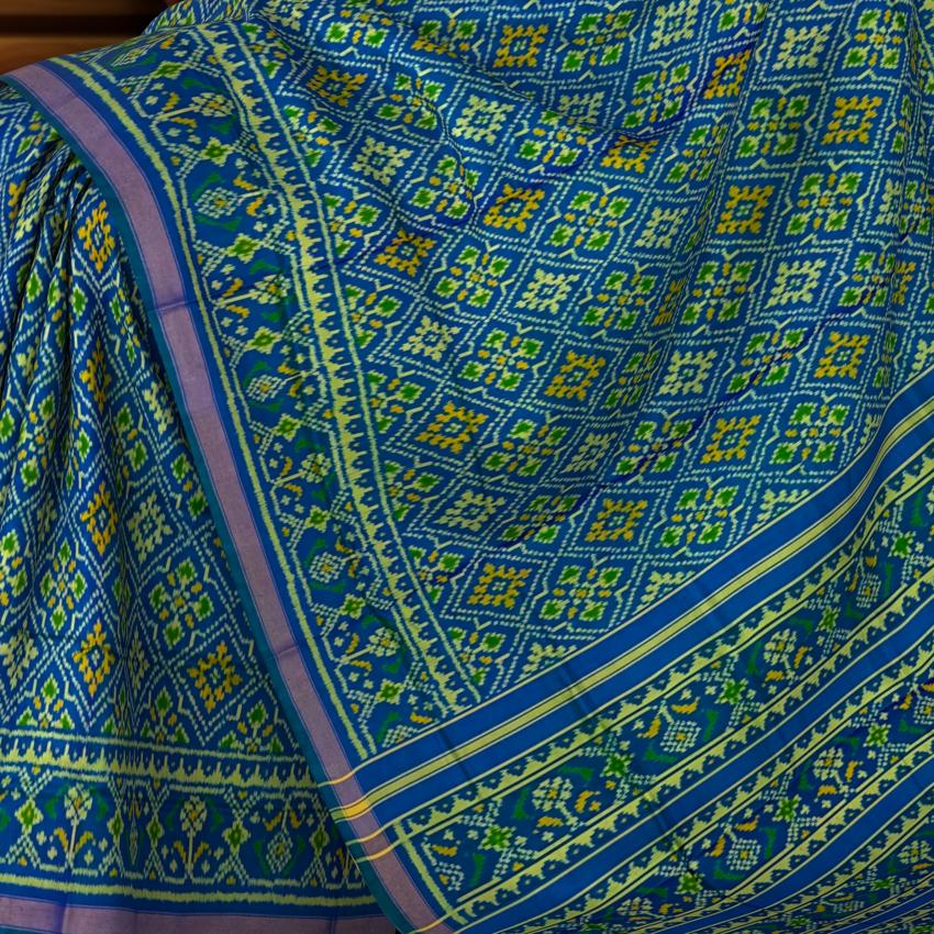 Crafted using the Single Ikat technique, this saree is a testament to the skill and craftsmanship of the Rajkot Patola weavers. The intricate patterns are achieved through a meticulous process of dyeing the yarn before weaving, ensuring that each design is perfectly aligned on the fabric. The semi-lustre finish adds a touch of contemporary style, making this saree a versatile addition to any wardrobe.