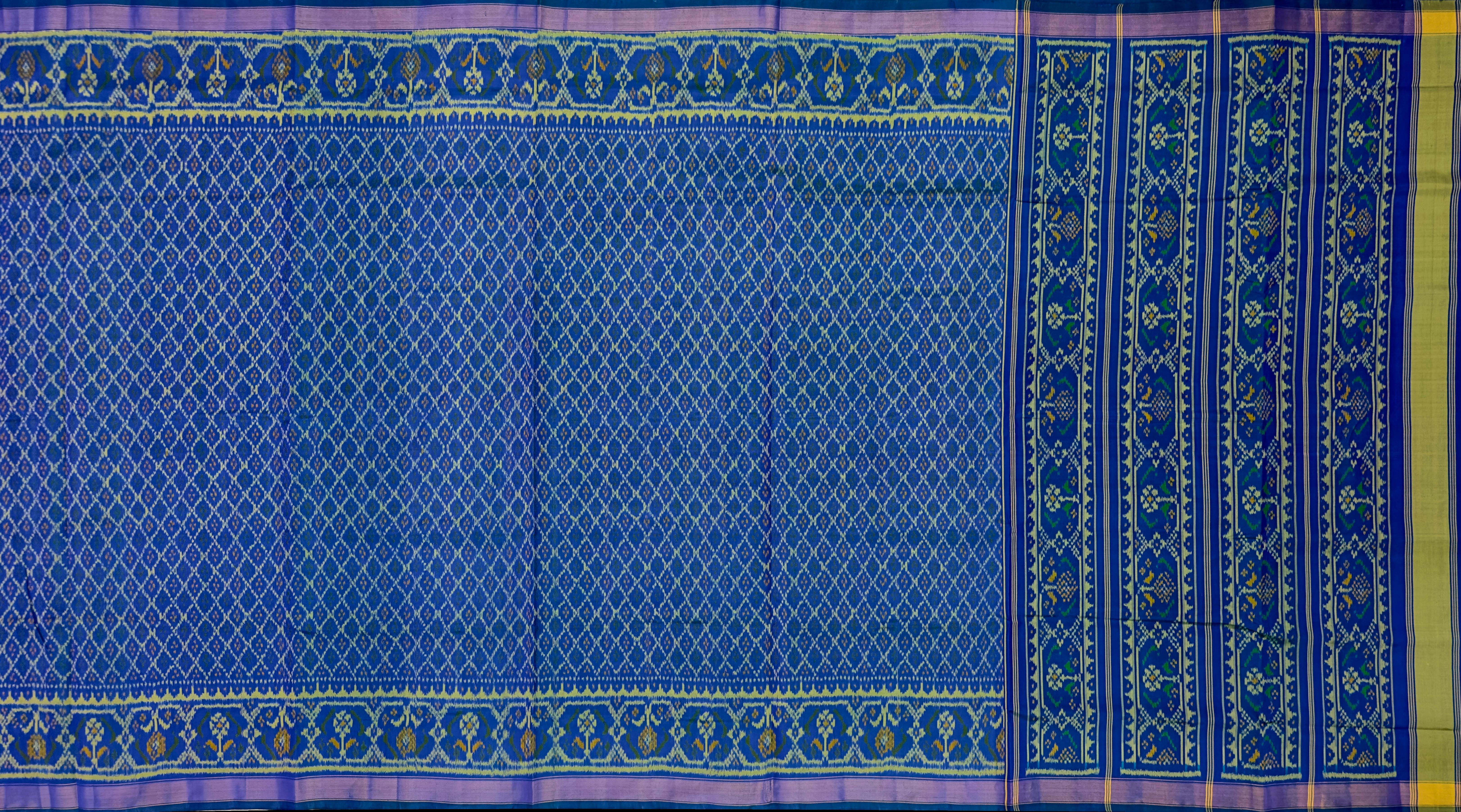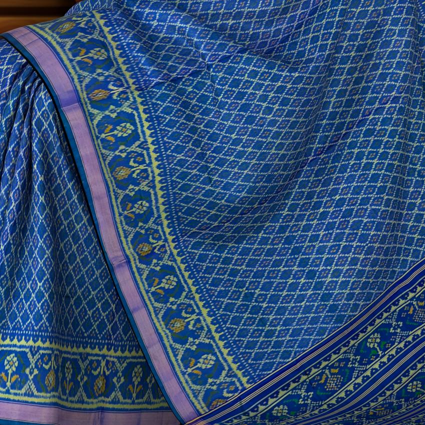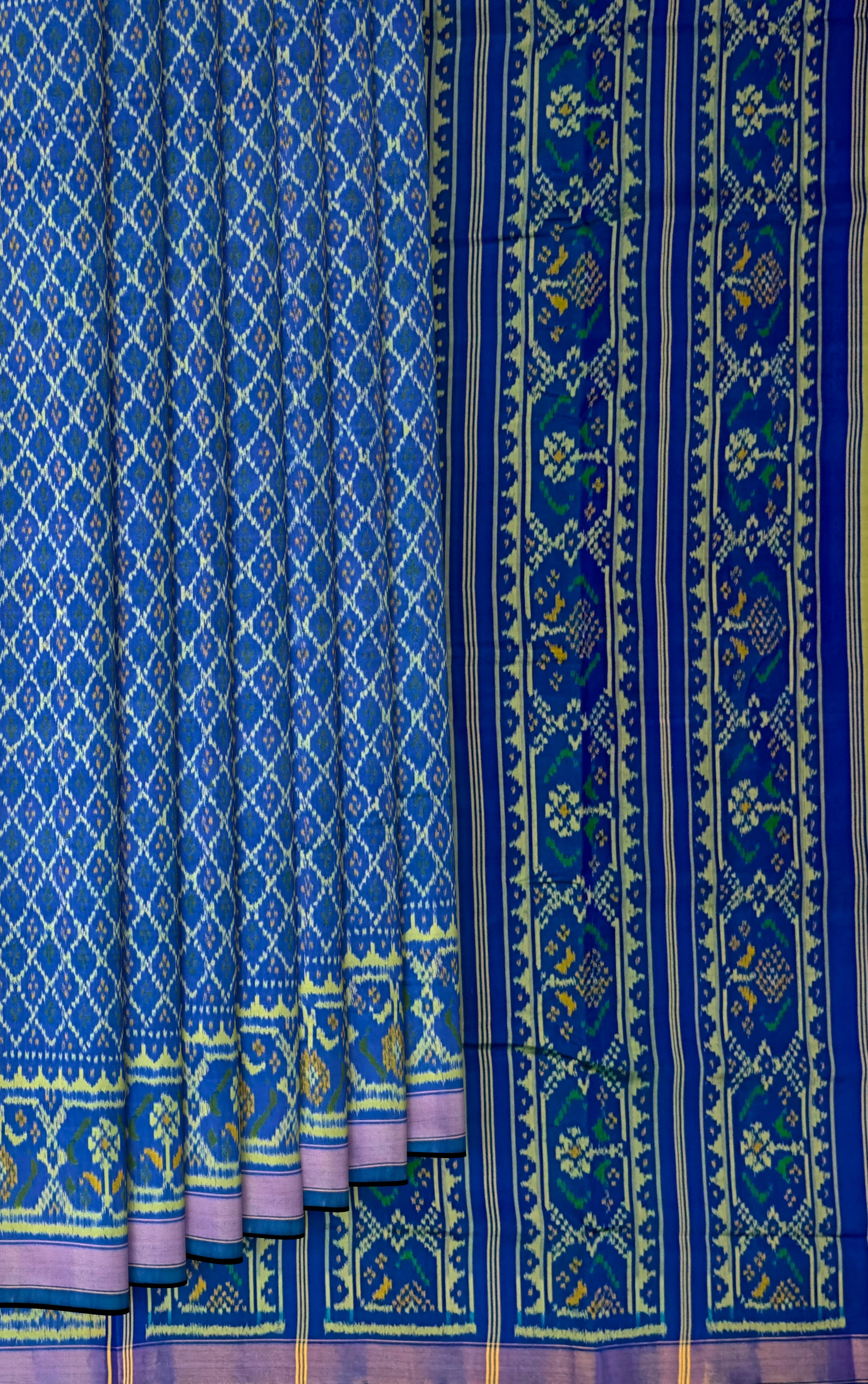Green Blue Daliyabhat Border Pallu Ghughro (LP) Single Ikat Rajkot Patola Saree