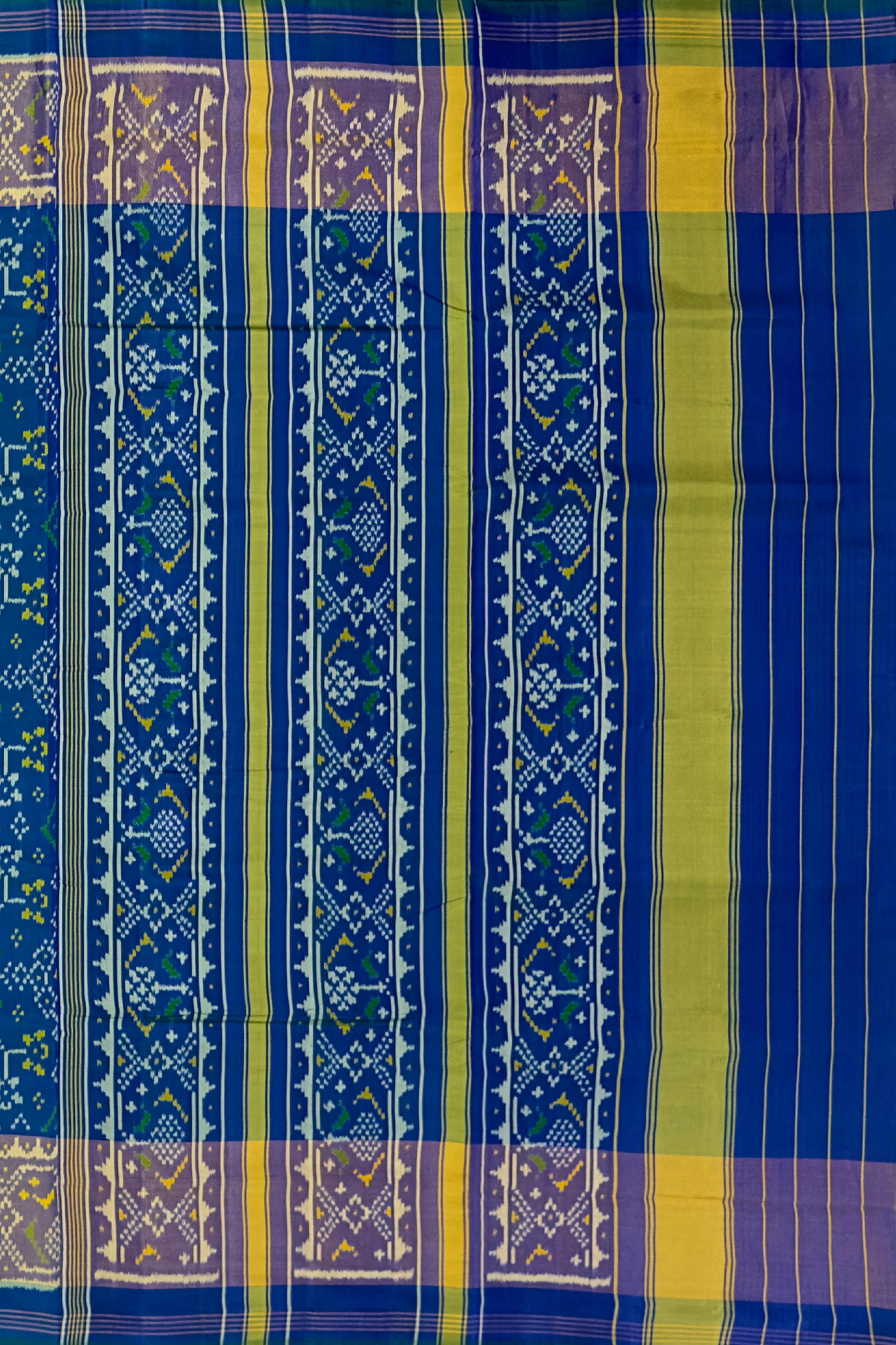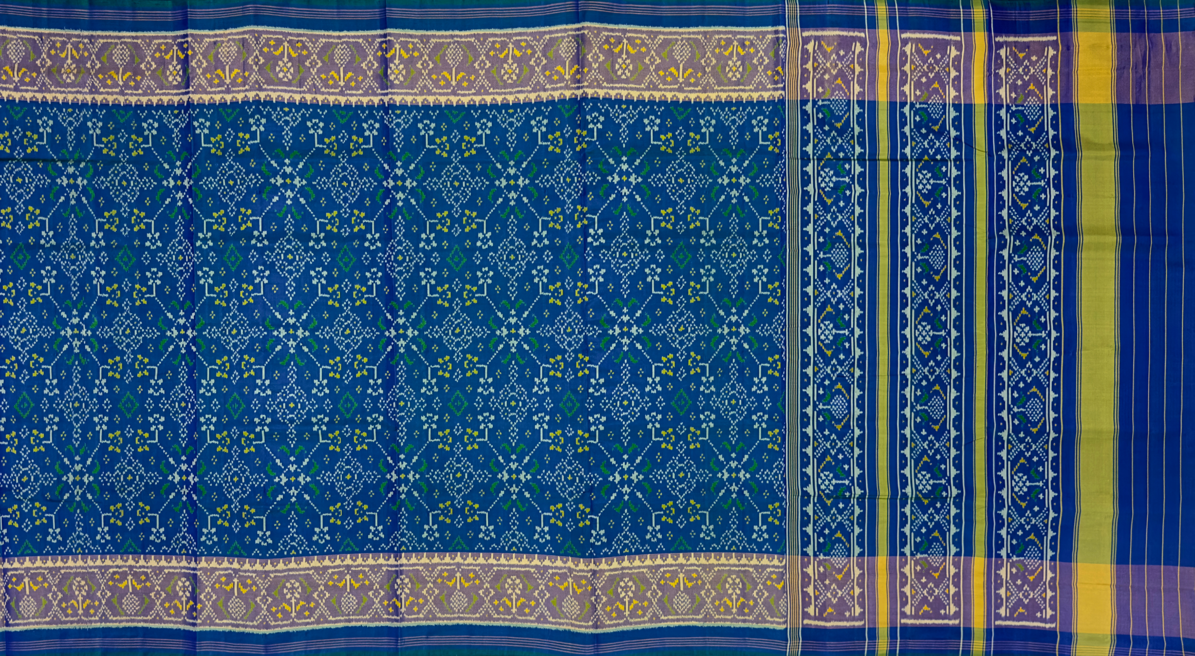 The Rajkot Patola weaving technique is a centuries-old art form that requires precision and dedication. Each saree is handwoven with care, reflecting the rich cultural heritage of Gujarat. The symbolic designs and vibrant colors of the Rajkot Patola sarees make them a timeless addition to any wardrobe. Wear this Green Blue Single Ikat Rajkot Patola Saree to celebrate the artistry and tradition of Indian handloom, and make every occasion truly special.