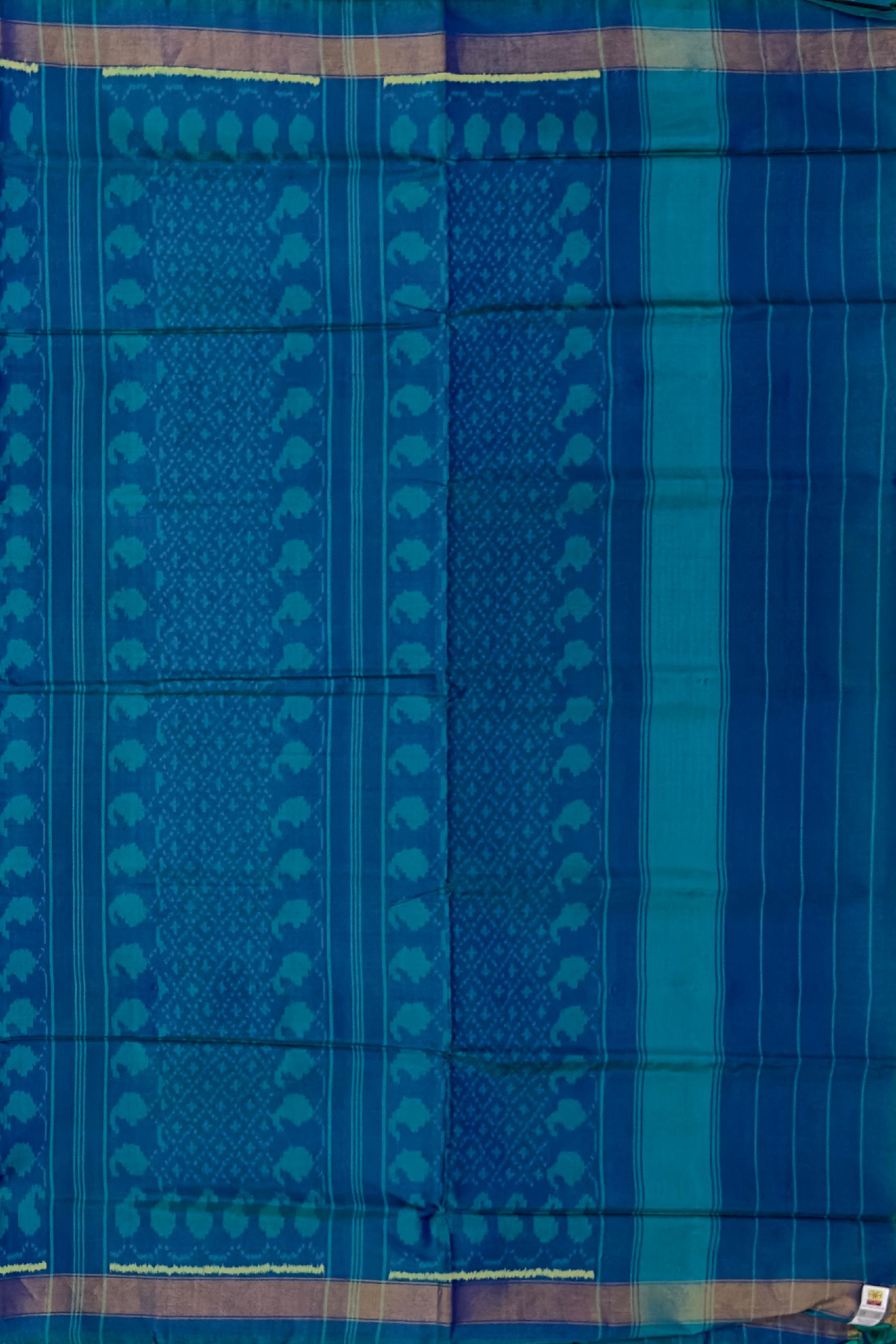 The Green Morpinch Shanku Regular Rajkot Patola Saree, with its Keri patterns, offers an exotic touch to your wardrobe. Its vivid green morpinch color is great for celebrations where standing out is key.