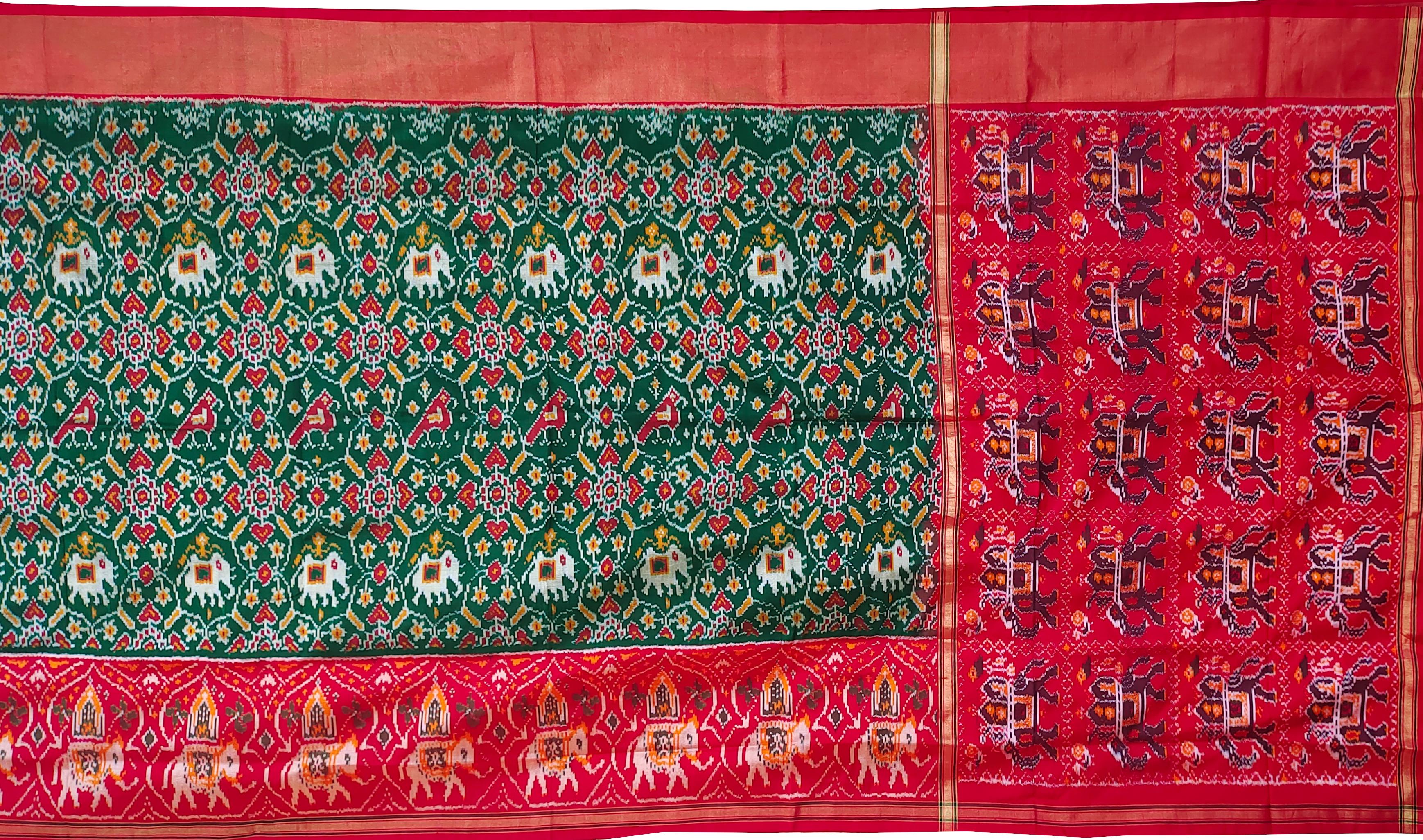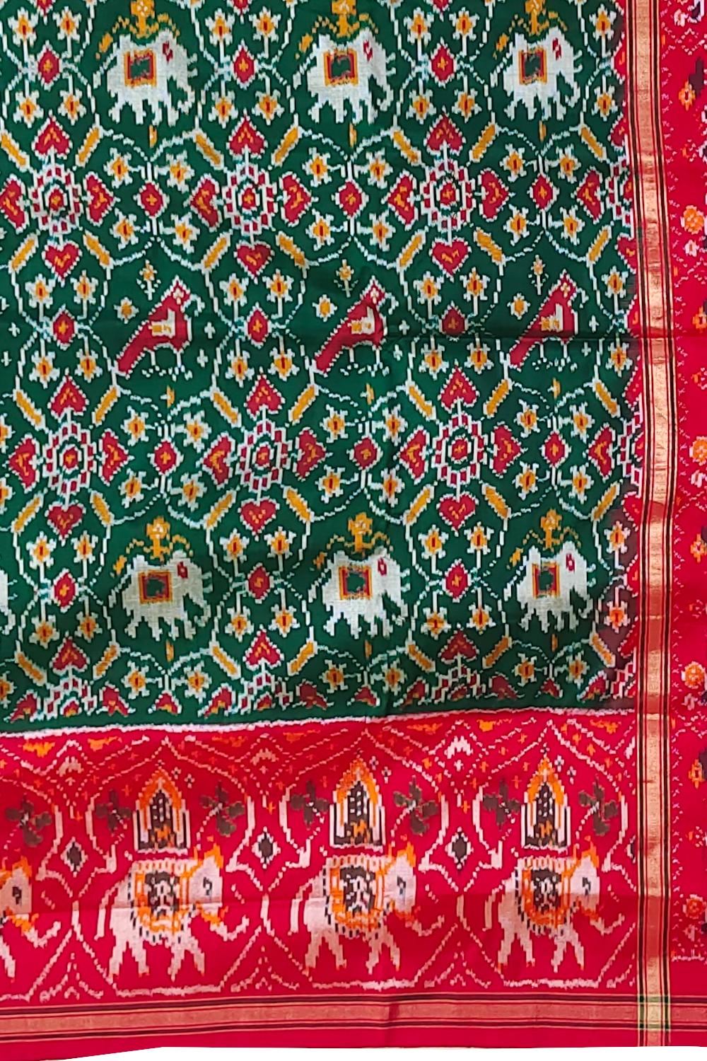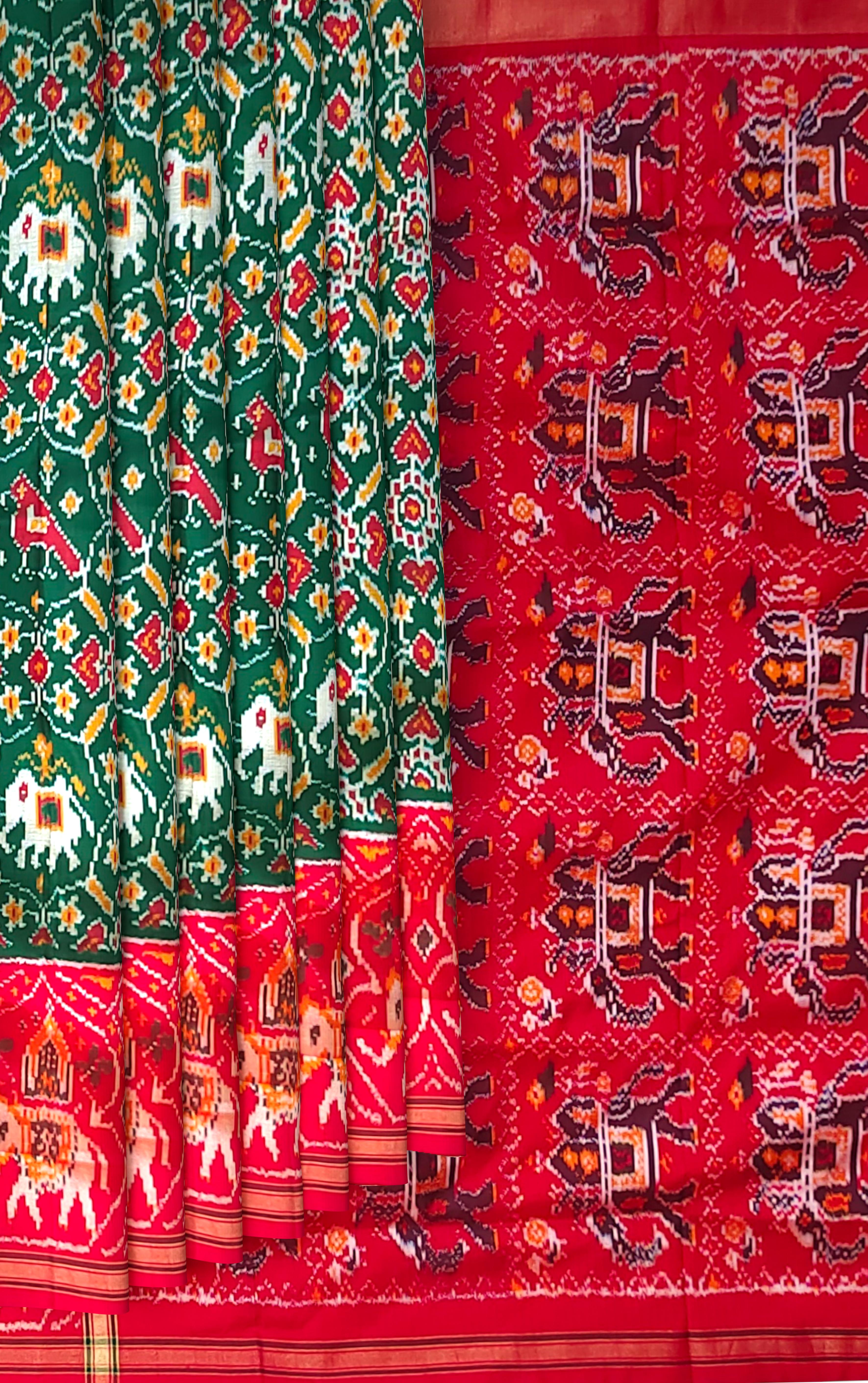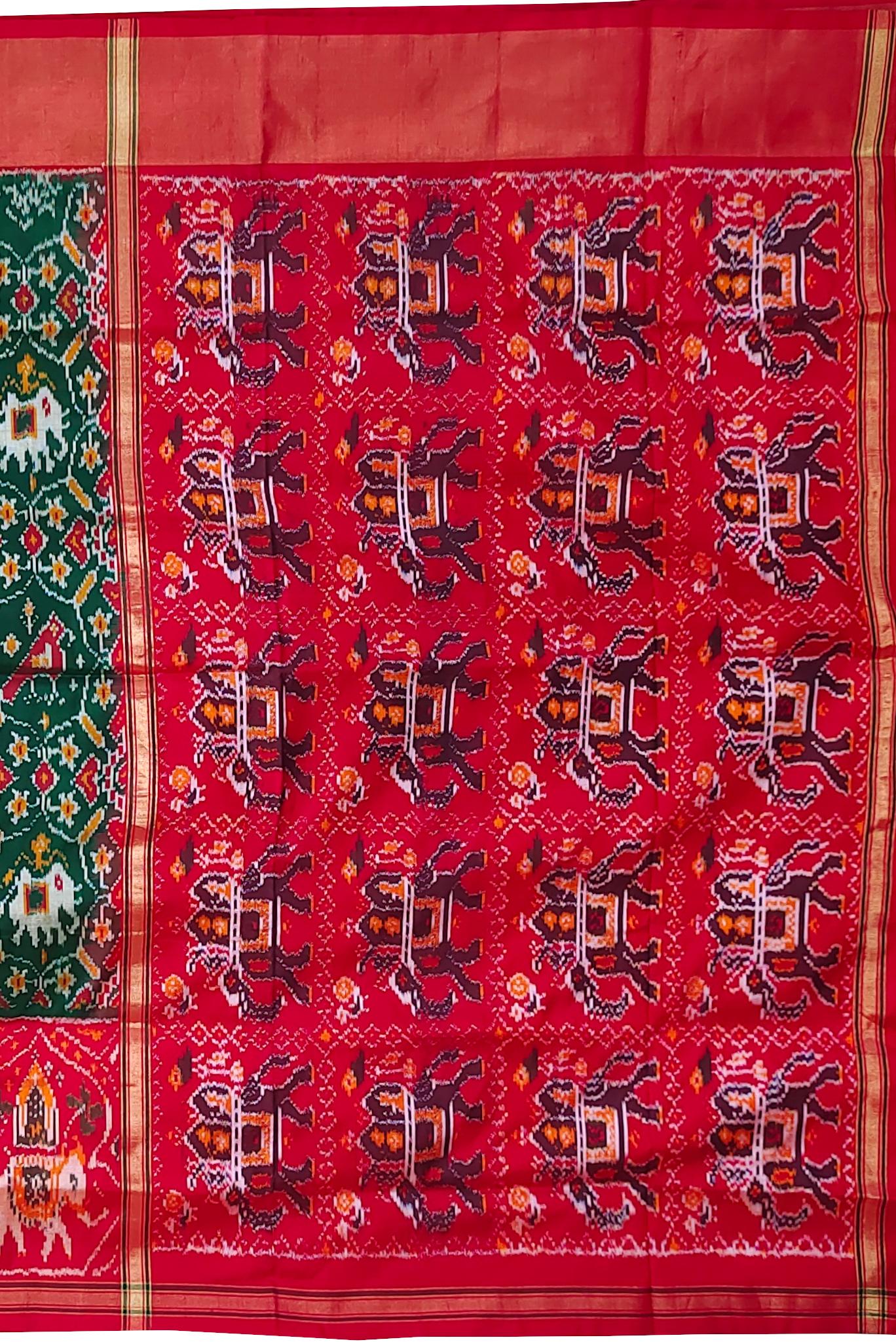 This stunning Green Orange Pochampally Single Ikat Handloom Saree is a beautiful piece that showcases the artistry of traditional Indian craftsmanship. The saree features intricate gold zari work on a green and orange background, creating a striking contrast that exudes elegance and sophistication.