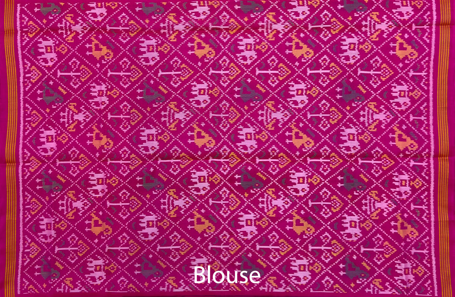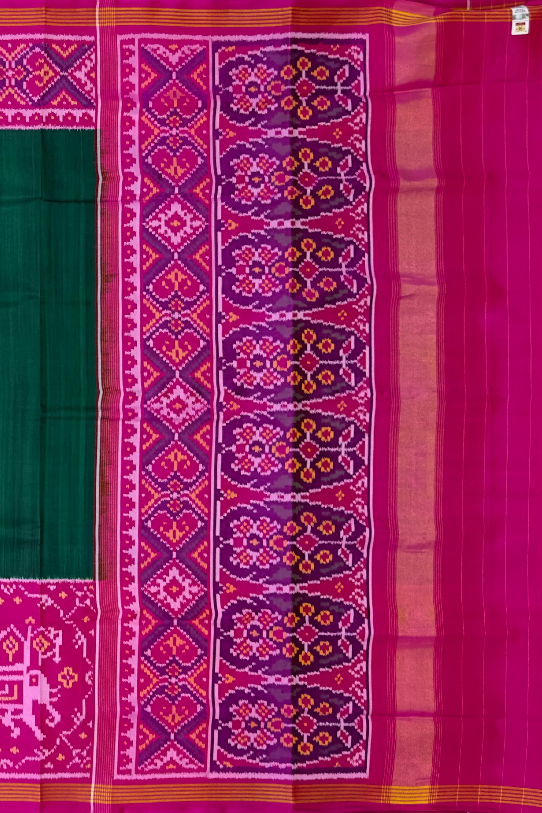 The Green Pink Bottle Green Skirt Semi Patan Saree is perfect for those who prefer a bold, festive look. Its vibrant green and pink hues and traditional patterns are sure to make an impression at any event.
