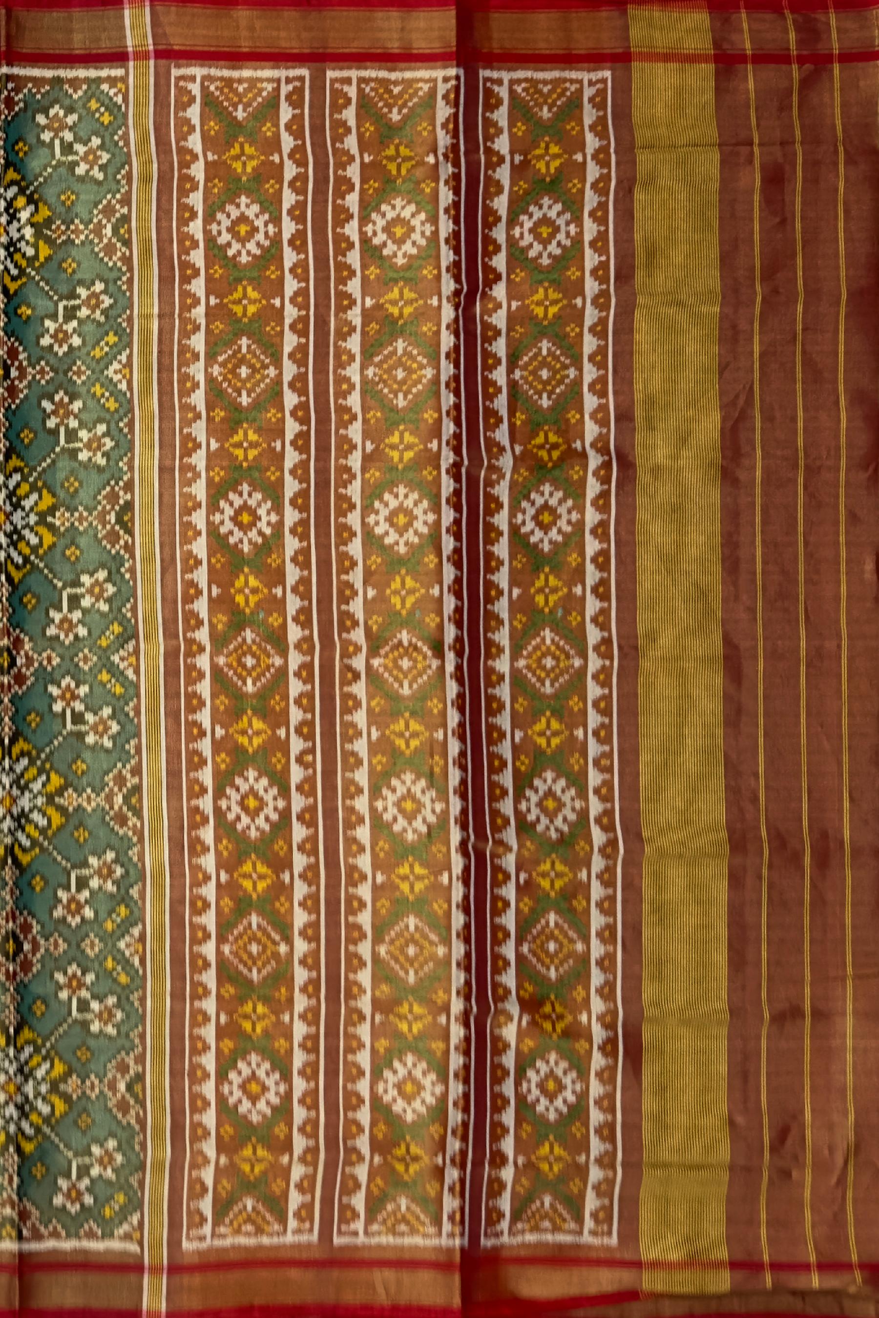 The Green Tissue Full Navratna Light Green Saree is an emblem of artisanal beauty, perfect for special occasions where making a lasting impression is key. Its light green and maroon colors add a fresh dimension to traditional attire.