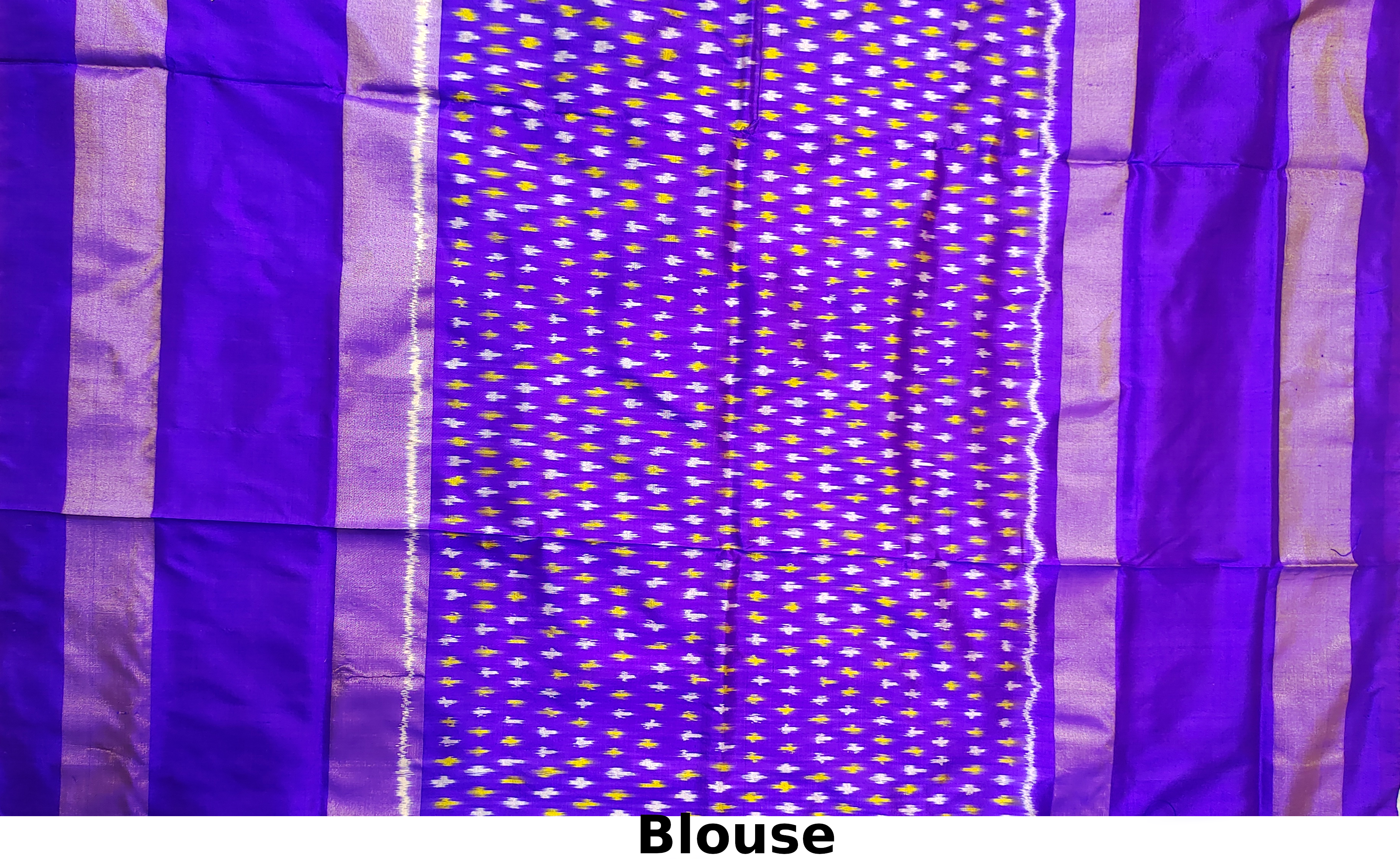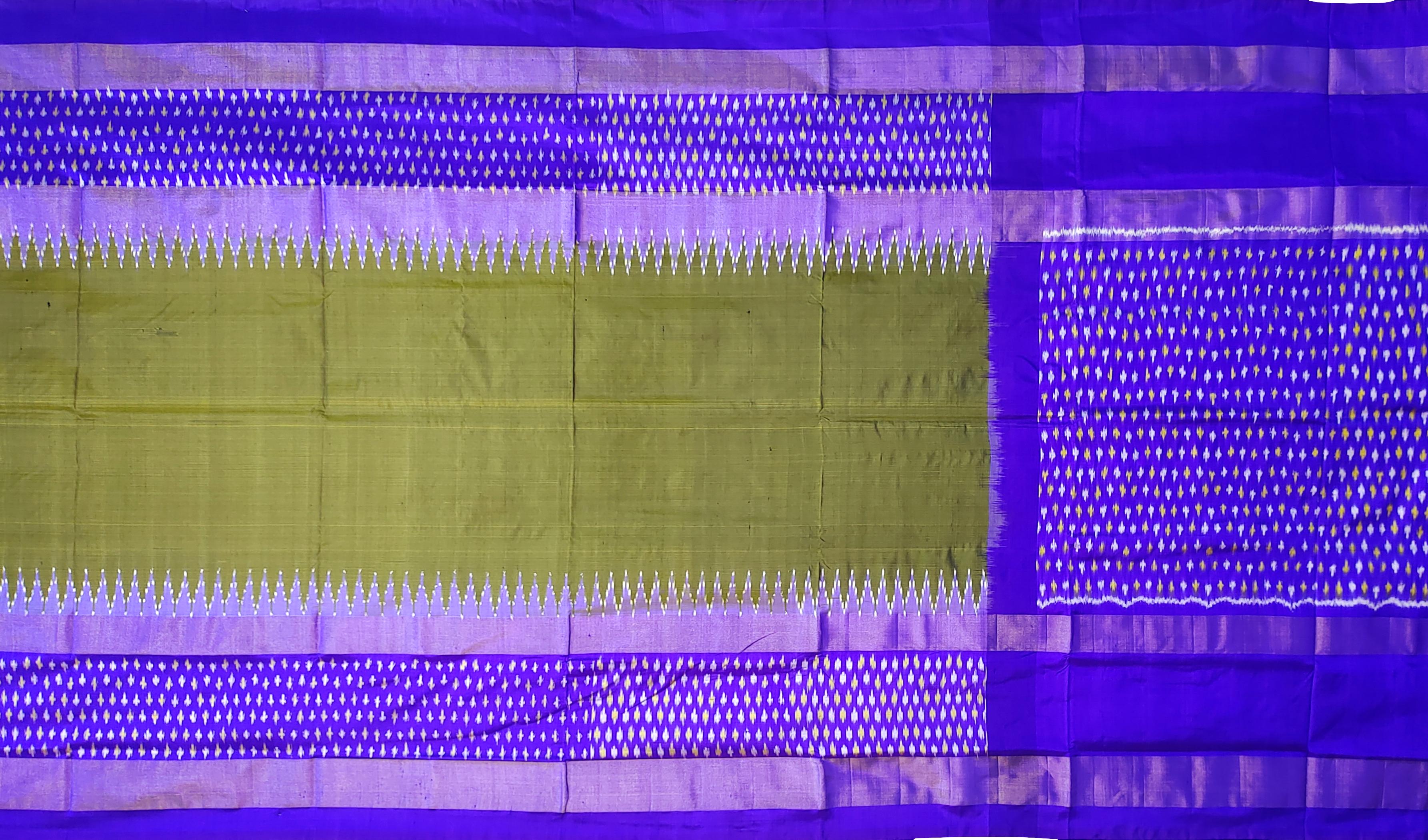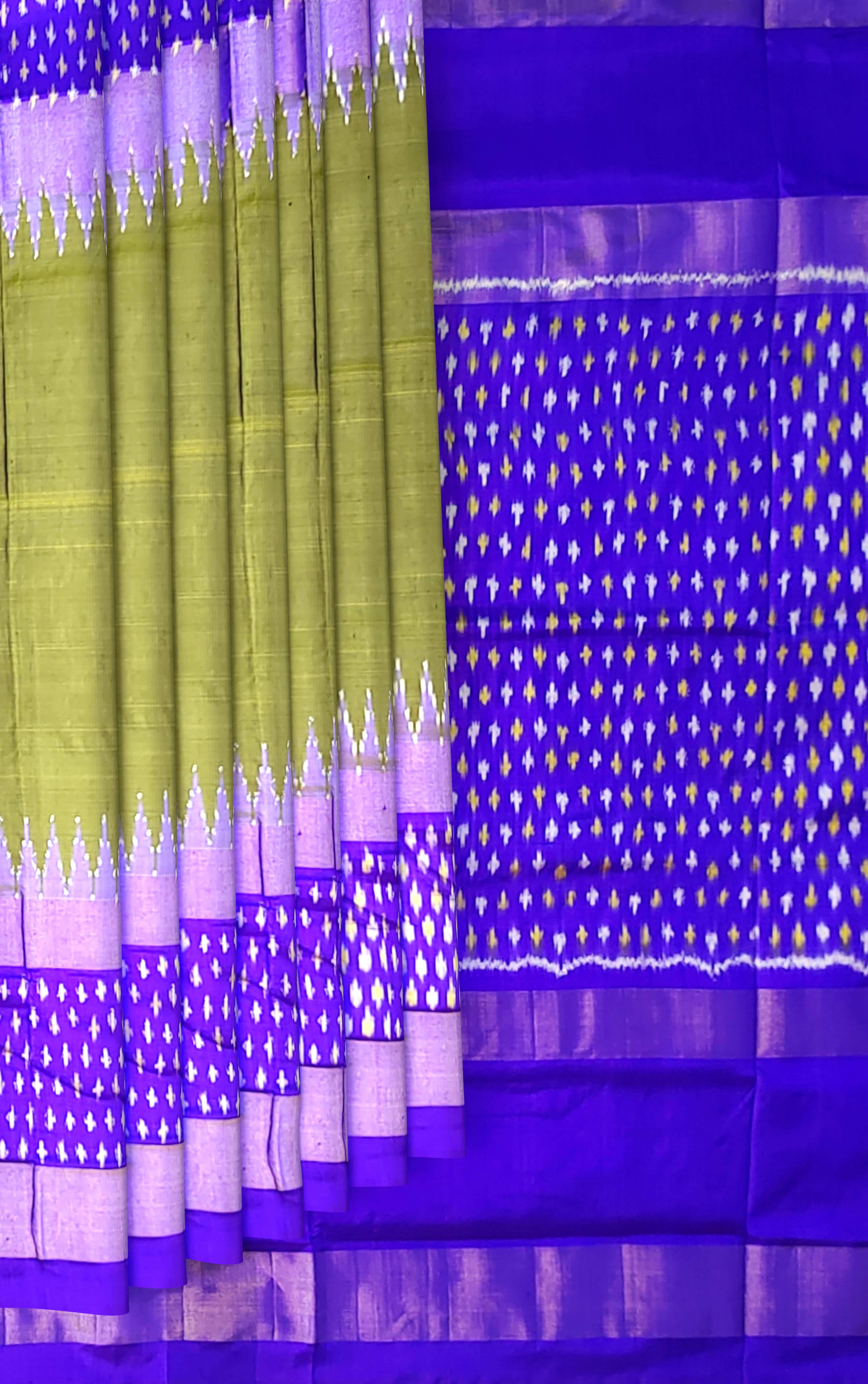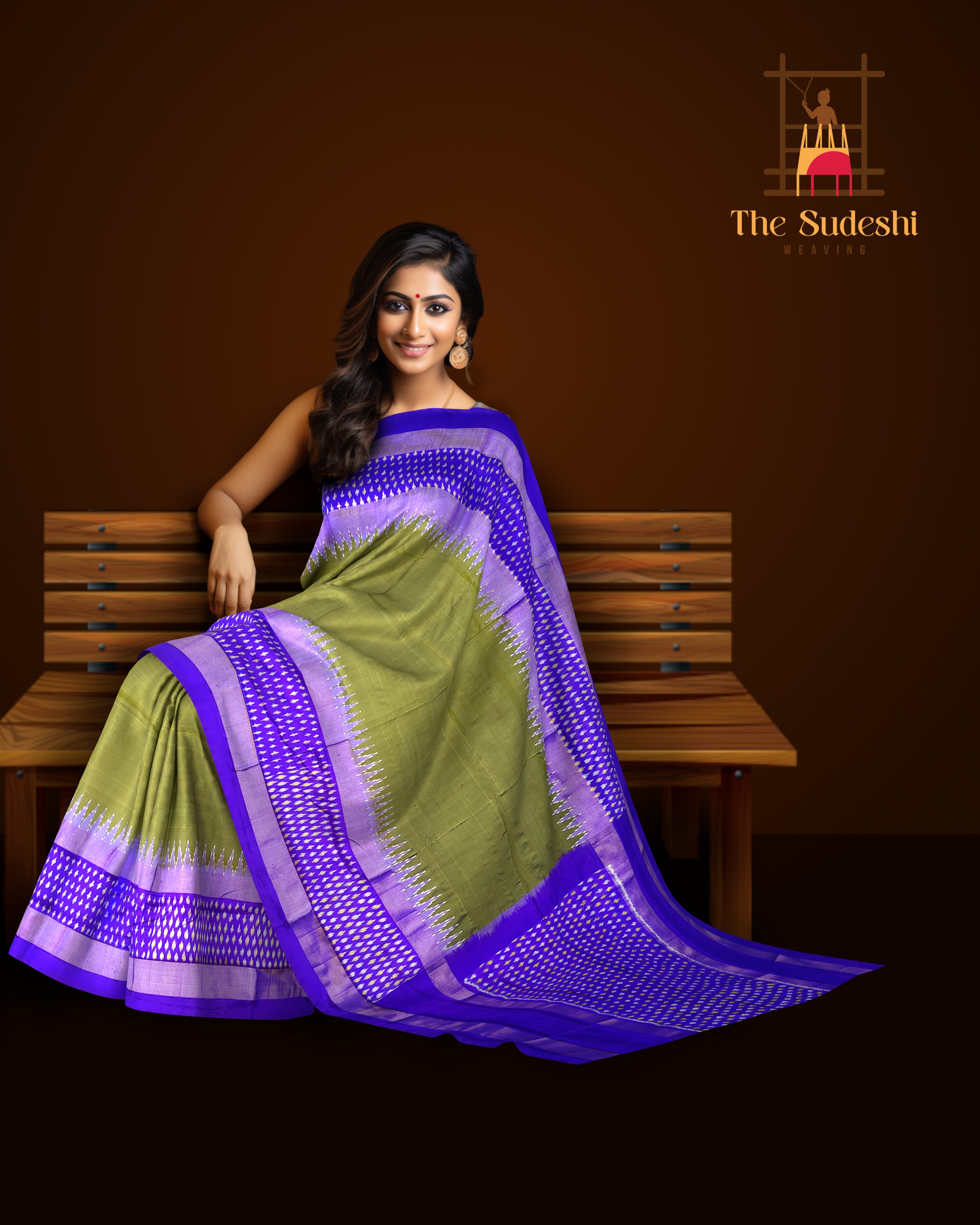 This gorgeous Green Violet Pochampally Single Ikat Handloom Saree is a vibrant and stunning piece that showcases the beauty of traditional Indian craftsmanship. The saree features intricate gold zari work on a green and violet background, creating a striking contrast that exudes elegance and sophistication.