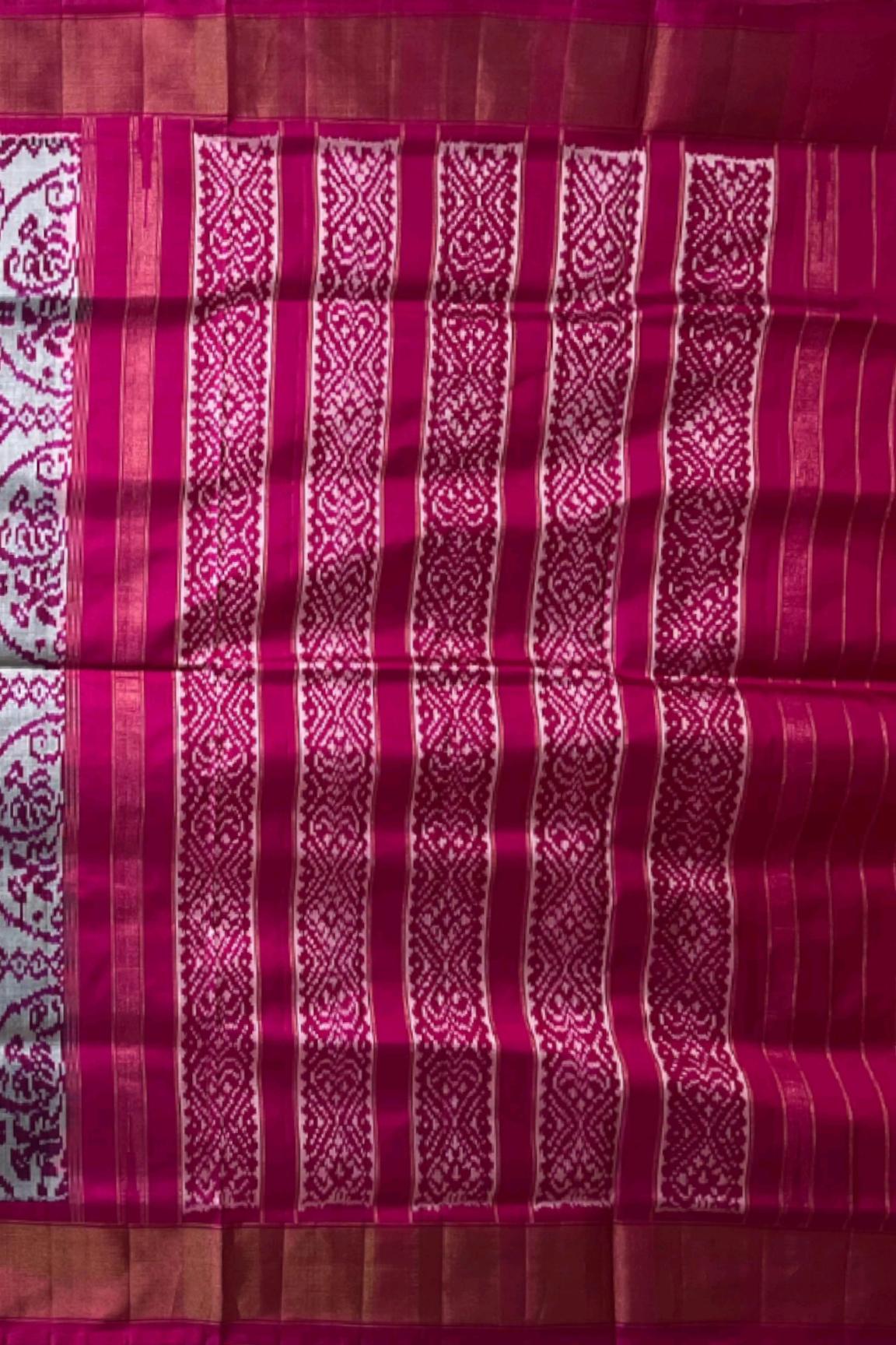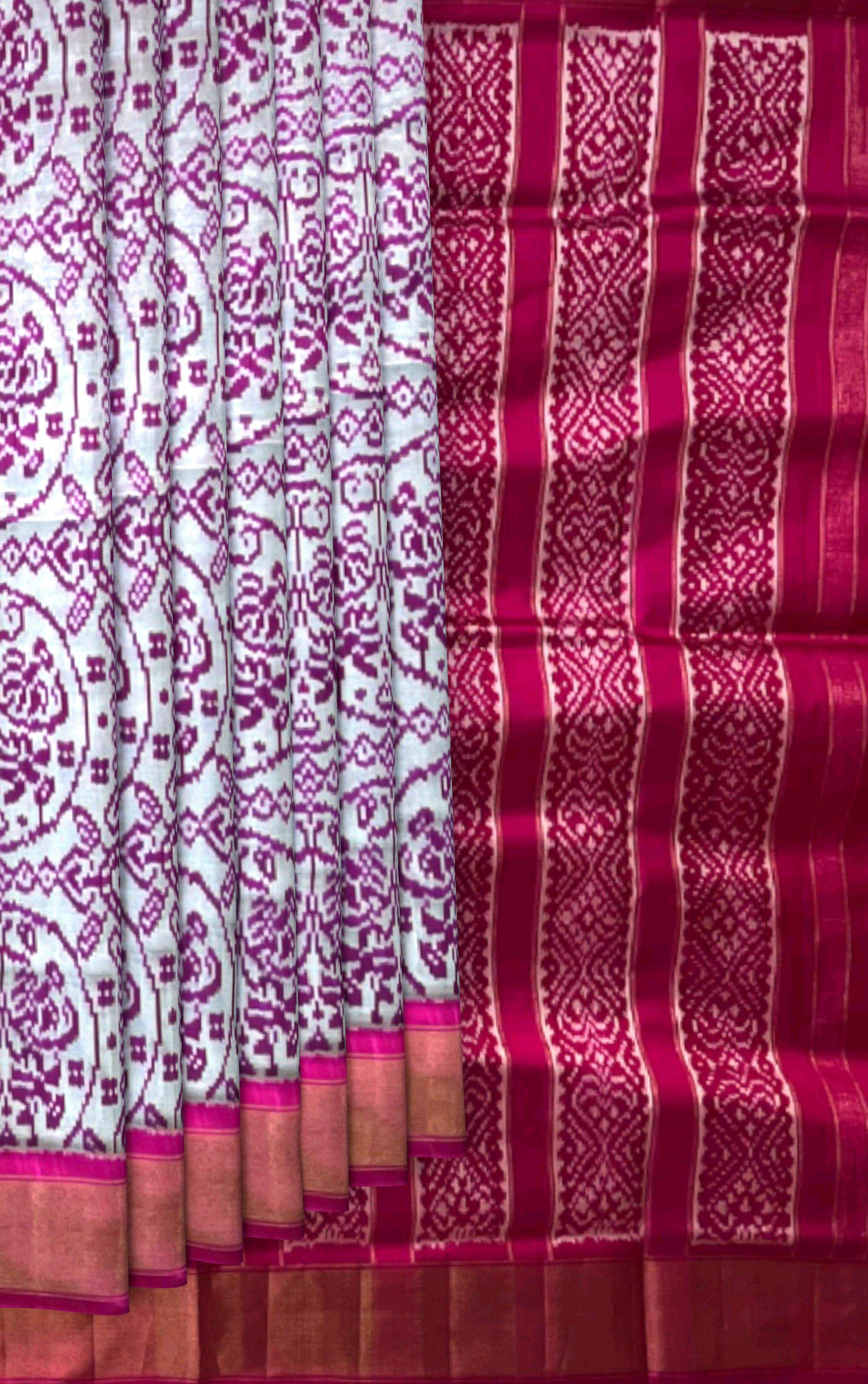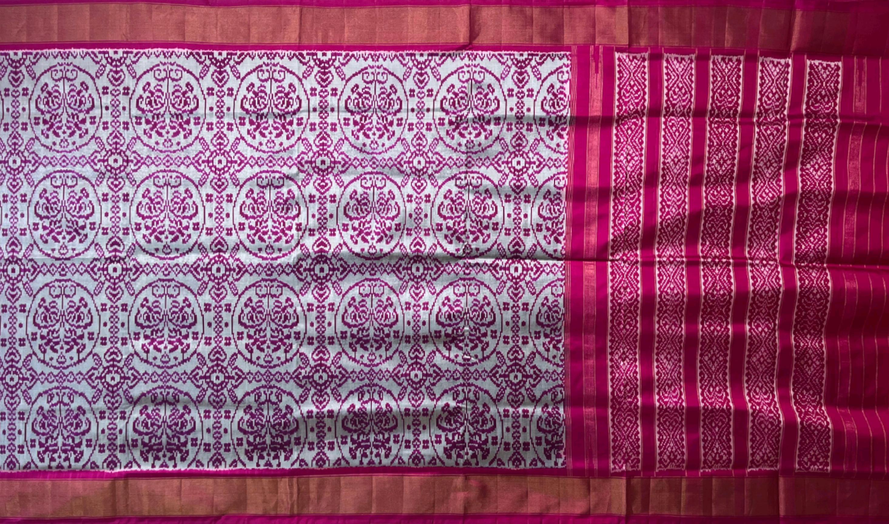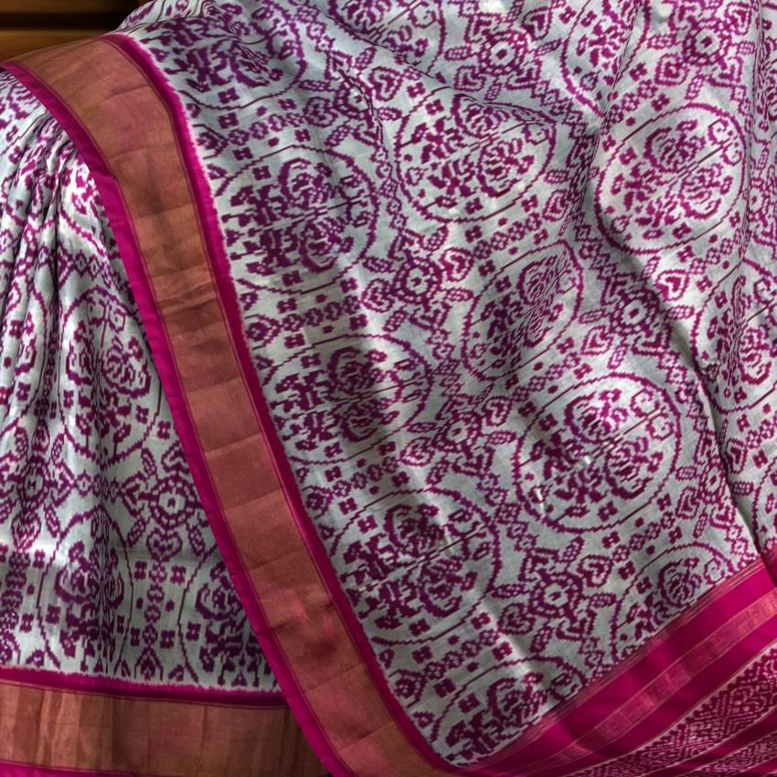 Elegant and understated, the Grey Pochampally Ikat Saree with a delightful pink border and pallu offers a perfect blend of subtlety and charm. The calm grey body exudes sophistication, while the vibrant pink accents add a pop of color, making this saree both refined and eye-catching. From the skilled artisans of Pochampally, Telangana, this saree is a beautiful representation of the double ikat technique, known for its precise and symmetrical motifs. Grey symbolizes neutrality and balance, while pink introduces a touch of warmth and femininity — a harmonious combination for versatile styling. Ideal for office functions, casual gatherings, or cultural events, this saree pairs well with a pink or silver blouse. Enhance your look with silver jewelry, pearls, or minimalistic accessories for an effortlessly graceful appearance. Note: The appearance of the product’s colors may vary due to lighting conditions or your device’s screen calibration. For further assistance or additional images/videos, feel free to contact us at +91 97897 60367 / +1 (945) 308-5962 or email at wecare@thesudeshiweaving.com.