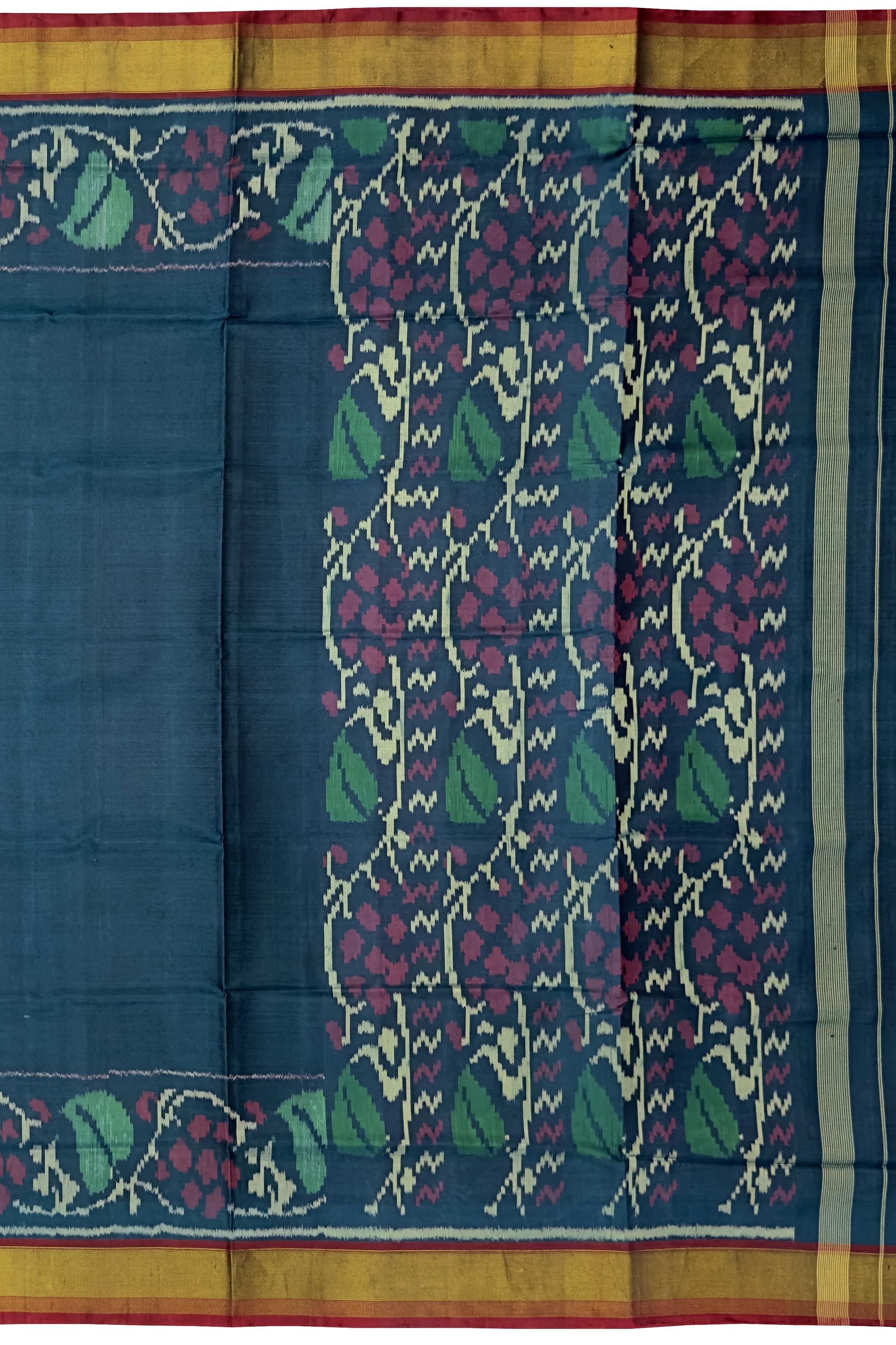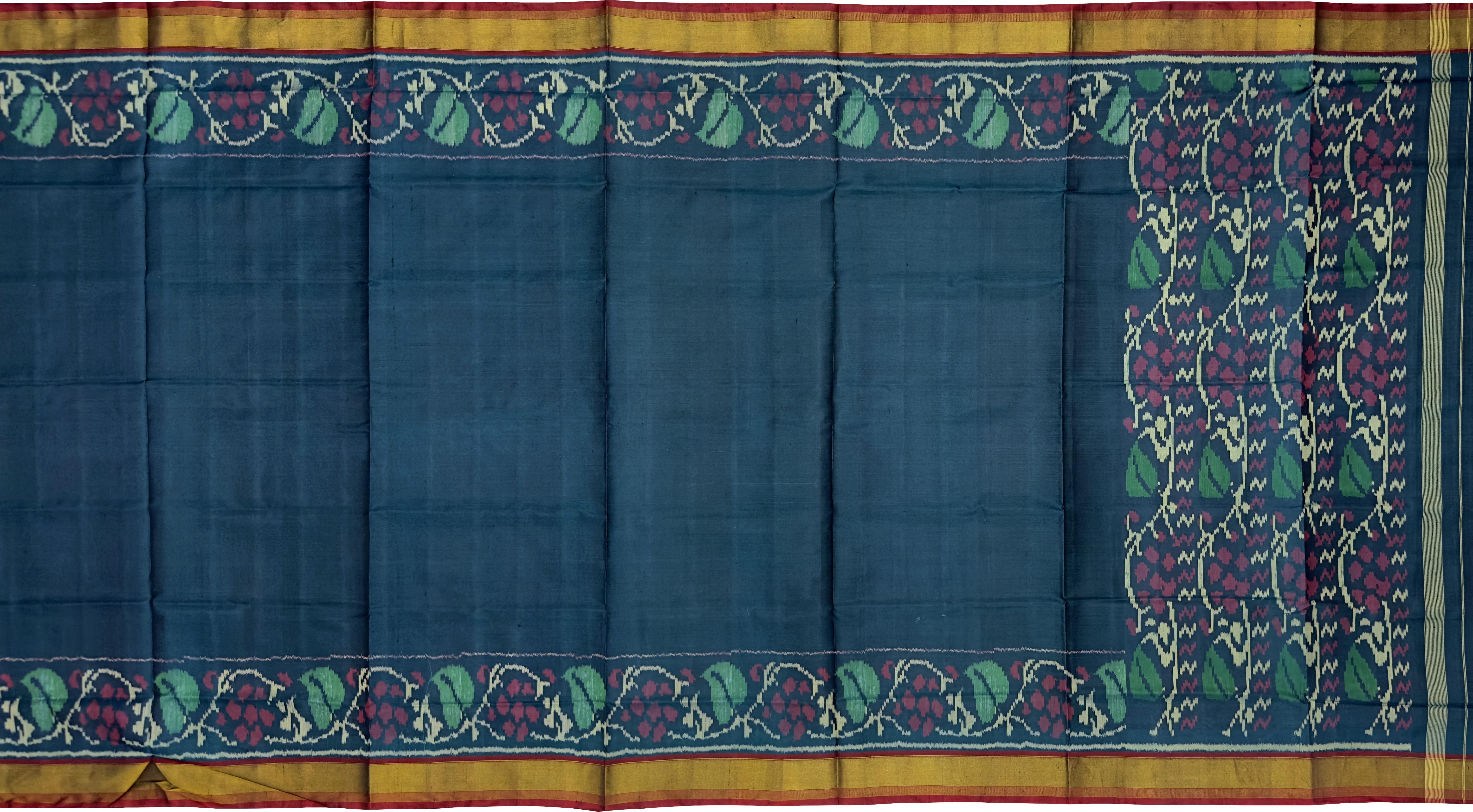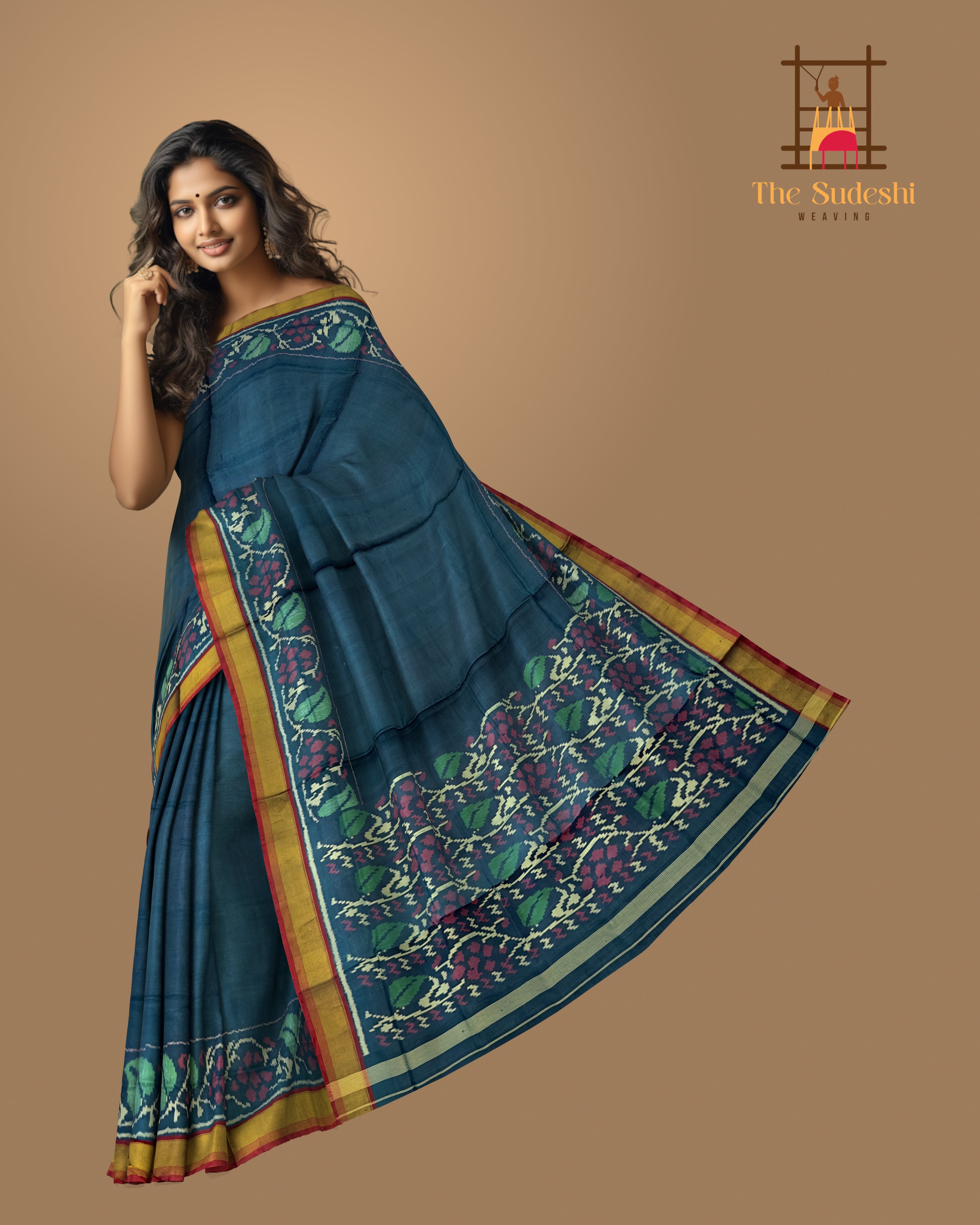 The Patola technique used in this saree is a traditional method of weaving, originating from the state of Gujarat. The technique involves weaving silk threads to create intricate designs and patterns.