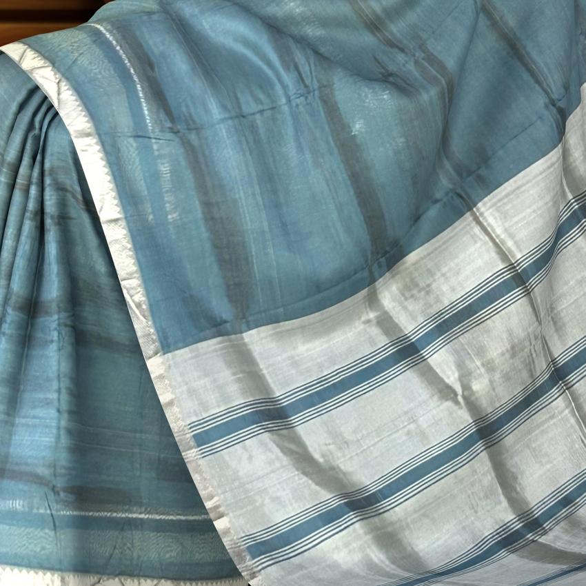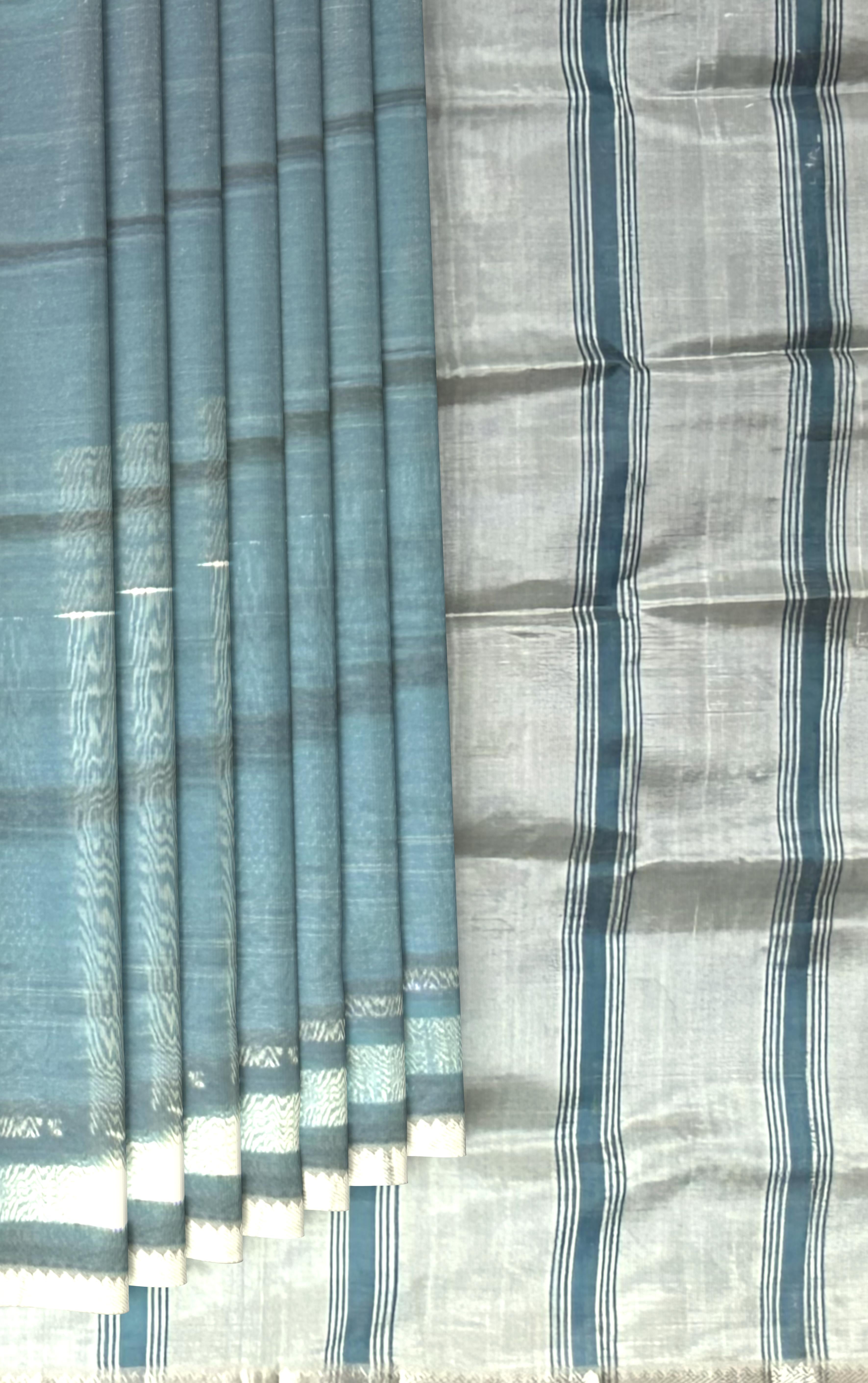 Radiate elegance with this stunning Dgrey Silver Mangalagiri saree, featuring a plain design. The single-side design adds a touch of sophistication, while the silver hue creates a sleek, modern look.