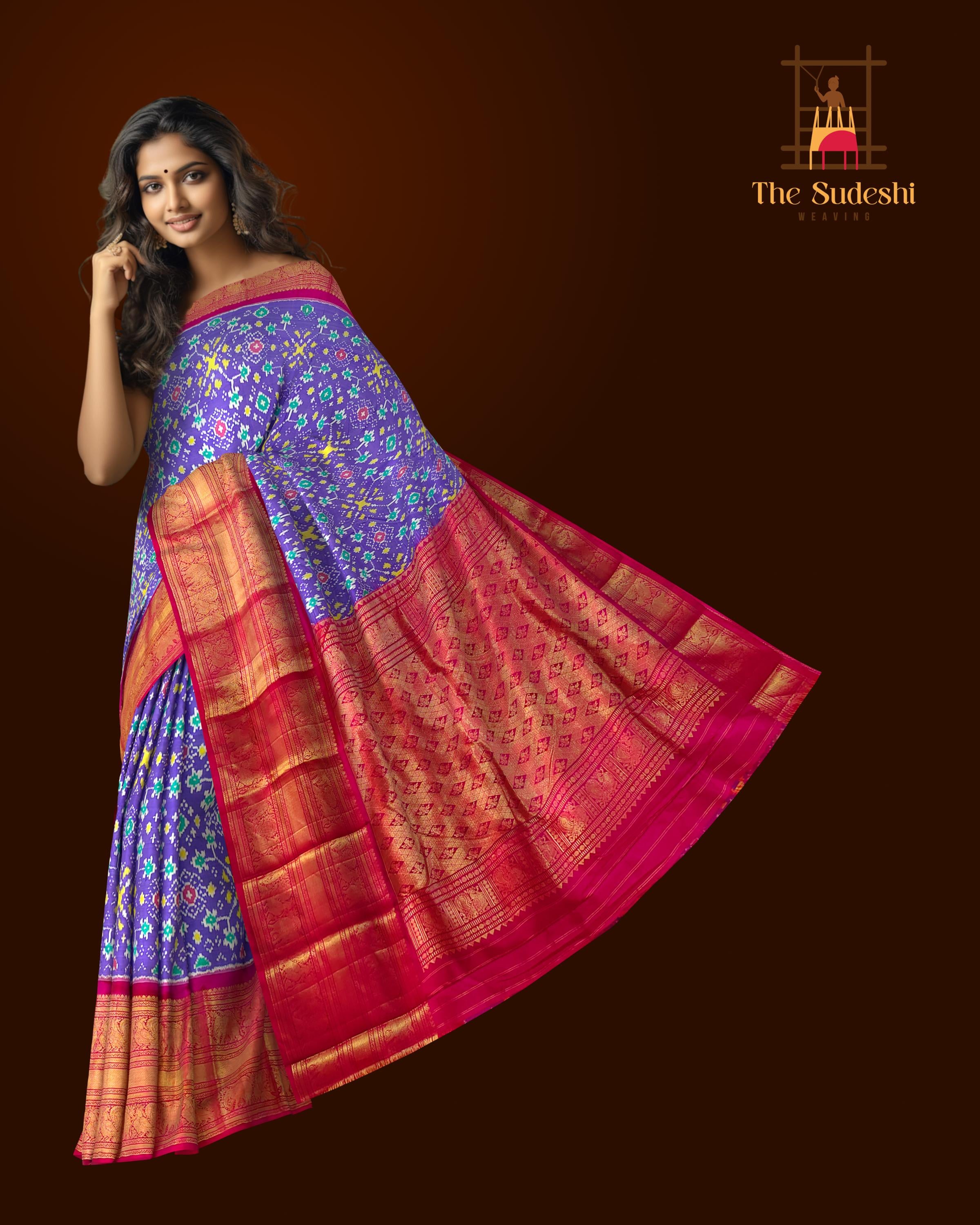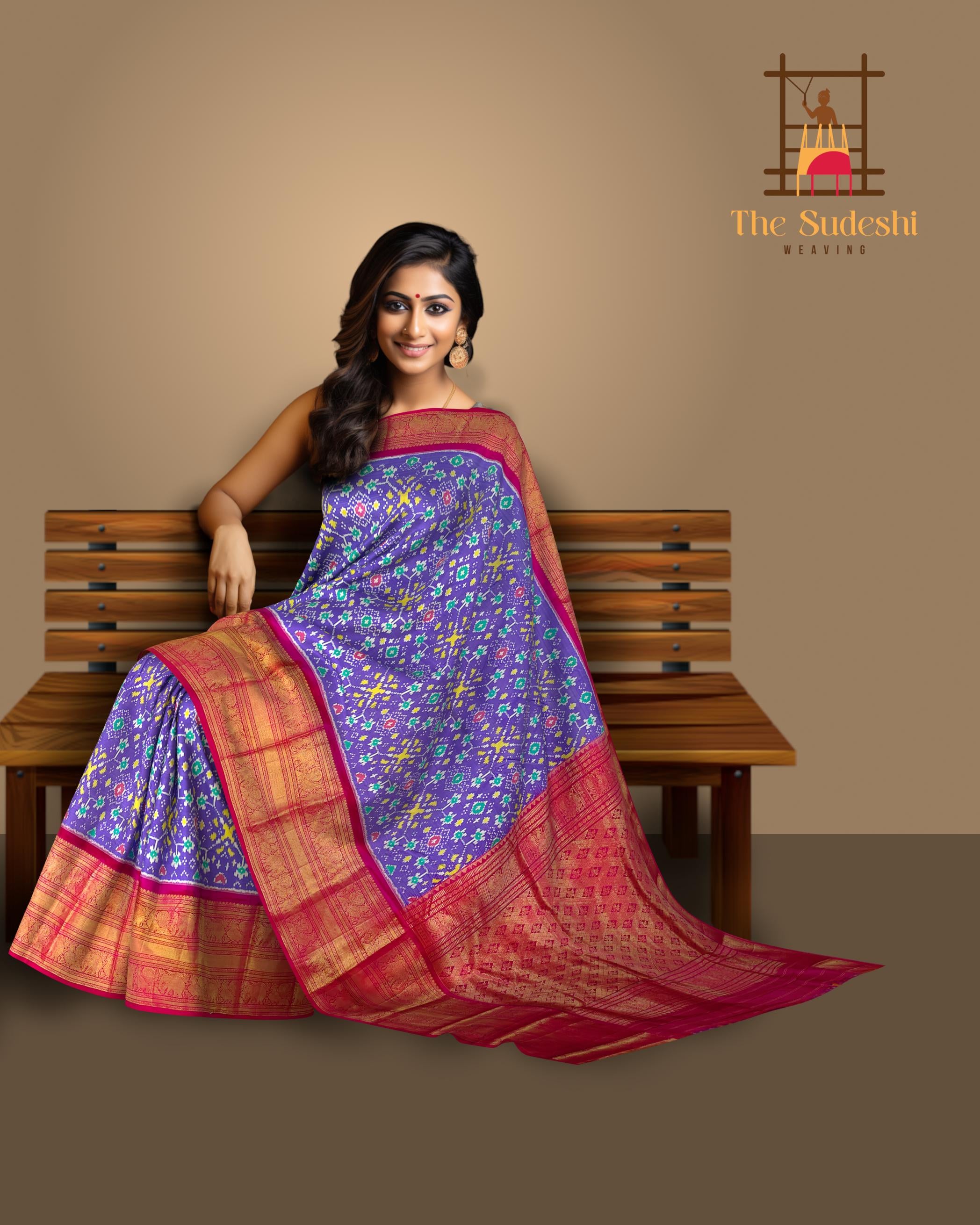 The Pochampally weaving technique, originating from the town of Bhoodan Pochampally in Telangana, India, is celebrated for its intricate patterns and vibrant colors. This ancient art form, dating back to the 18th century, involves a meticulous process of tying and dyeing both warp and weft threads before weaving them together to create stunning double ikat designs. Each saree is a masterpiece, reflecting the cultural richness and skilled craftsmanship of the weavers. The geometric patterns and vibrant hues not only highlight the saree’s intricate craftsmanship but also offer a modern twist to a traditional favorite.