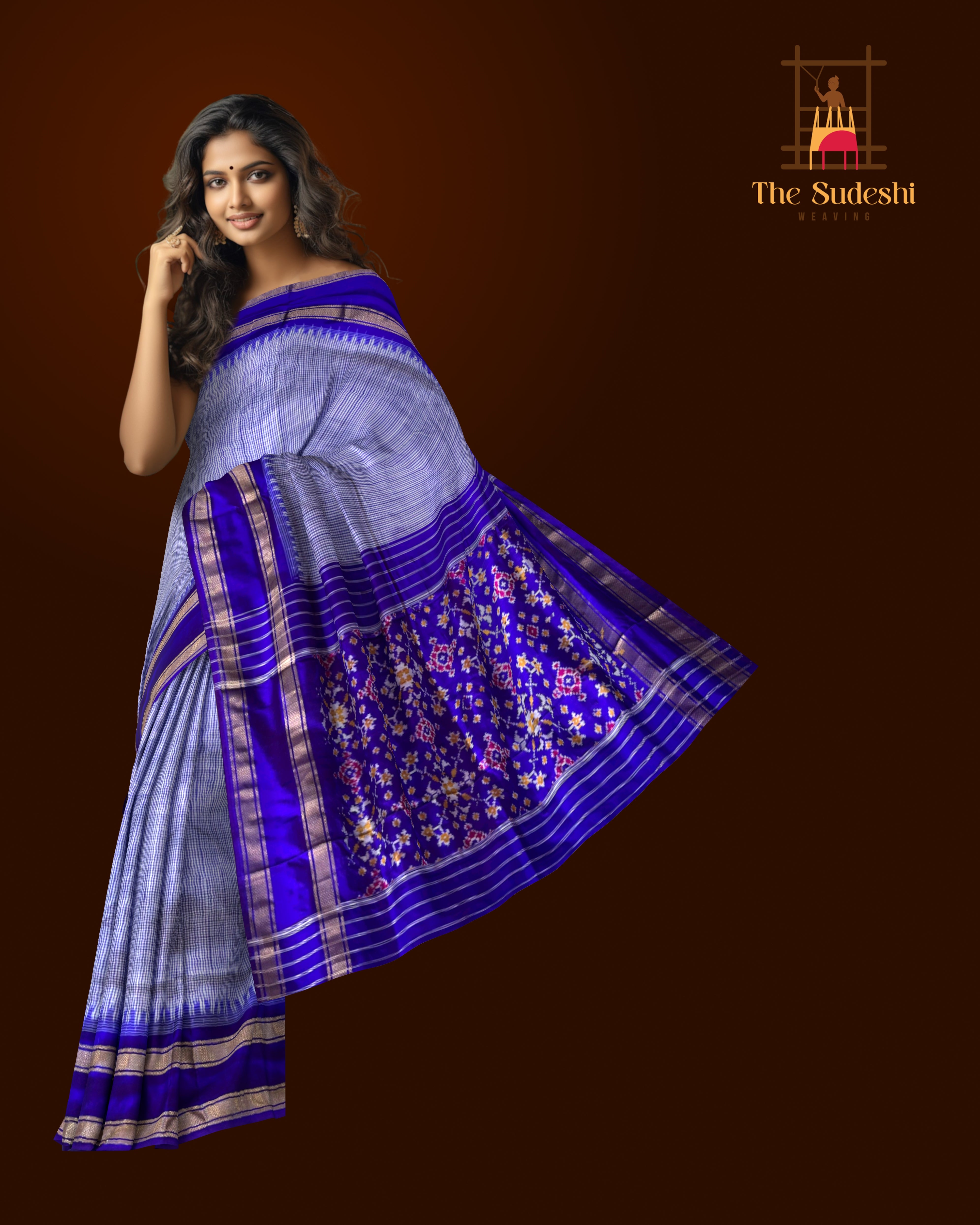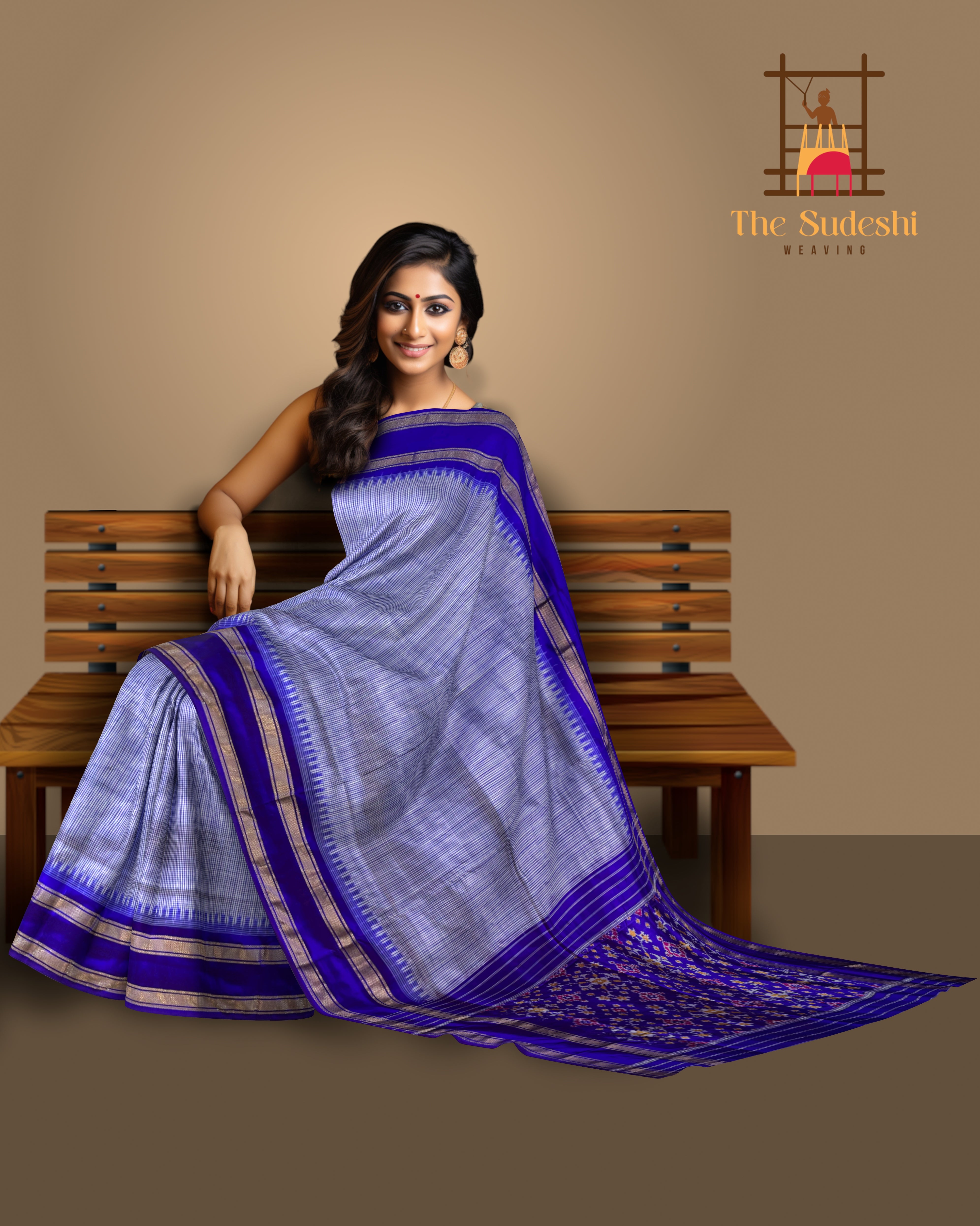 Refreshing and elegant, the Light Blue Pochampally Ikat Saree is designed with a soft blue body complemented by a deeper blue border and pallu. The subtle ikat motifs bring texture and character to this otherwise serene color palette, creating a saree that is both graceful and versatile. Crafted in the renowned weaving village of Pochampally, Telangana, this saree is an example of the double ikat technique, where pre-dyed threads are woven to form symmetrical, meaningful designs. The light and deep blue combination symbolizes tranquility, depth, and sophistication. This saree is an excellent choice for office wear, formal functions, or casual festive occasions. It pairs well with a navy or silver blouse, and looks complete with minimalistic silver jewelry or elegant pearl accessories. Note: The appearance of the product’s colors may vary due to lighting conditions or your device’s screen calibration. For further assistance or additional images/videos, feel free to contact us at +91 97897 60367 / +1 (945) 308-5962 or email at wecare@thesudeshiweaving.com.