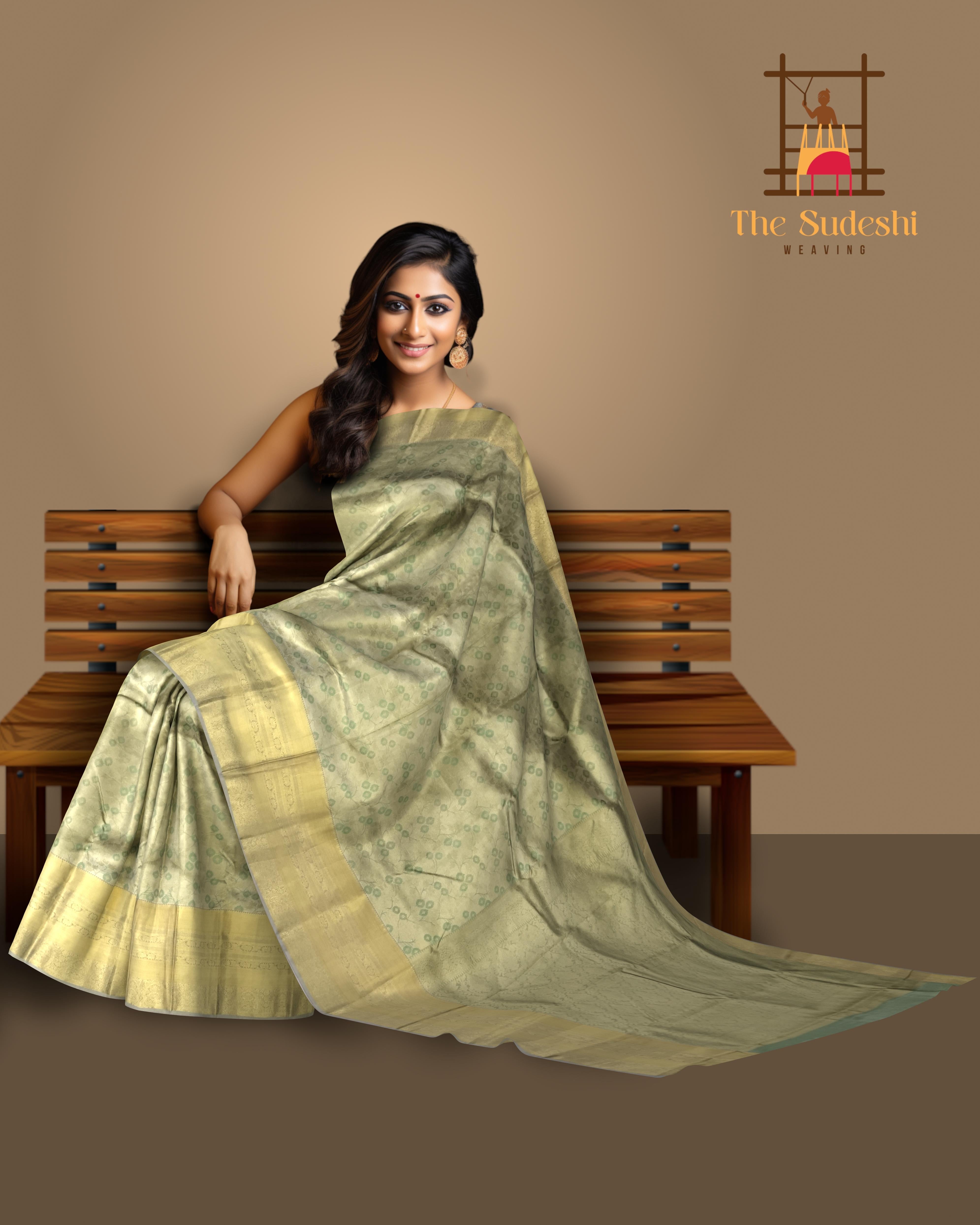 Ethereal and elegant, this Light Green Kanchipuram Silk Saree woven in Jacquard style is a vision of subtle artistry. The self-color weave and zari interplay create a textured beauty that gleams softly under light, reflecting refined taste and timeless sophistication. The intricate jacquard patterns are a tribute to the skill of Kanchi weavers who transform silk into poetry. The heritage of Kanchipuram Pure Silk Sarees lies in their divine origin and intricate craftsmanship. Each saree is meticulously woven using pure mulberry silk, infused with zari that captures the splendor of South Indian temple architecture. The patterns, often inspired by peacocks, lotuses, and geometric forms, symbolize auspiciousness and grace. This light green drape is perfect for morning rituals, festive events, or formal gatherings. Style it with a matching blouse and antique jewelry for a serene, traditional charm that speaks volumes of timeless beauty. Note: The appearance of the product’s colors may vary due to lighting conditions or your device’s screen calibration. For further assistance or additional images/videos, feel free to contact us at +91 97897 60367 or email at wecare@thesudeshiweaving.com.