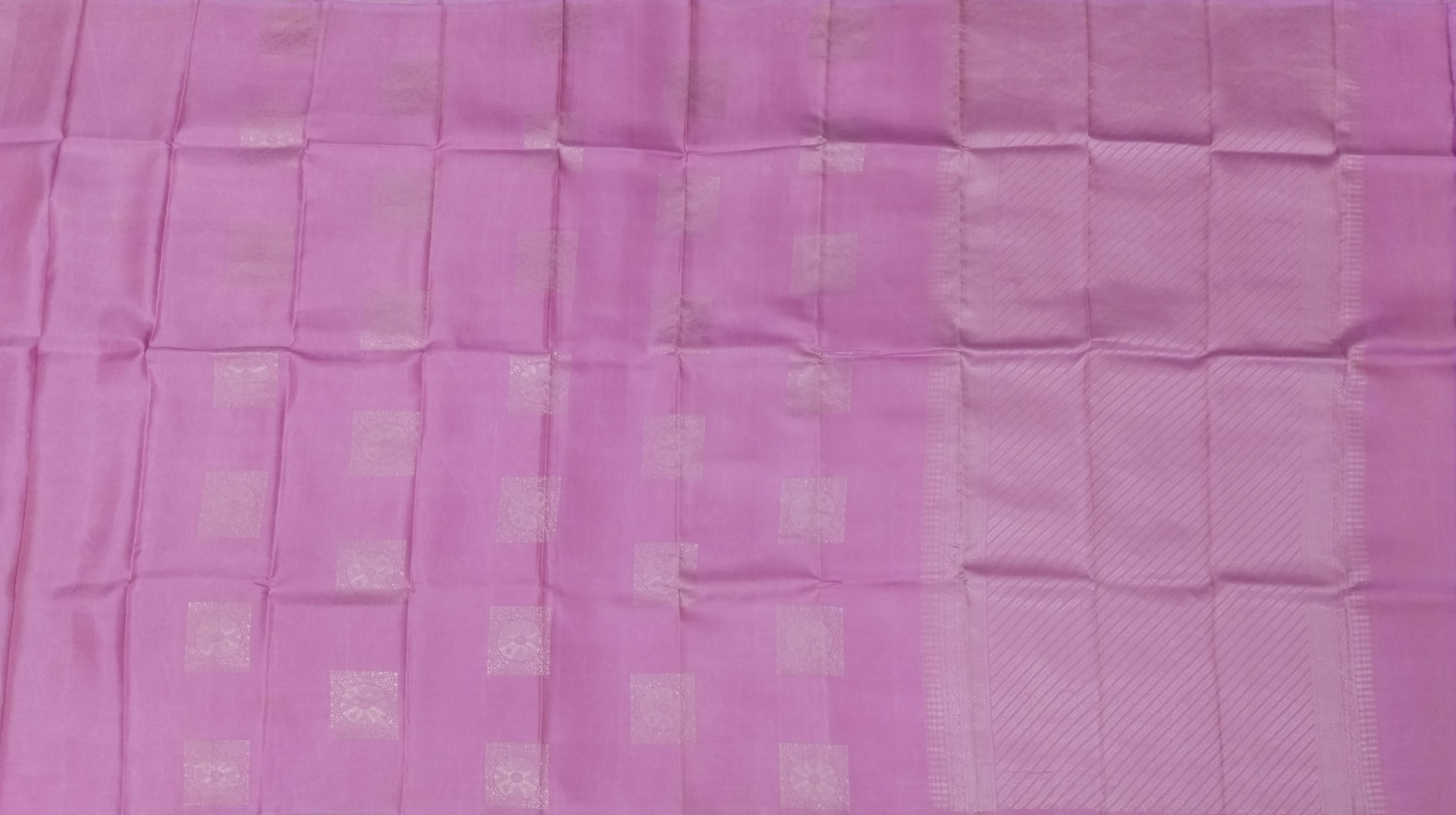 Soft, feminine, and utterly enchanting — this Light Pink Kanchipuram Silk Saree with Square Butta motifs is the embodiment of grace. The self-colored weave with subtle zari accents creates a delicate shimmer, offering understated luxury and refined sophistication. The square buttas lend a geometric charm that’s both modern and traditional. Kanchipuram Pure Silk Sarees are woven with devotion and precision, blending artistry with heritage. Using fine mulberry silk and genuine zari, artisans craft sarees inspired by temple sculptures, mythological tales, and natural beauty. Each piece carries the essence of South India’s textile excellence and timeless cultural symbolism. Perfect for engagements, traditional events, or elegant soirées, this saree pairs beautifully with a matching blouse and diamond or pearl jewelry. Soft makeup and a floral hair accessory complete the ethereal look. Note: The appearance of the product’s colors may vary due to lighting conditions or your device’s screen calibration. For further assistance or additional images/videos, feel free to contact us at +91 97897 60367 or email at wecare@thesudeshiweaving.com.