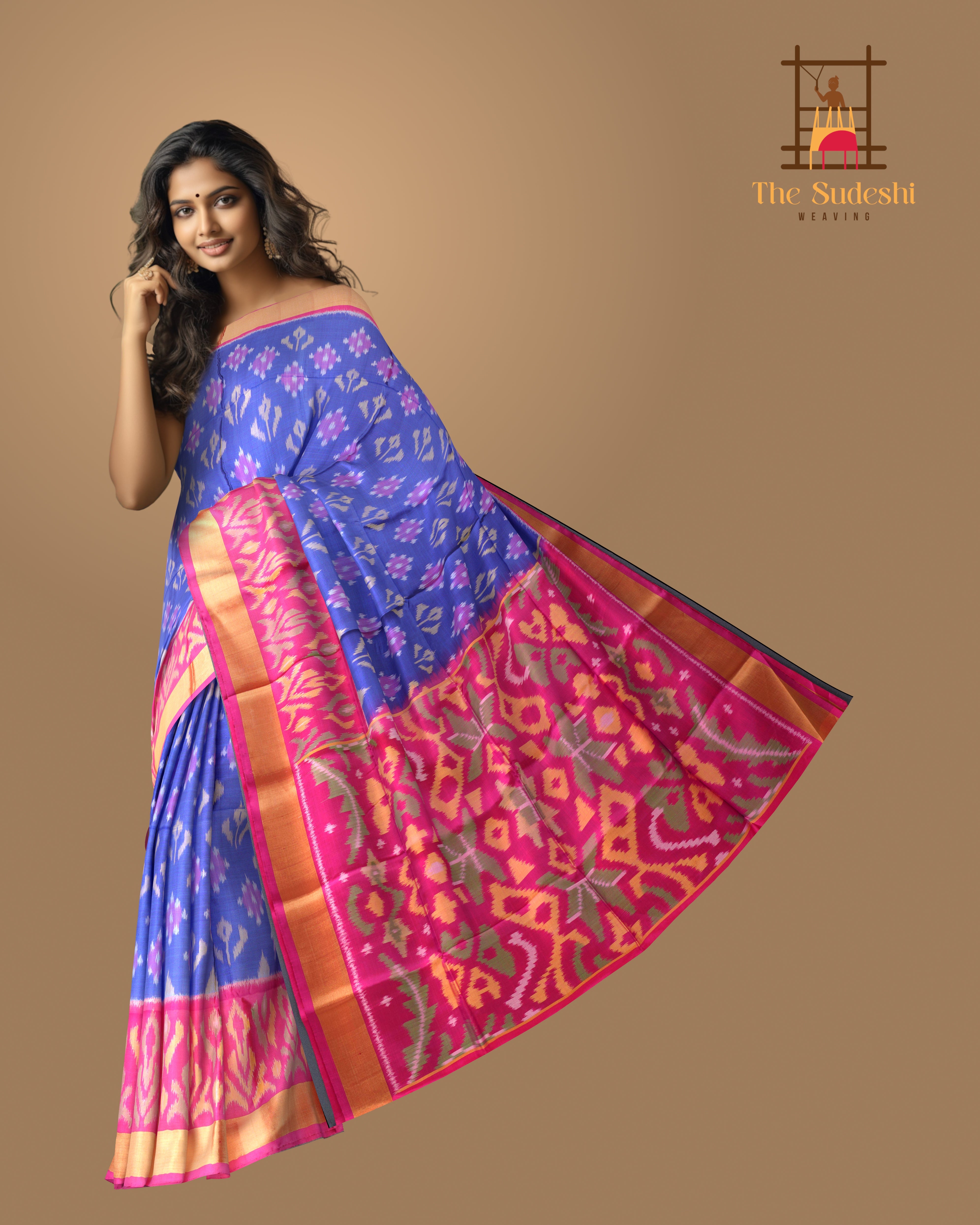 Celebrate the beauty of traditional Indian weaving with our Light Purple SS Saree, featuring a striking pink ikat body design. This saree is a testament to the rich cultural heritage with its intricate ikat patterns and luxurious silk. The ikat design, symbolizing the intricate artistry and meticulous craftsmanship, makes this saree a perfect choice for casual outings and temple visits. The light purple color of the saree is both calming and elegant, while the pink ikat design adds a vibrant contrast. This saree is ideal for casual and temple wear, offering both comfort and style. The harmonious blend of traditional motifs and contemporary design ensures that you look stylish and poised in any setting. Whether you're attending a temple ceremony or a casual family gathering, this saree will make you feel elegant and graceful. Pair it with minimalistic jewelry for a chic look or with more elaborate pieces for a festive appearance. This saree is a versatile addition to your wardrobe, showcasing your love for traditional craftsmanship and modern fashion.