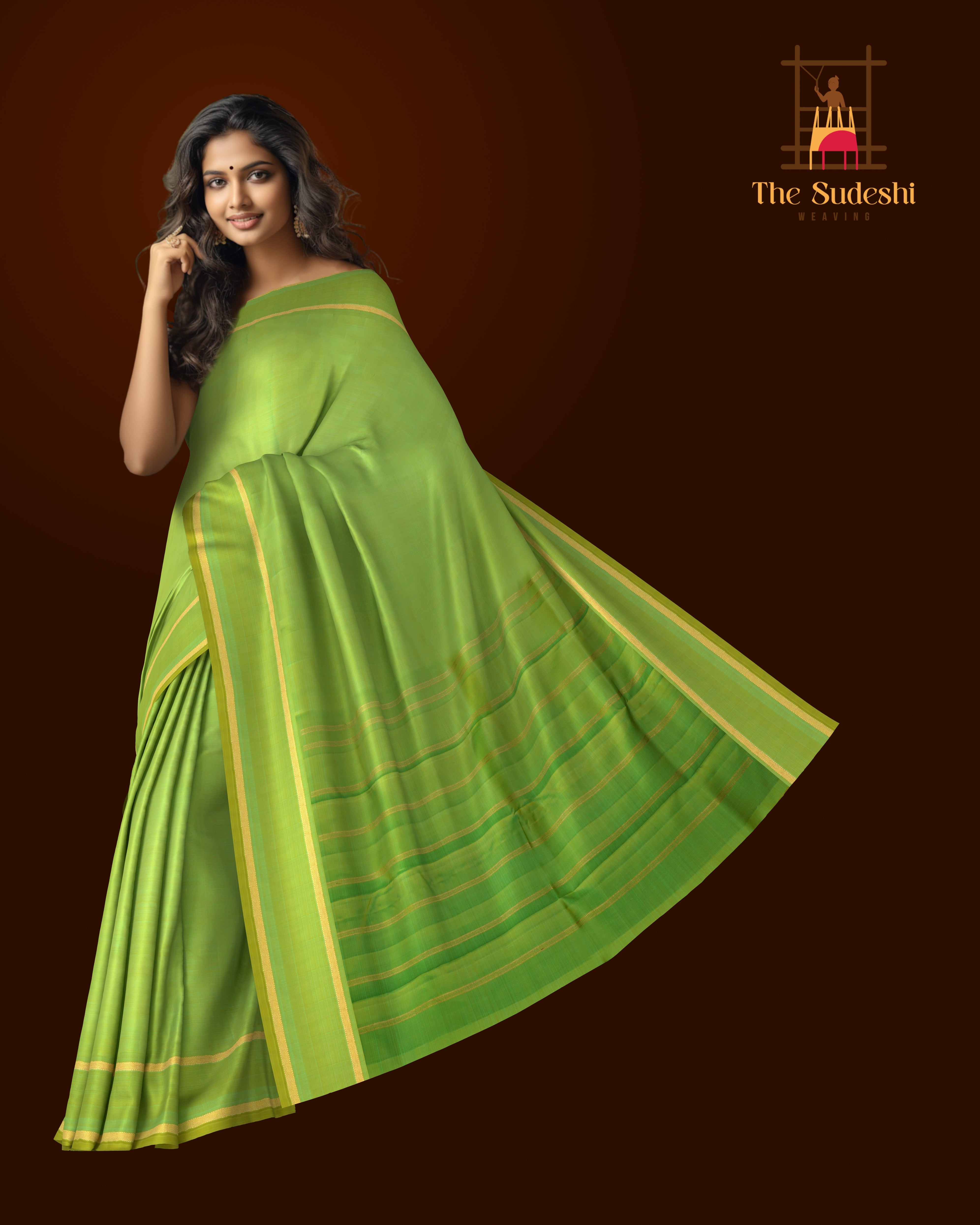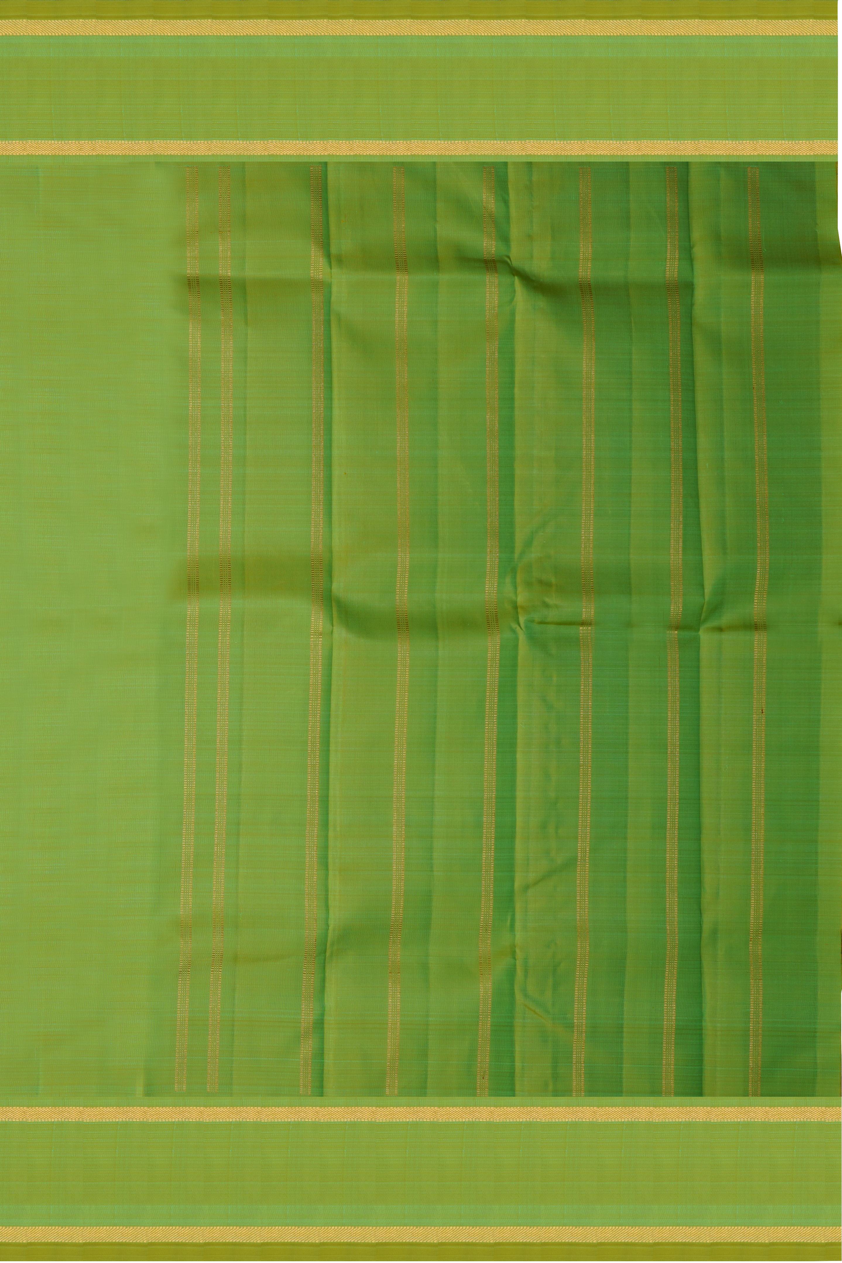 The all-over lime green color creates a cohesive and visually striking effect. Kanchipuram sarees, renowned for their quality and durability, have been cherished by generations for their elegance and timeless appeal. The intricate weaving techniques, passed down through generations, ensure that each saree is a unique work of art.