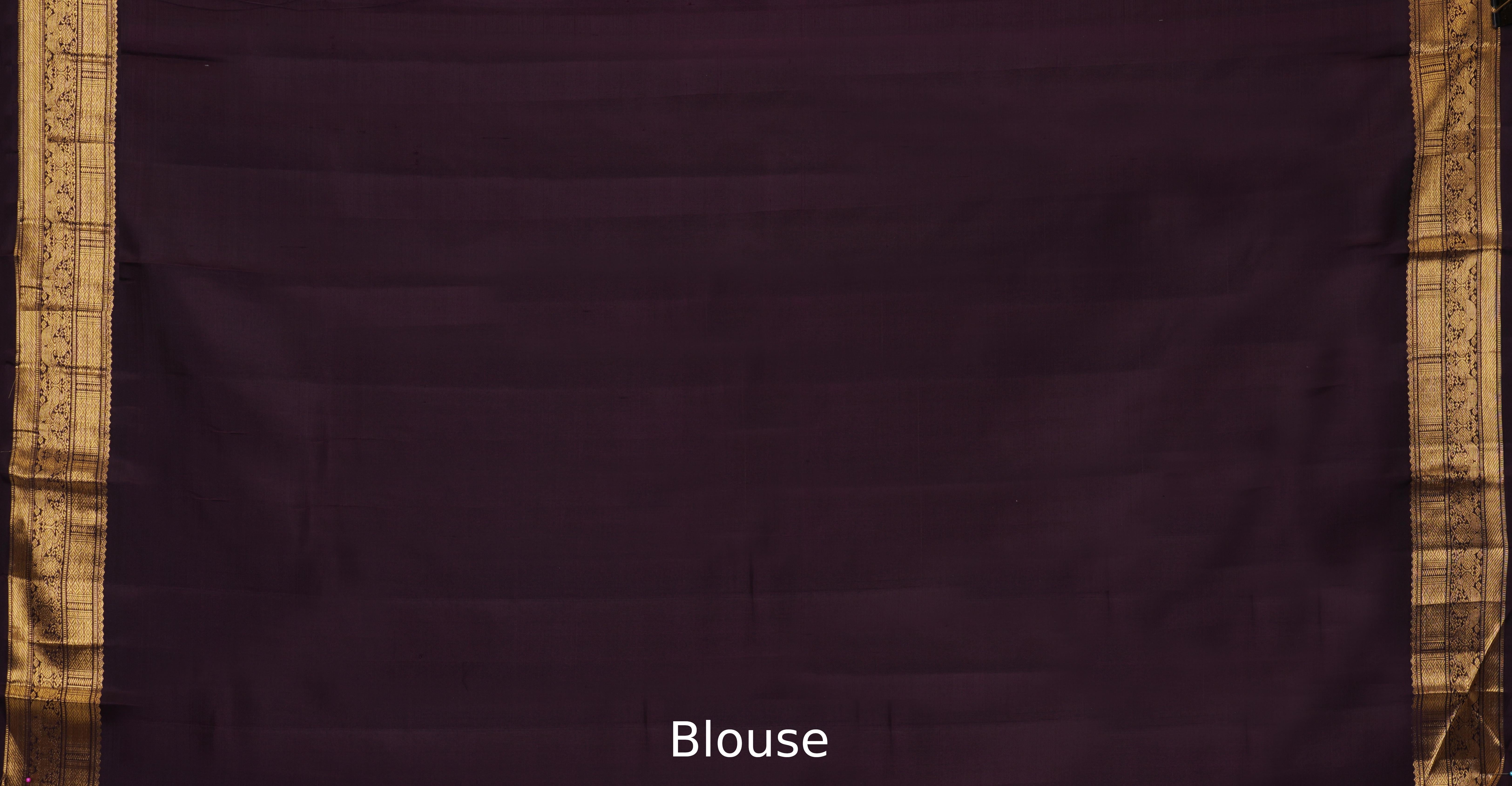 Embrace Bold Elegance with a Magenta Kanchipuram Pure Zari Saree.Discover the captivating allure of this Magenta Kanchipuram Pure Zari Saree. Handwoven with meticulous care, this saree showcases the timeless beauty of traditional Indian craftsmanship. The vibrant magenta hue, adorned with a striking brown border, creates a captivating and visually striking ensemble. The lustrous zari threads, woven into the fabric with precision, add a touch of opulence and shimmer.