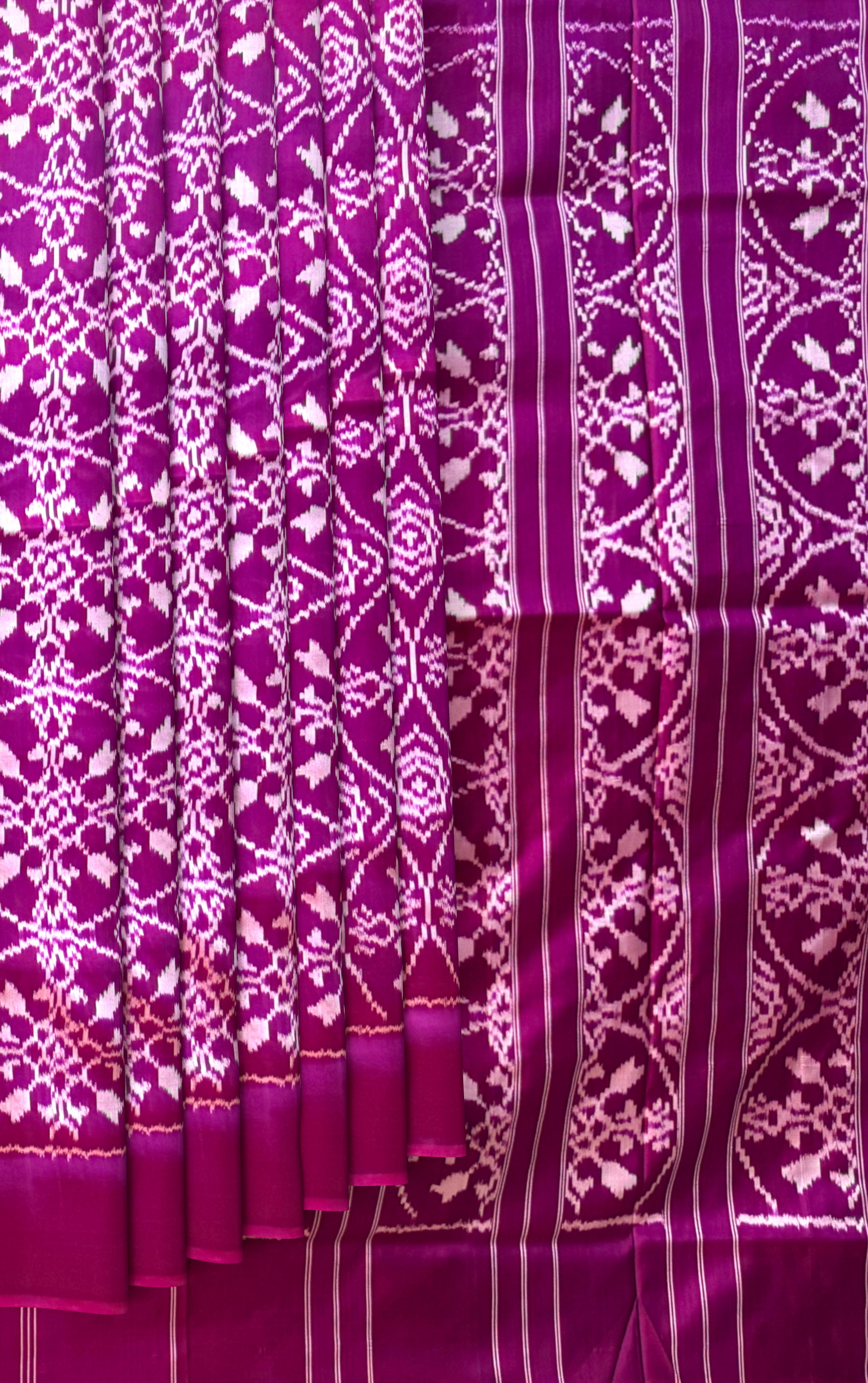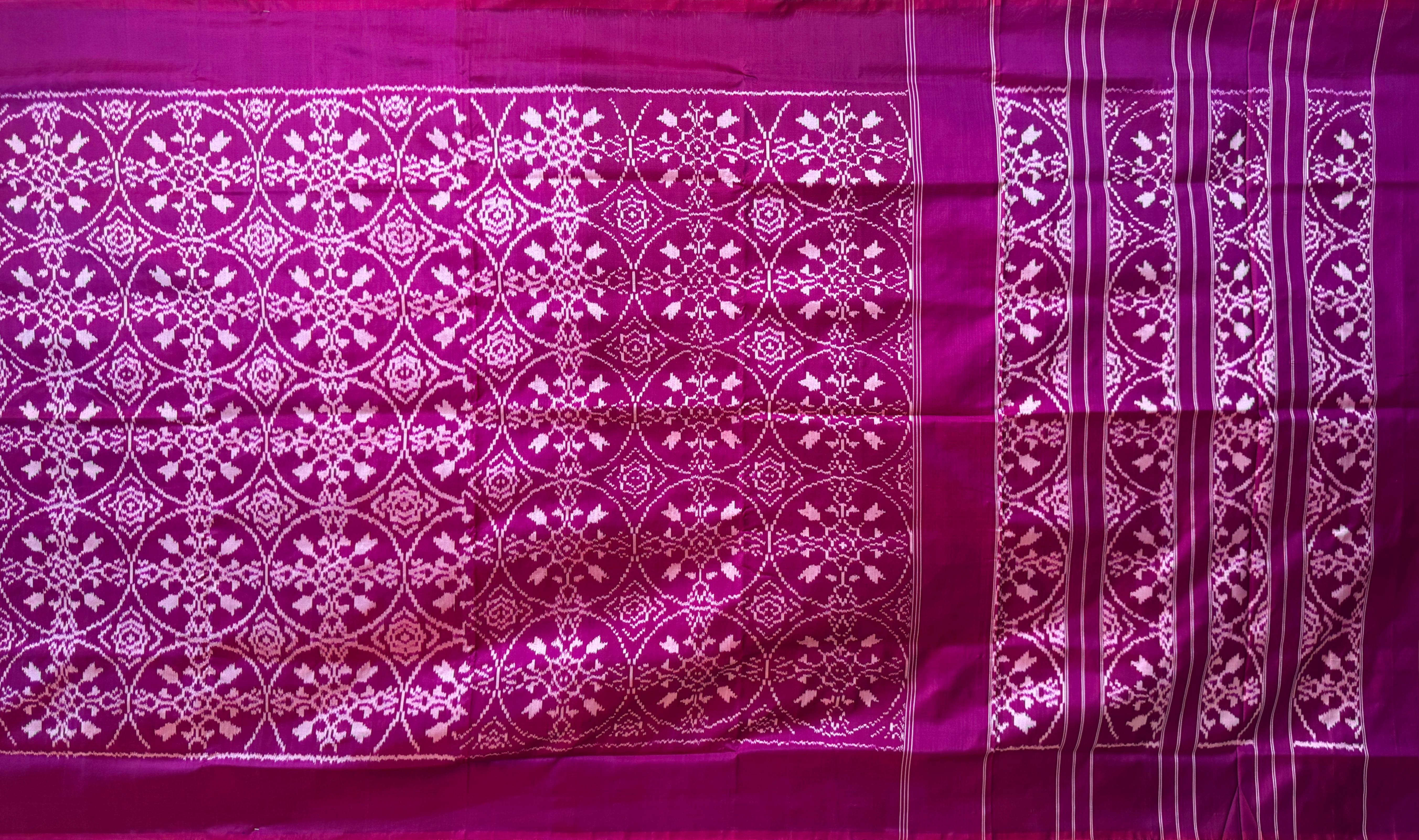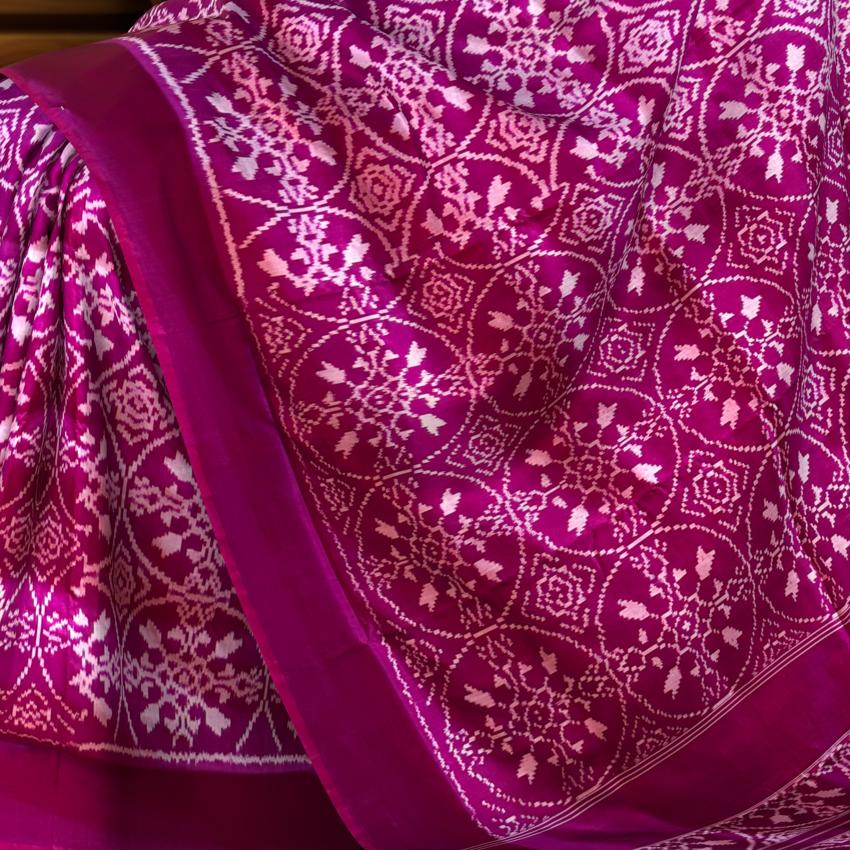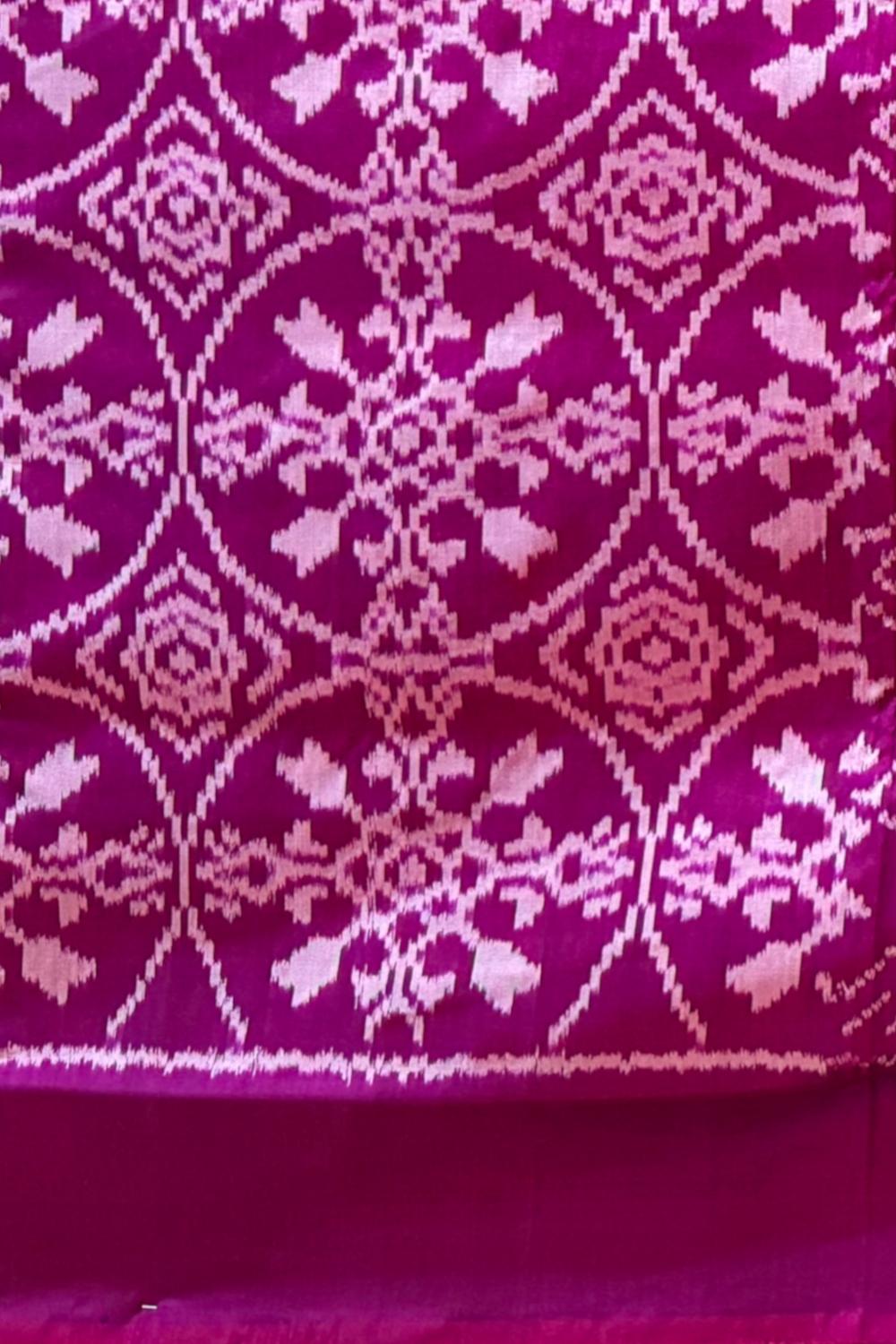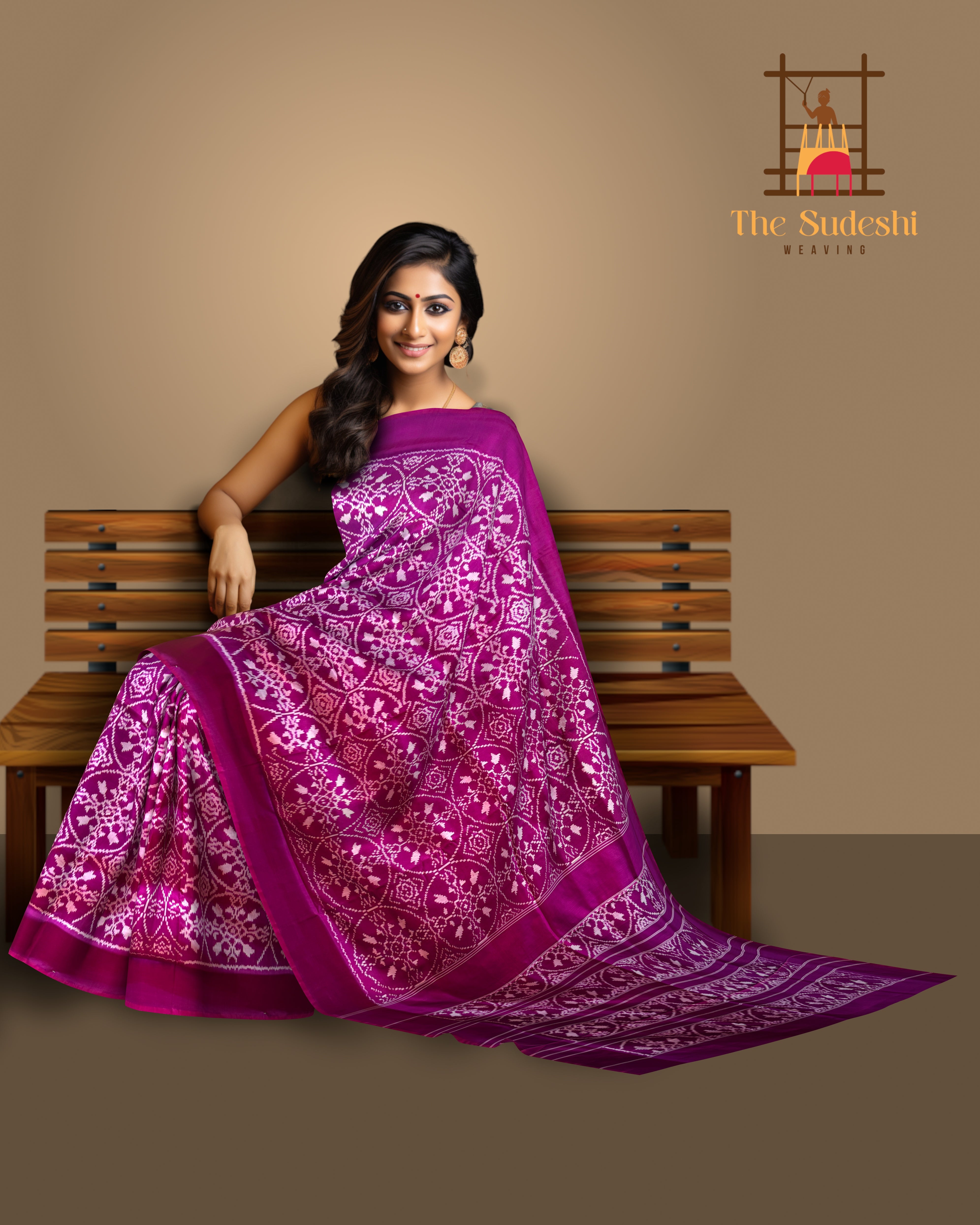 Make a bold and vibrant statement with the Majenta Pink Pochampally Ikat Saree. This eye-catching saree showcases a vivid magenta pink body, border, and pallu — a stunning choice for women who love bright hues and traditional weaves. The vibrant color paired with the intricate ikat patterns makes it both festive and fashionable. Woven in the artisanal village of Pochampally, Telangana, the Ikat weaving technique is known for its precision in dyeing both the warp and weft threads before weaving. The magenta pink hue represents vibrancy, creativity, and confidence, while the designs signify continuity, energy, and cultural richness. Ideal for weddings, receptions, and joyful celebrations, this saree pairs well with a contrast green or gold blouse. Pair it with heavy gold jewelry or statement pieces to create a glamorous festive look. Note: The appearance of the product’s colors may vary due to lighting conditions or your device’s screen calibration. For further assistance or additional images/videos, feel free to contact us at +91 97897 60367 / +1 (945) 308-5962 or email at wecare@thesudeshiweaving.com.