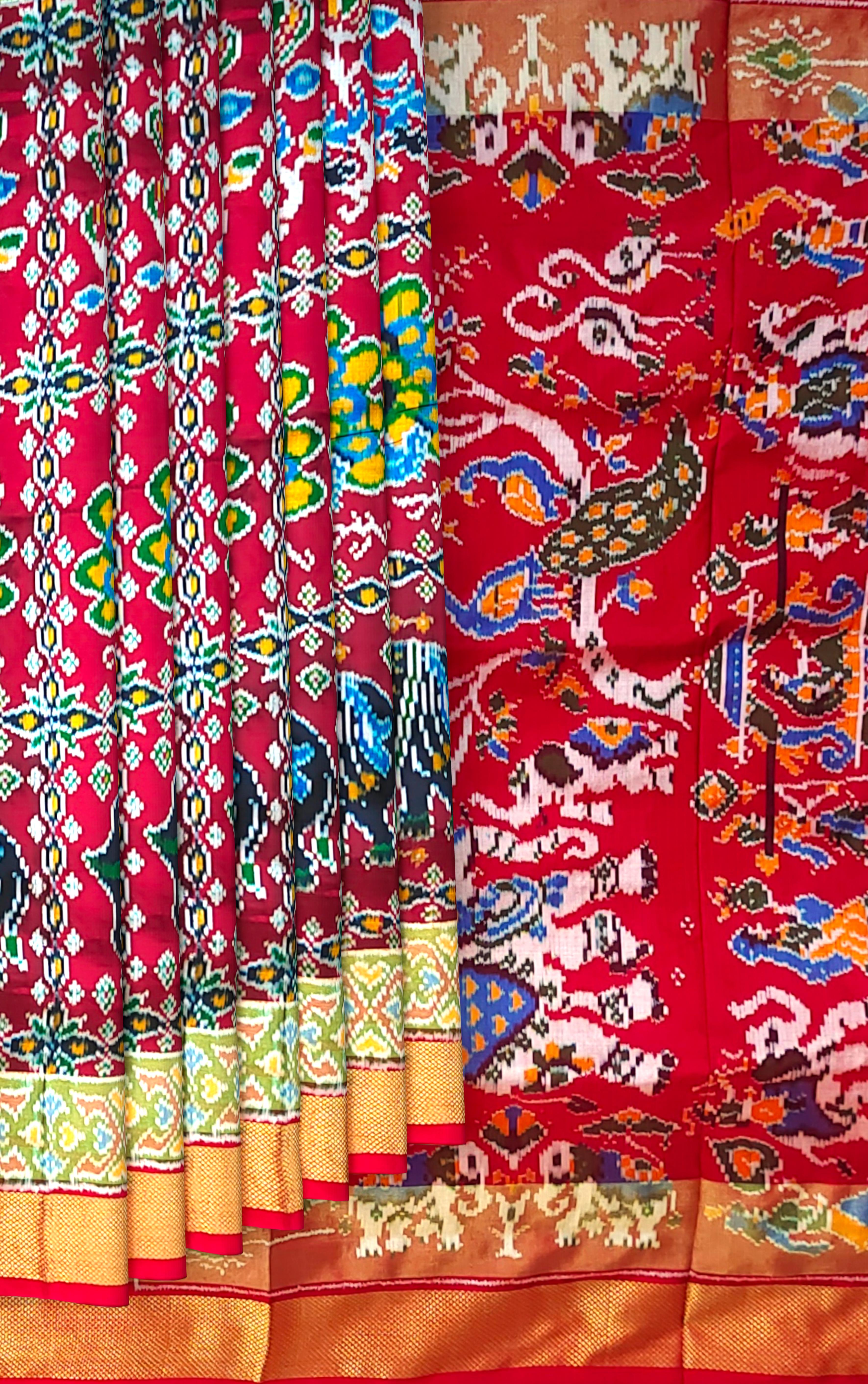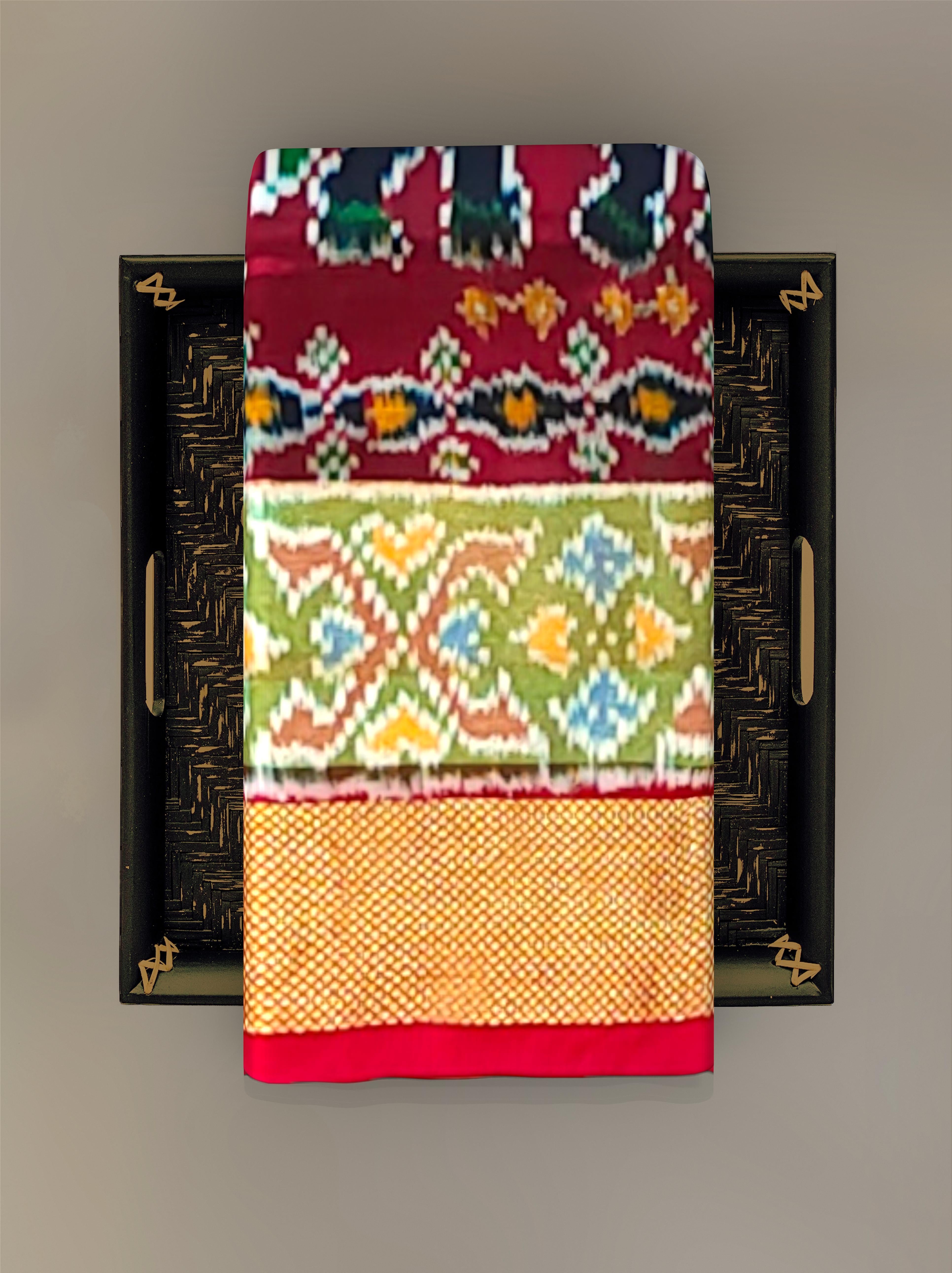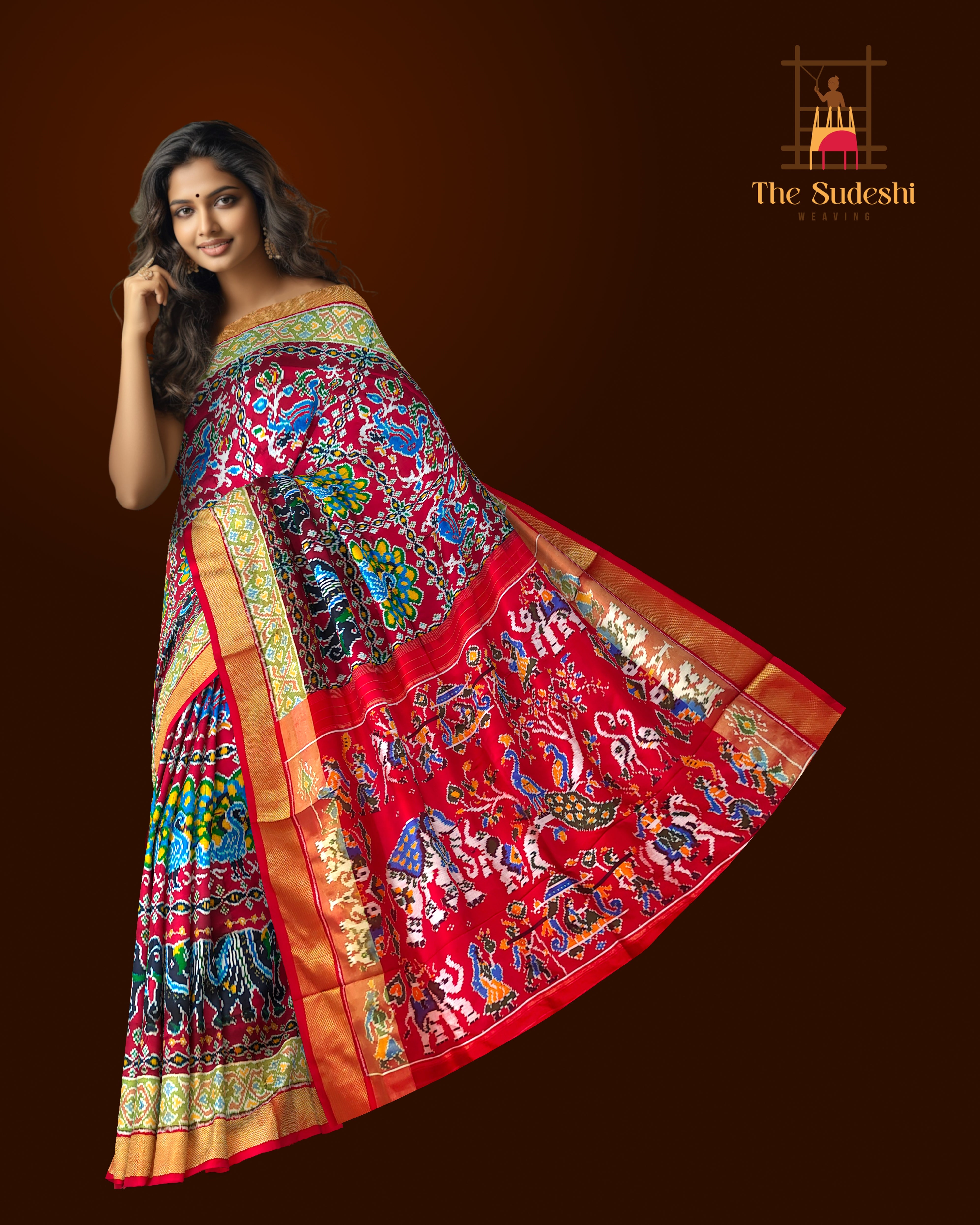 Each saree is a masterpiece, reflecting the cultural richness and skilled craftsmanship of the weavers. The geometric patterns and vibrant hues not only highlight the saree’s intricate craftsmanship but also offer a modern twist to a traditional favorite.