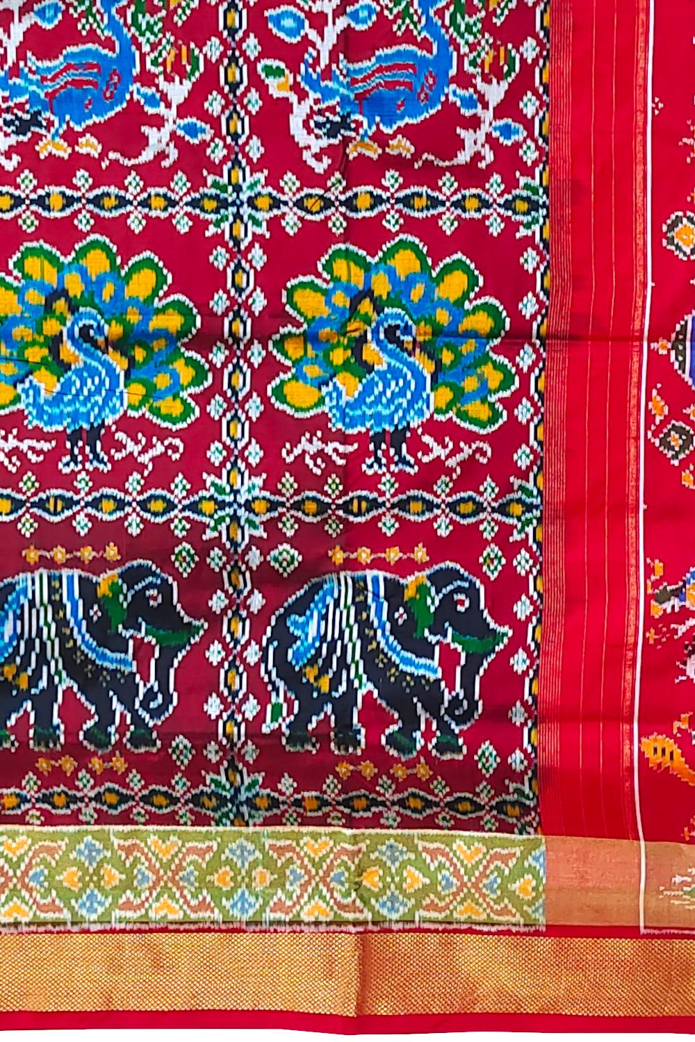 This gorgeous Maroon Maroon Pochampally Single Ikat Handloom Saree is a vibrant and stunning piece that showcases the beauty of traditional Indian craftsmanship. The saree features intricate gold zari work on a maroon background, creating a striking contrast that exudes elegance and sophistication.
