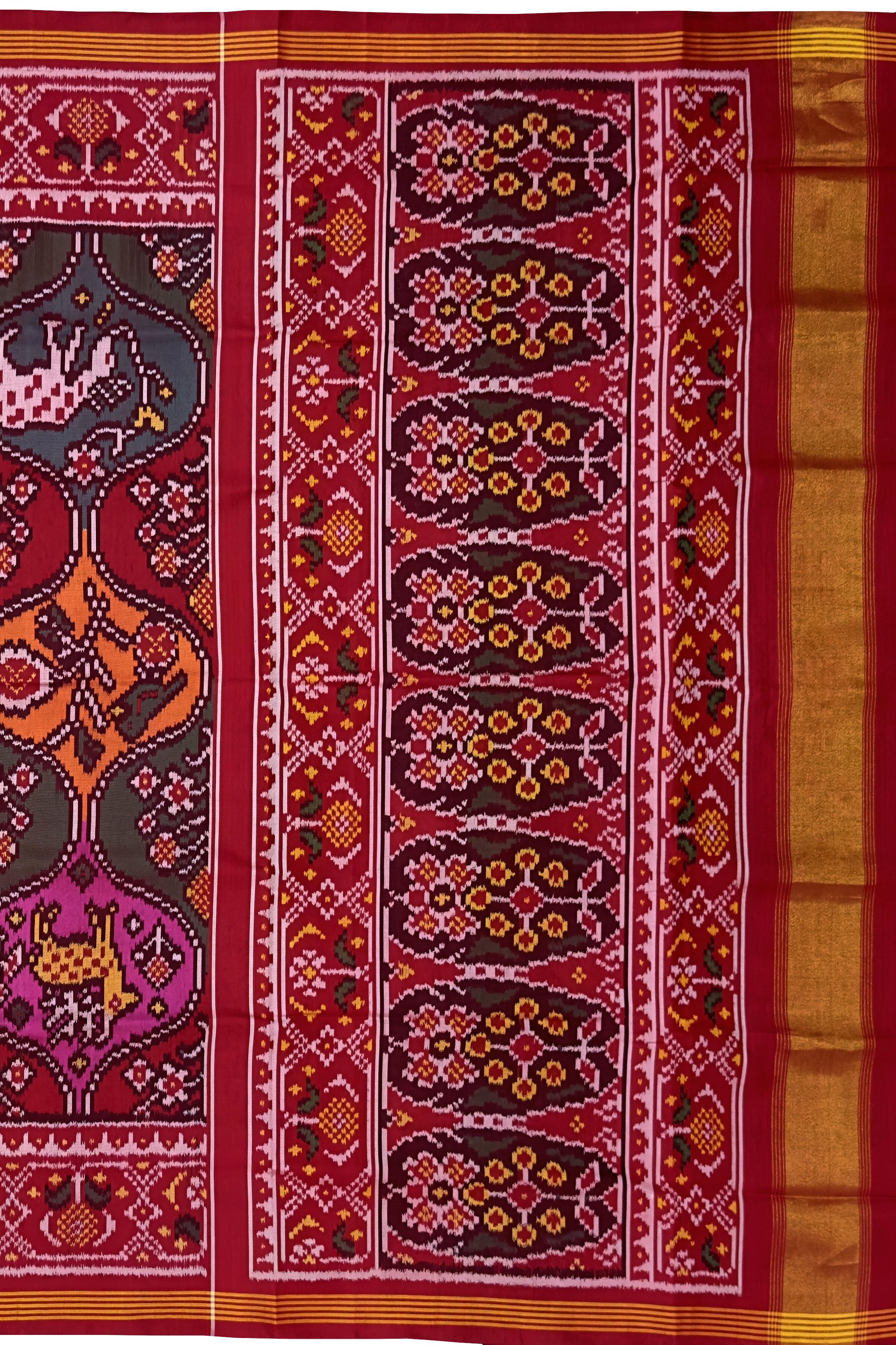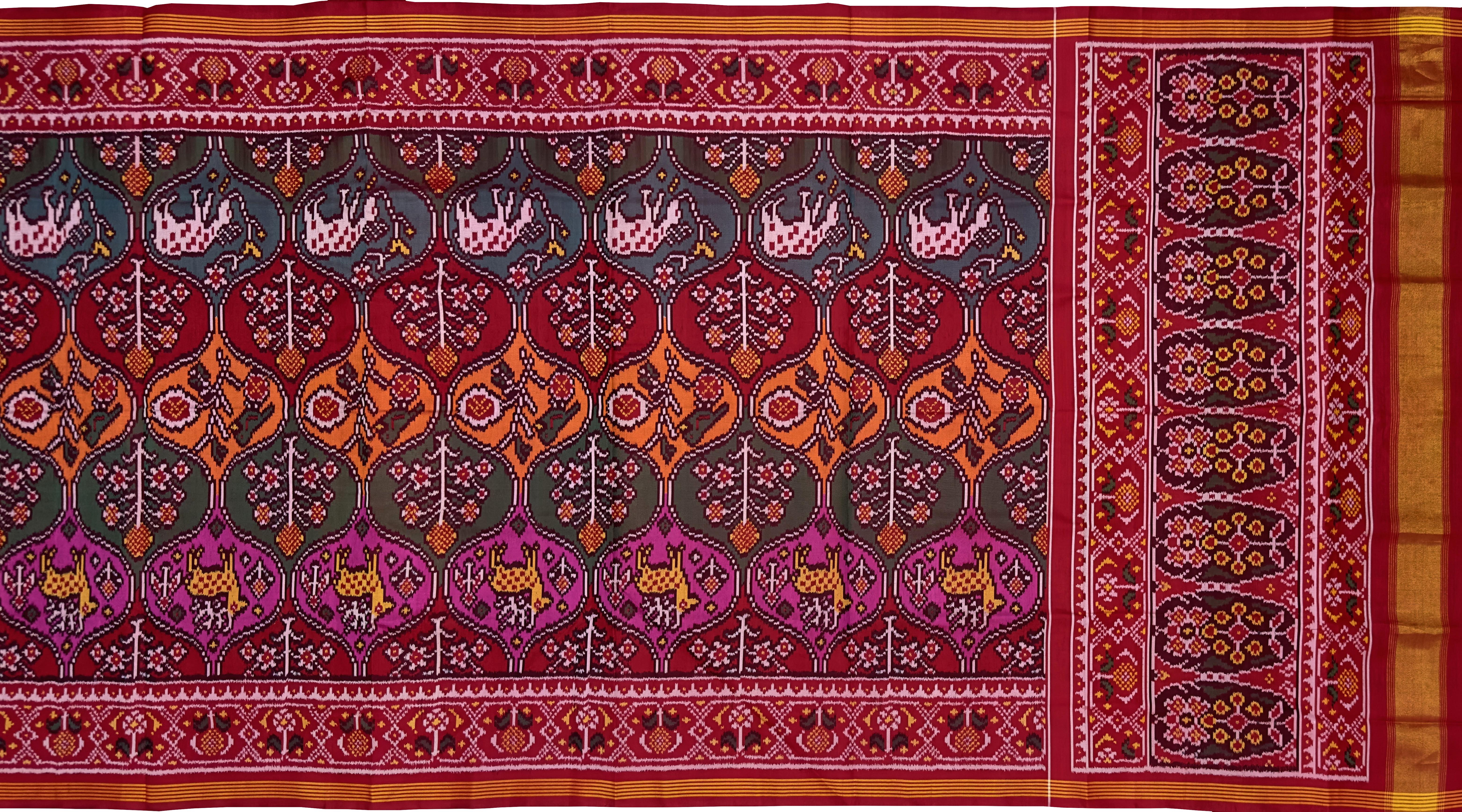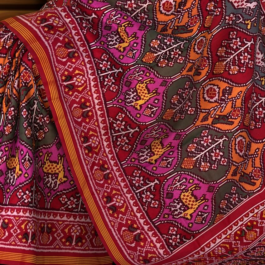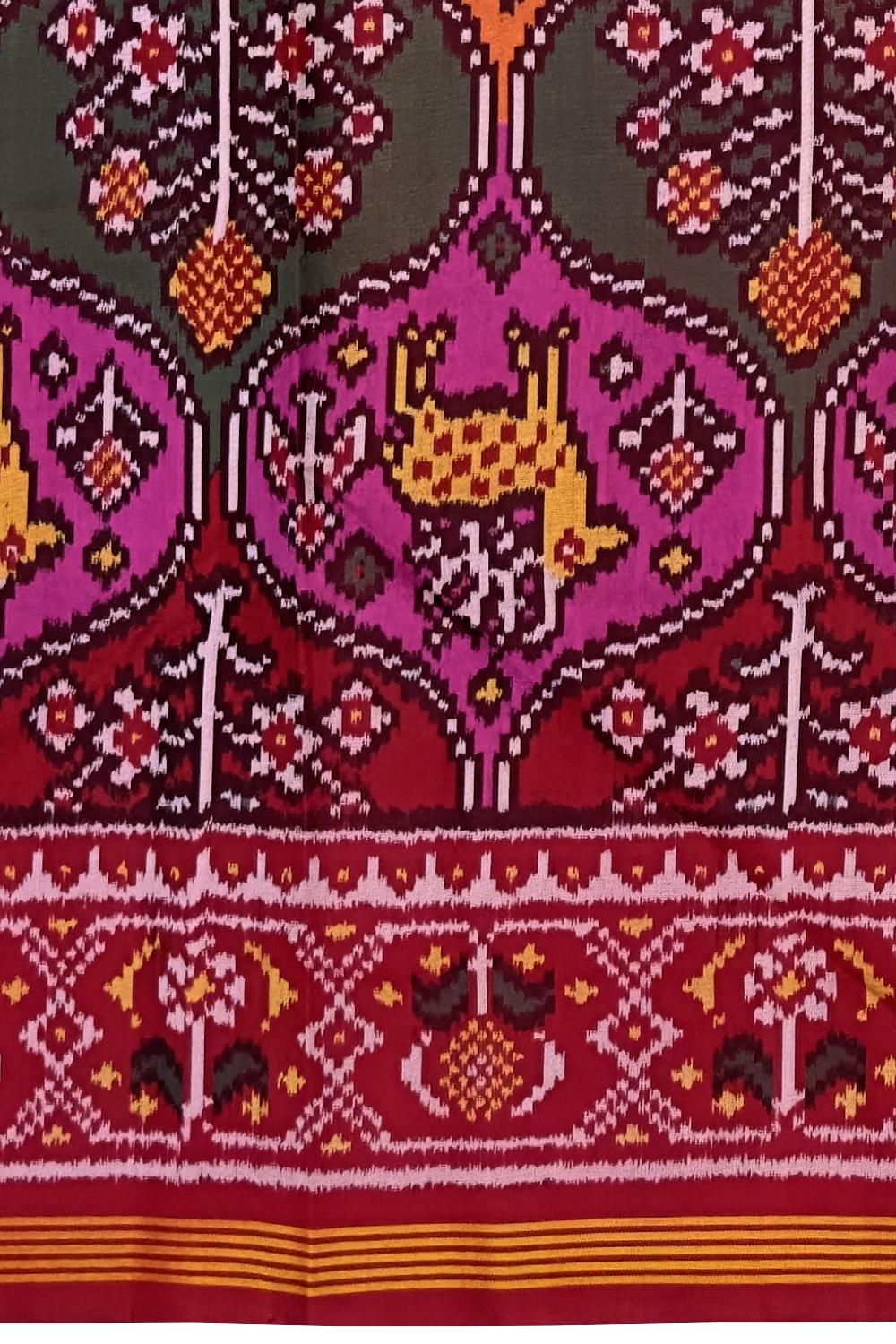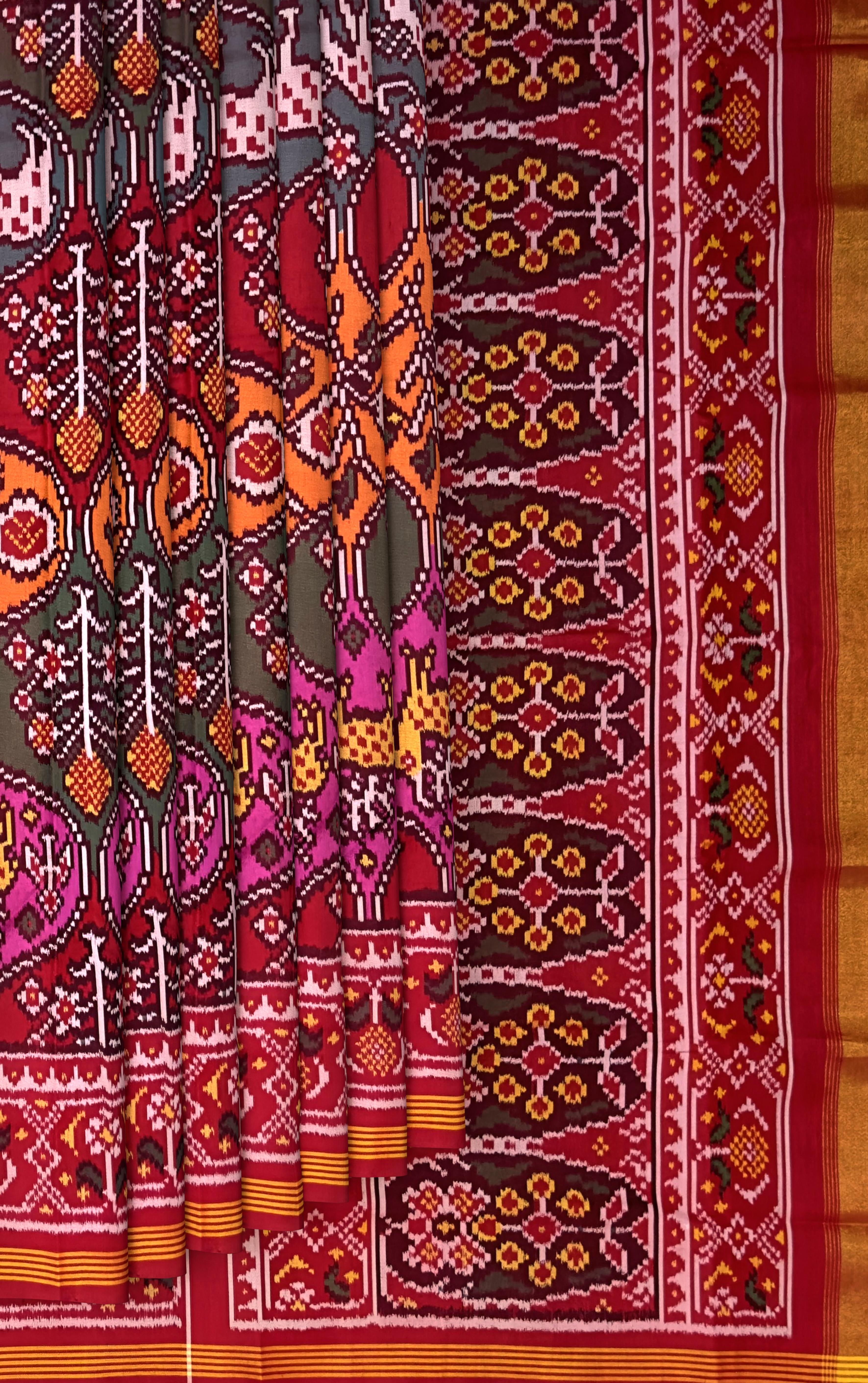 This vibrant Multi Color Single Ikat Semi Patan Patola Saree is a stunning and eye-catching piece. The saree features a beautiful Matka Design, intricately woven in multiple colors.