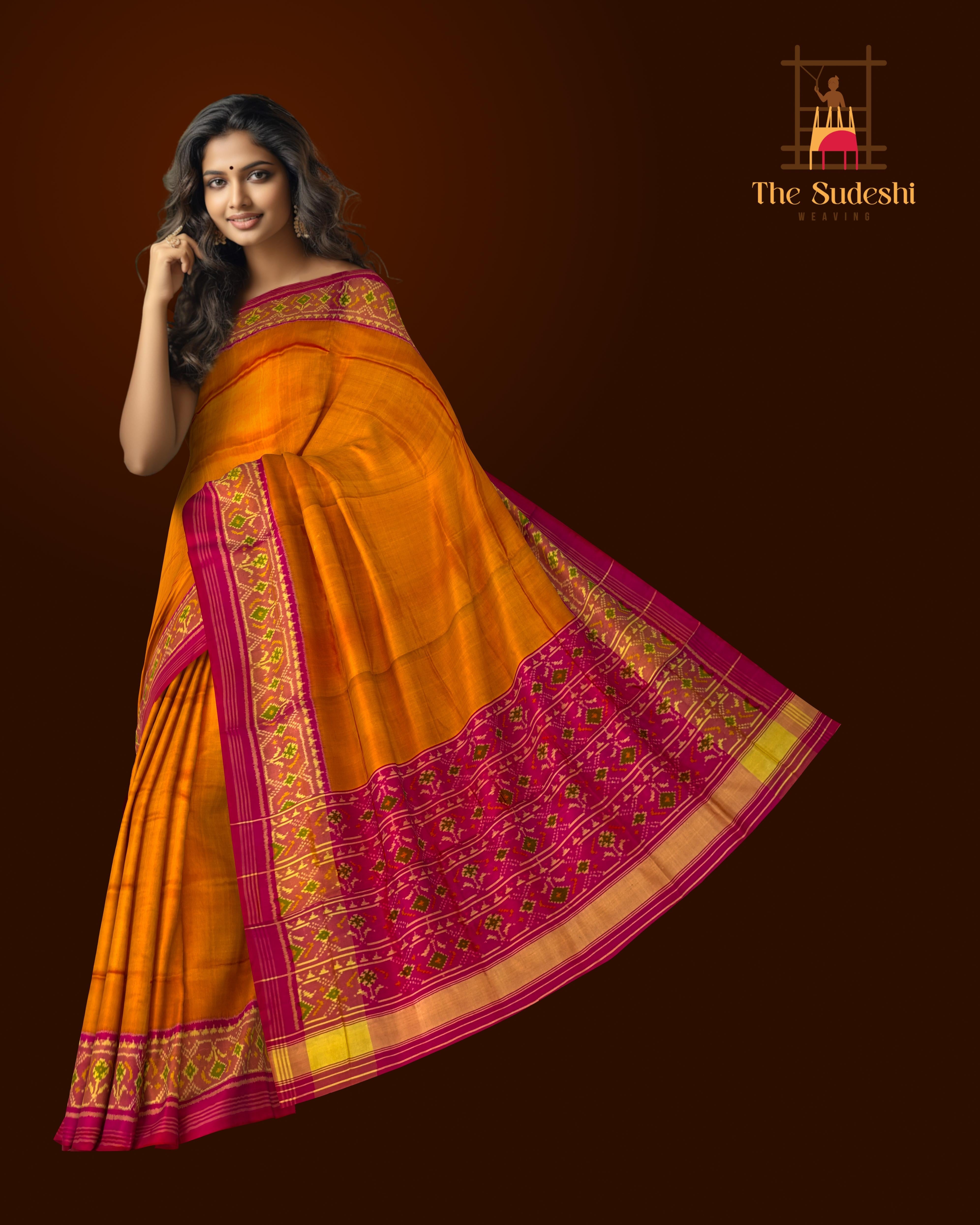 Rajkot Patola sarees are known for their distinctive patterns and vibrant colors, all achieved through the Single Ikat technique. This method involves dyeing the yarn before it is woven, ensuring that each design is perfectly aligned on the fabric. The result is a saree that is both striking in appearance and rich in cultural significance.