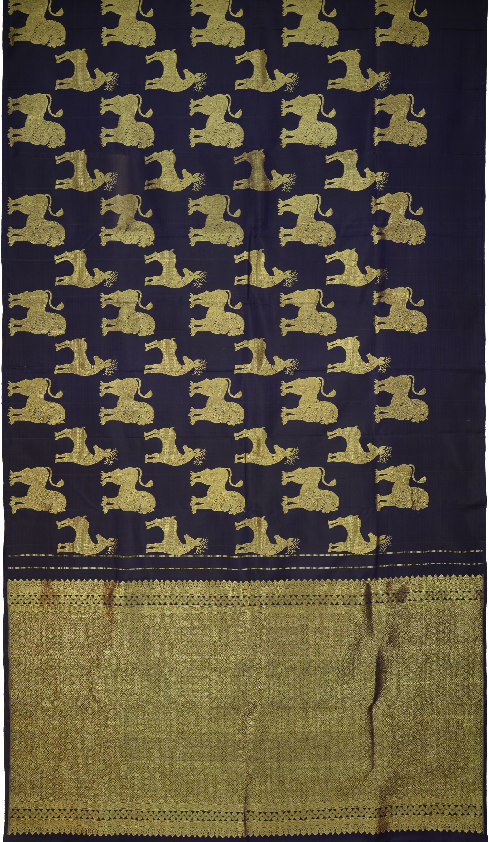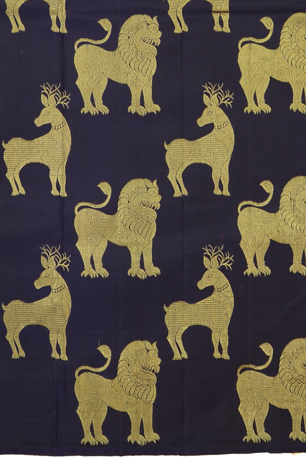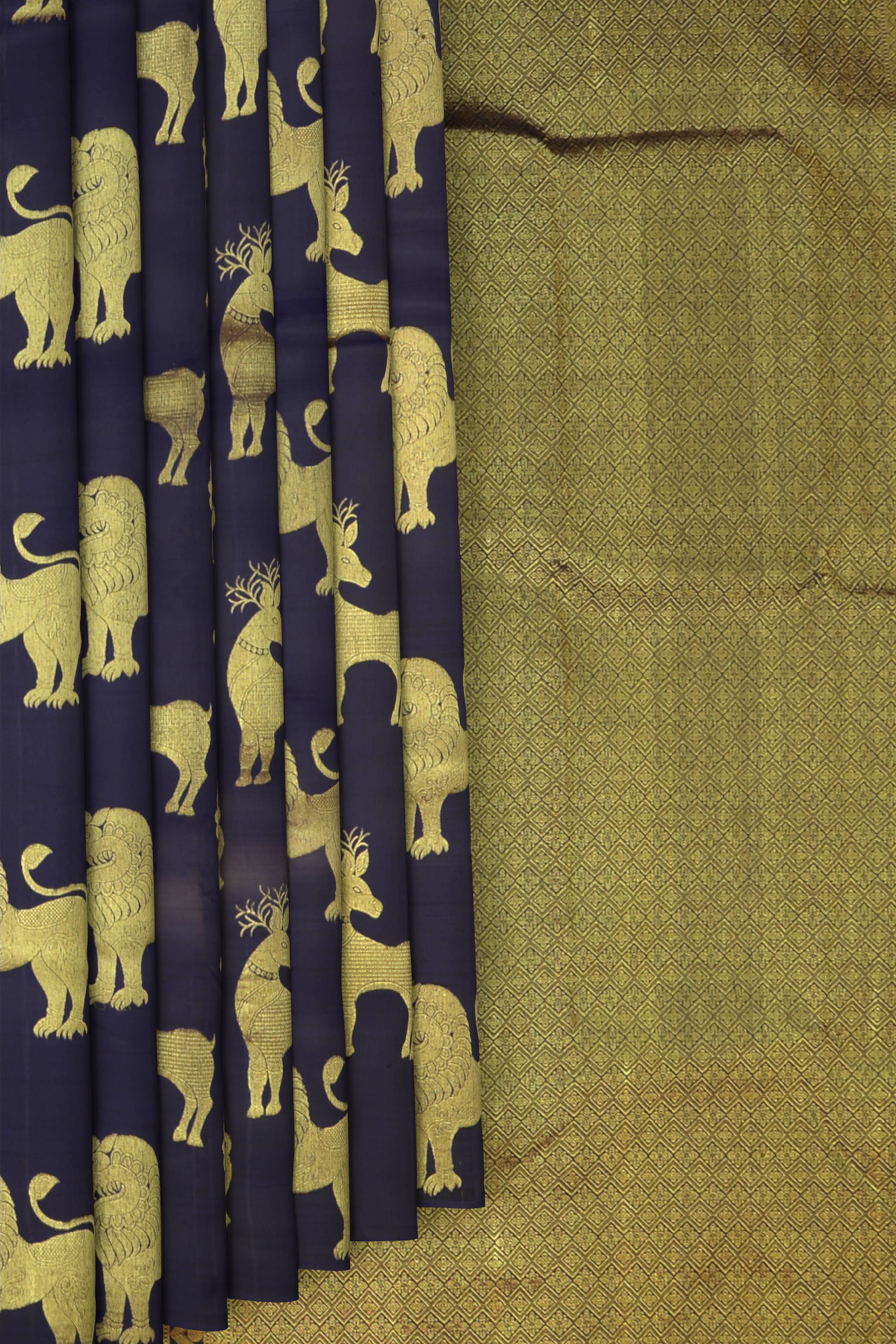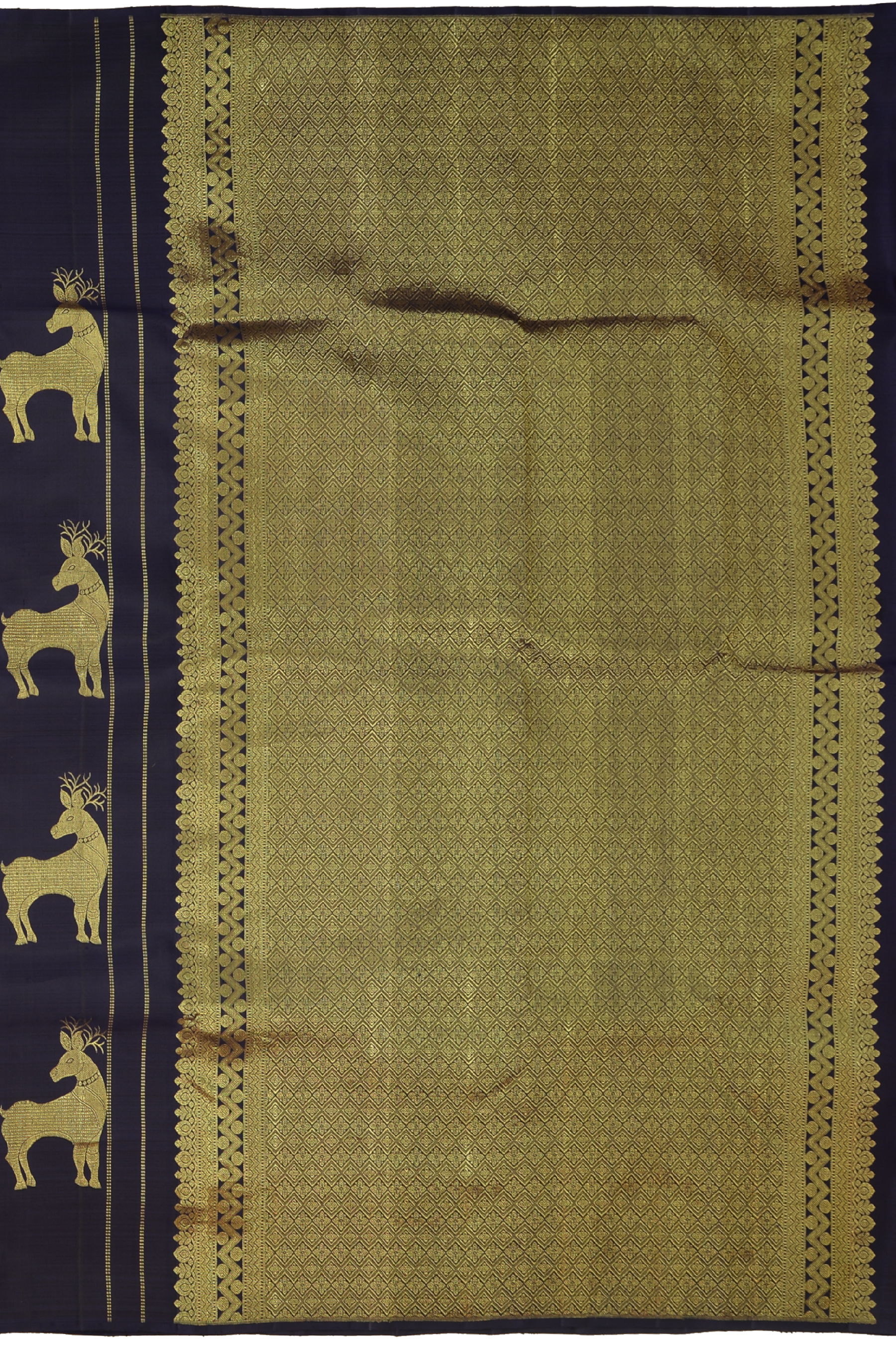 Delve into the profound depths of the ocean with this breathtaking navy blue Kanchipuram saree. It's as if you're looking into the deep sea, with its mysteries, tales, and timeless allure.