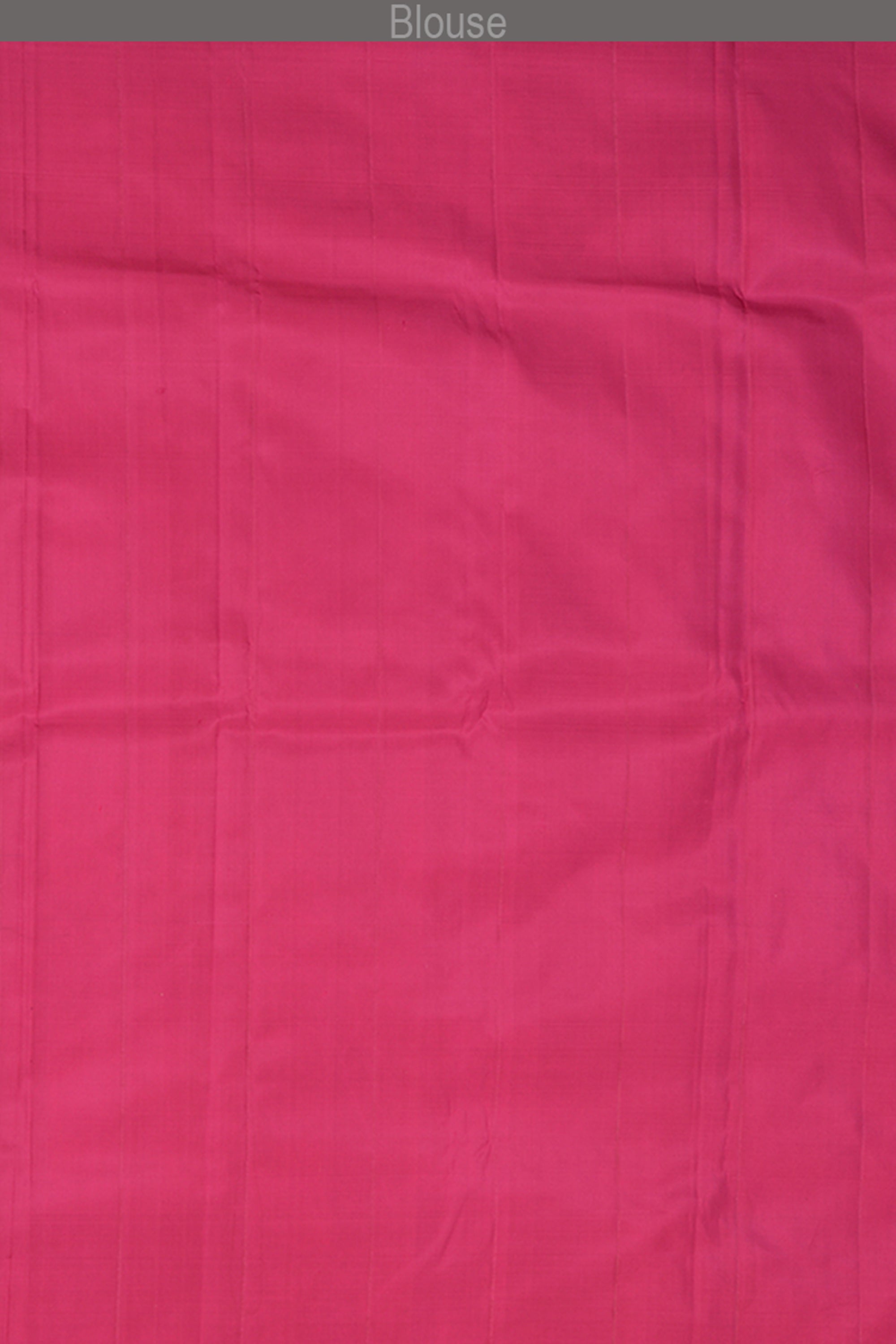The body flaunts the Vanasingaram motif, a delicate dance of design and tradition. The grand navy blue pallu, adorned with a zig-zag pattern, adds a touch of modernity to the age-old craft, creating a perfect blend of the old and the new.