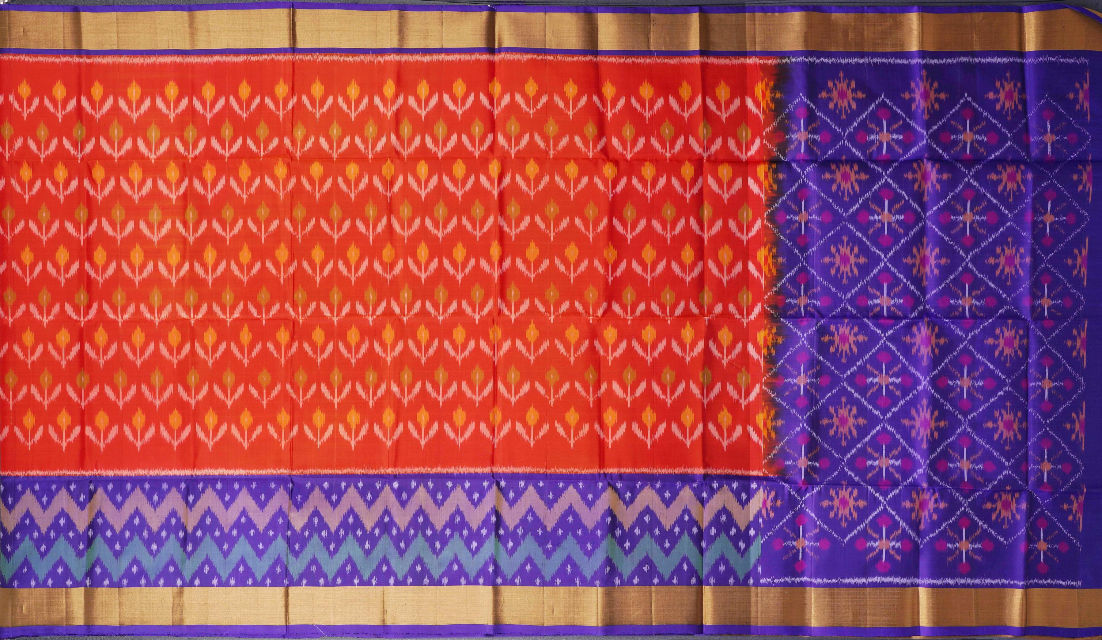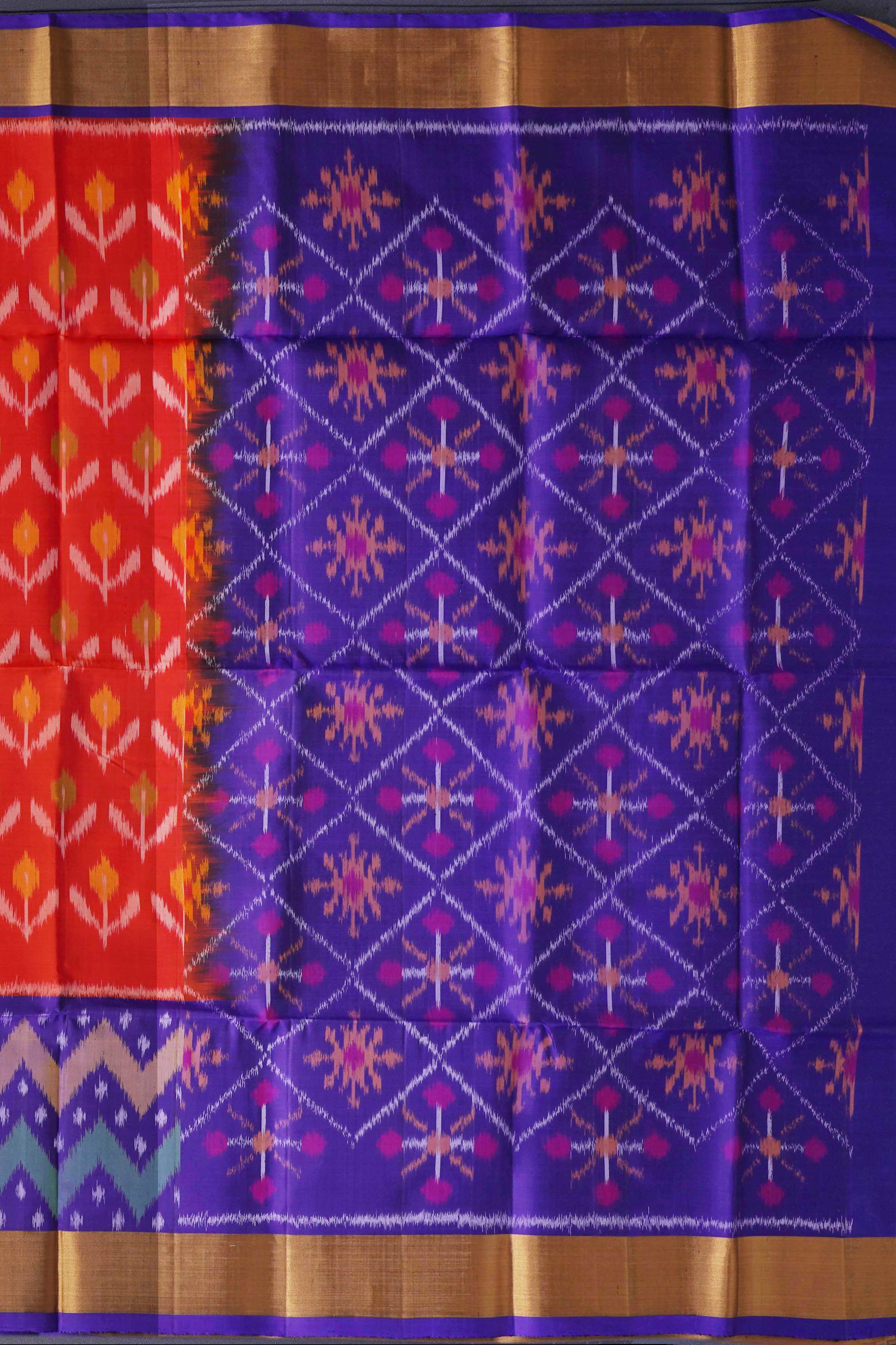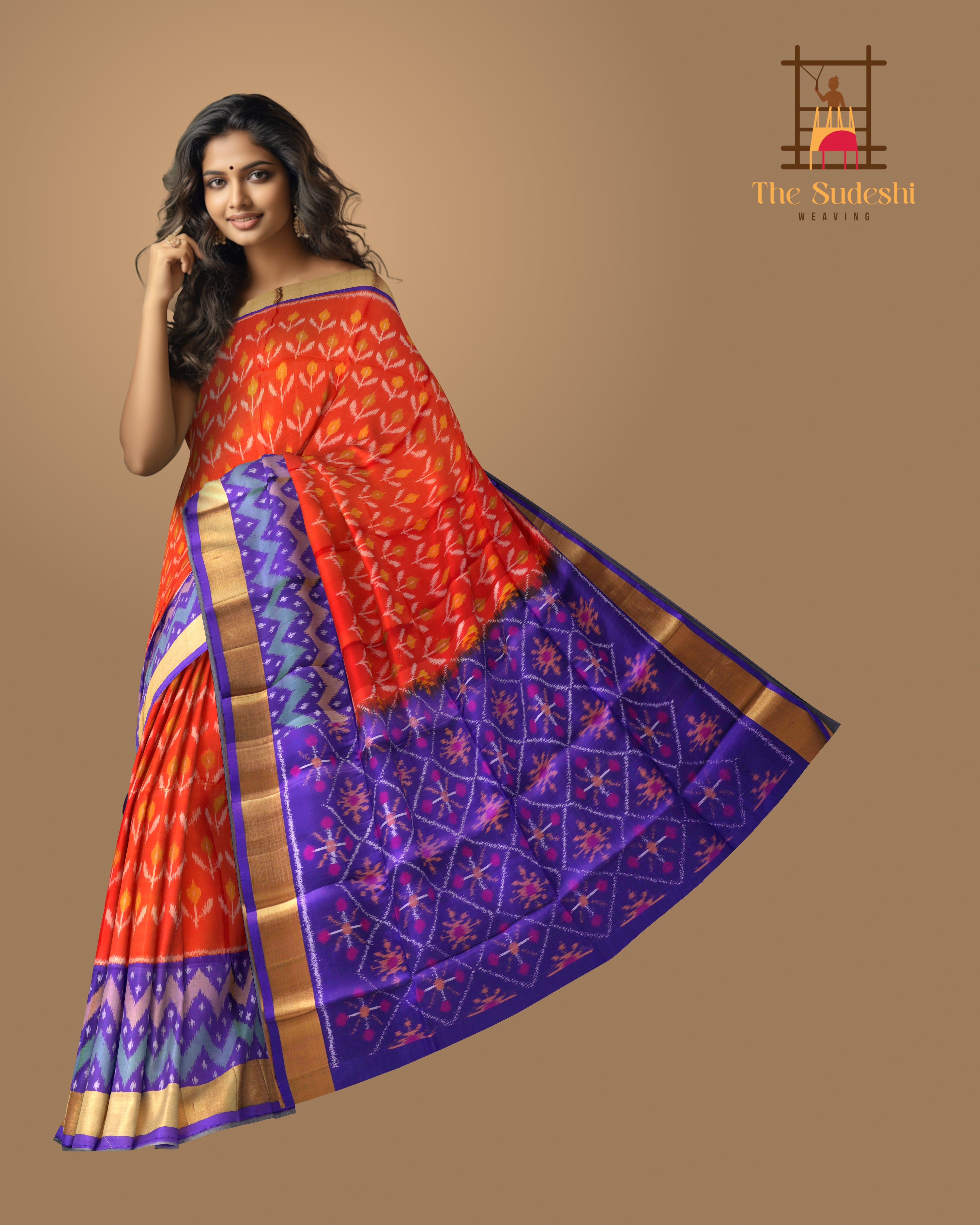 Embrace the rich cultural heritage of India with our Orange Soft Silk Saree, featuring a striking violet ikat body design. This saree is a masterpiece of Indian weaving, known for its intricate ikat patterns and luxurious silk. The ikat design, symbolizing the intricate artistry and meticulous craftsmanship, makes this saree a perfect choice for casual outings and temple visits. The orange color of the saree is both vibrant and elegant, while the violet ikat design adds a striking contrast. This saree is ideal for casual and temple wear, offering a blend of comfort and style. The unique combination of traditional motifs and contemporary design elements ensures that you look stylish and poised in any setting. Whether you're attending a temple ceremony or a casual family gathering, this saree will make you feel elegant and graceful. Pair it with minimalistic jewelry for a chic look or with more elaborate pieces for a festive appearance. This saree is a versatile addition to your wardrobe, showcasing your love for traditional craftsmanship and modern fashion.